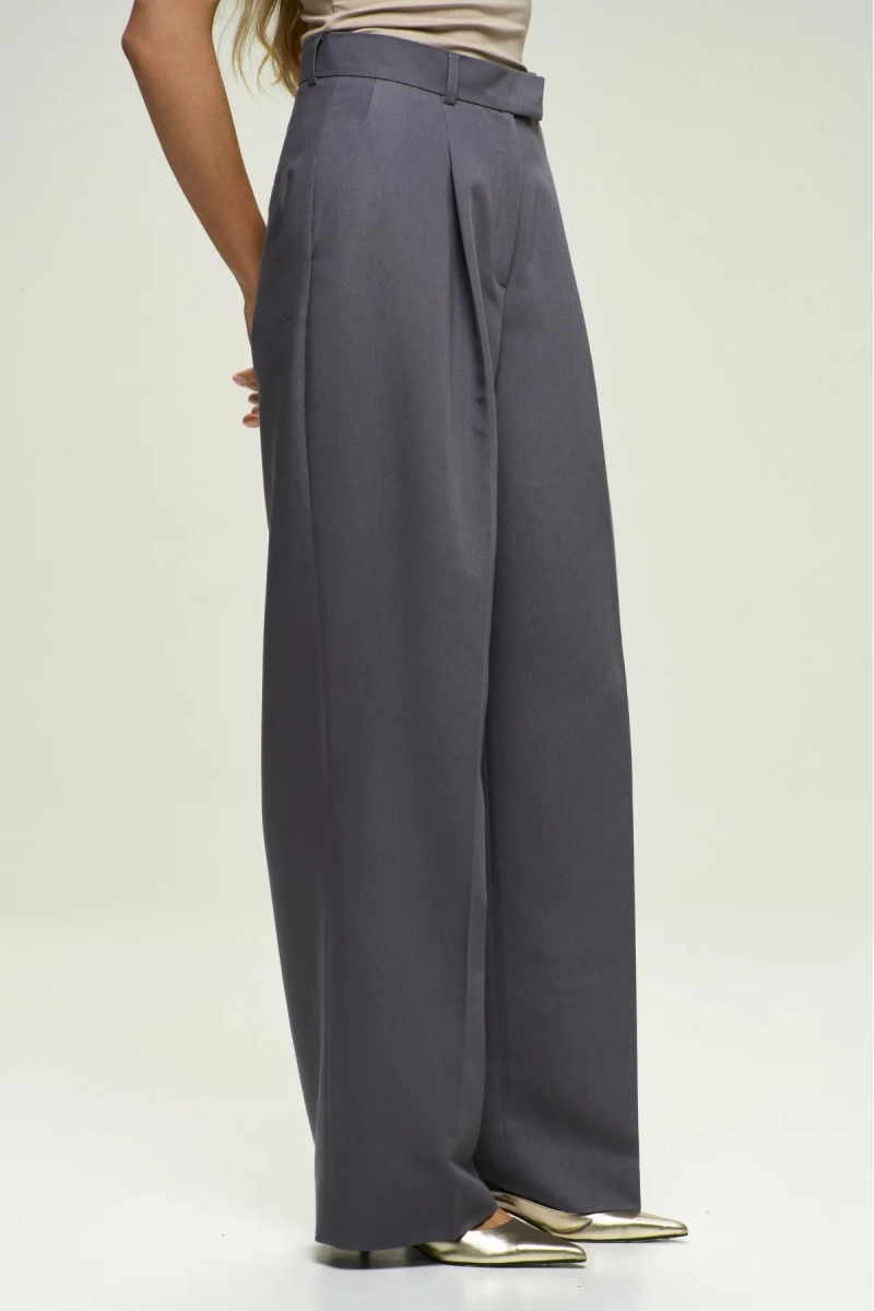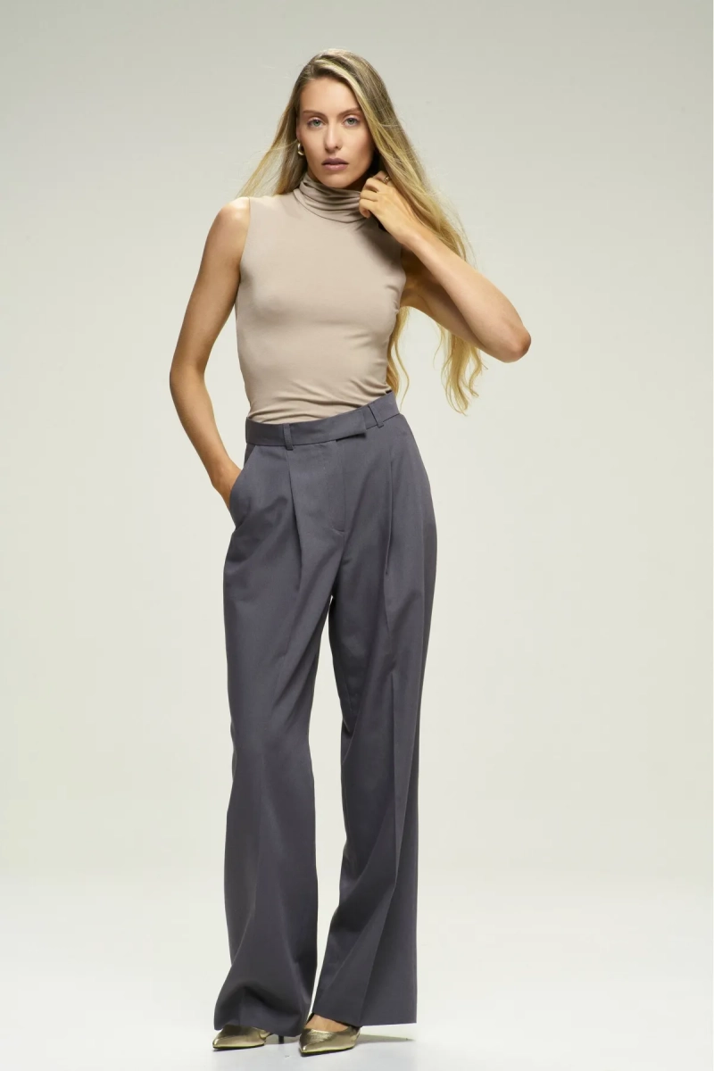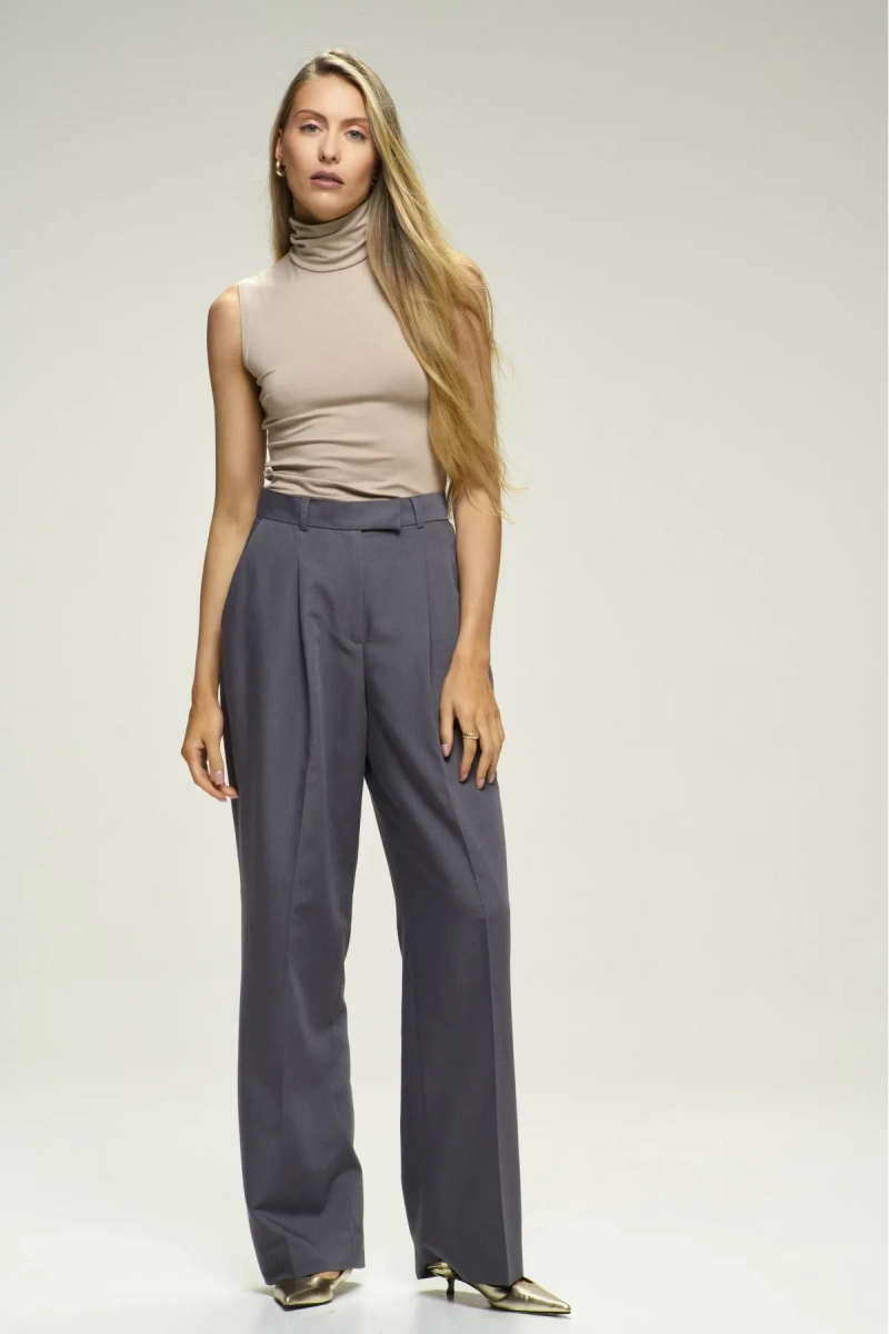Брюки Classic со стрелками создают утонченный силуэт, подчеркивая талию поясом со шлевками для ремня. Широкая штанина от бедра и аккуратные защипы добавляют элегнтности.