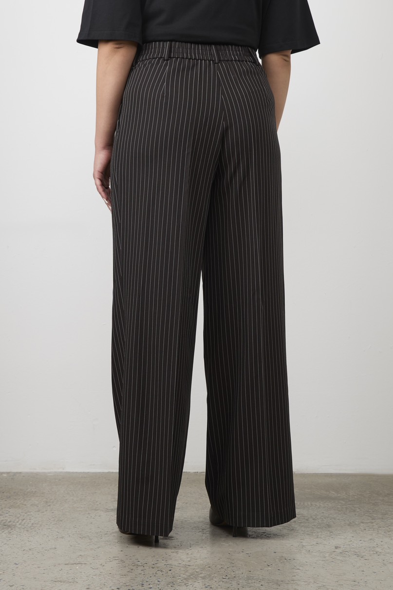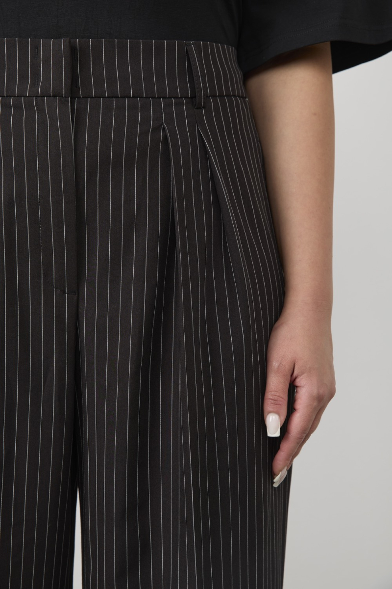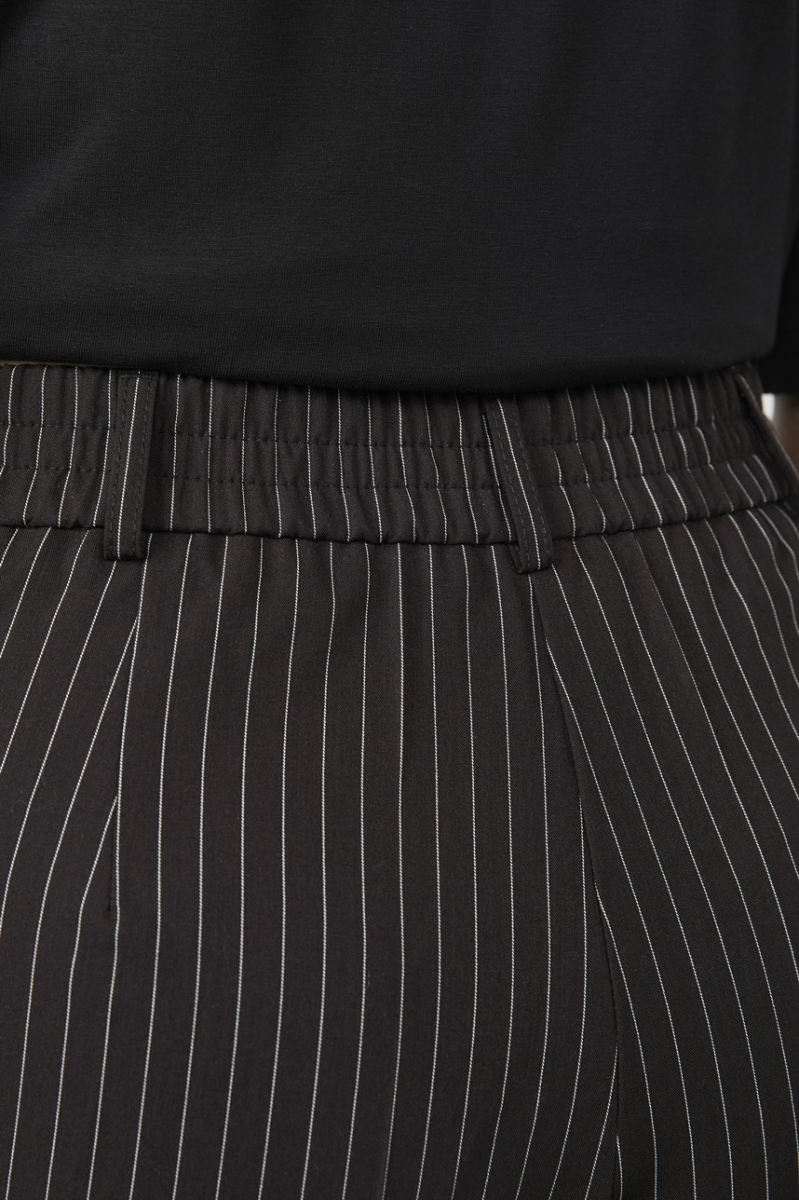 Базовые брюки прямого кроя со стрелками в полоску черного цвета.