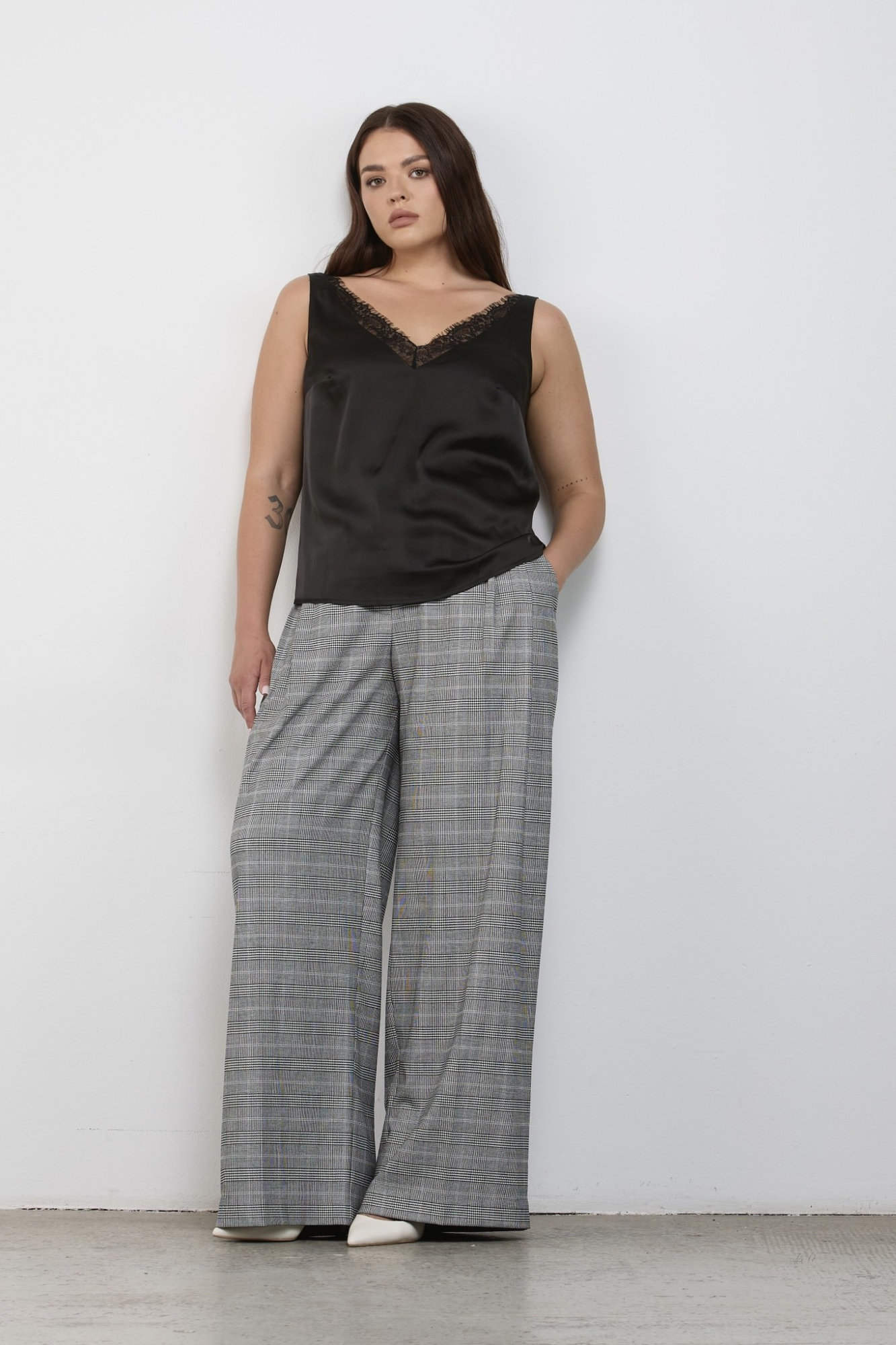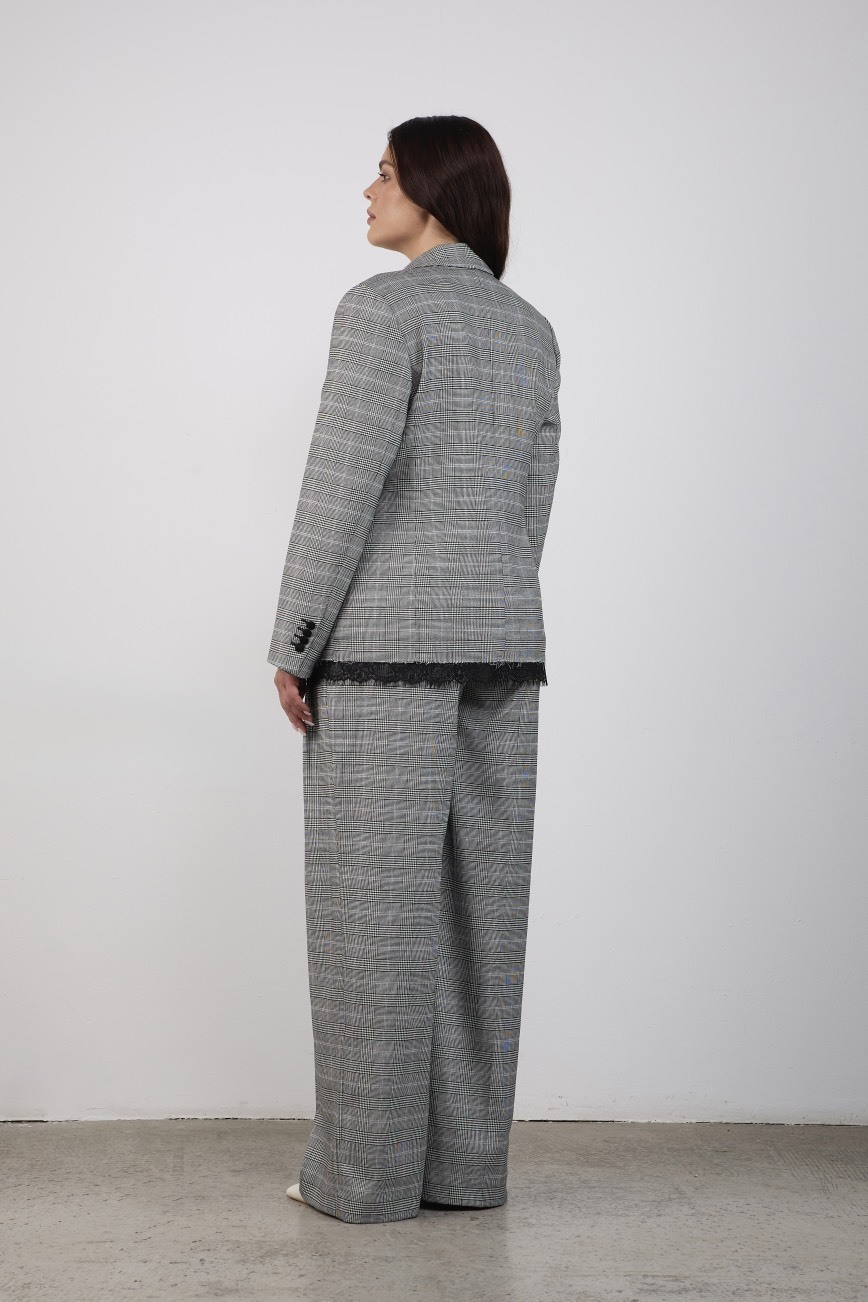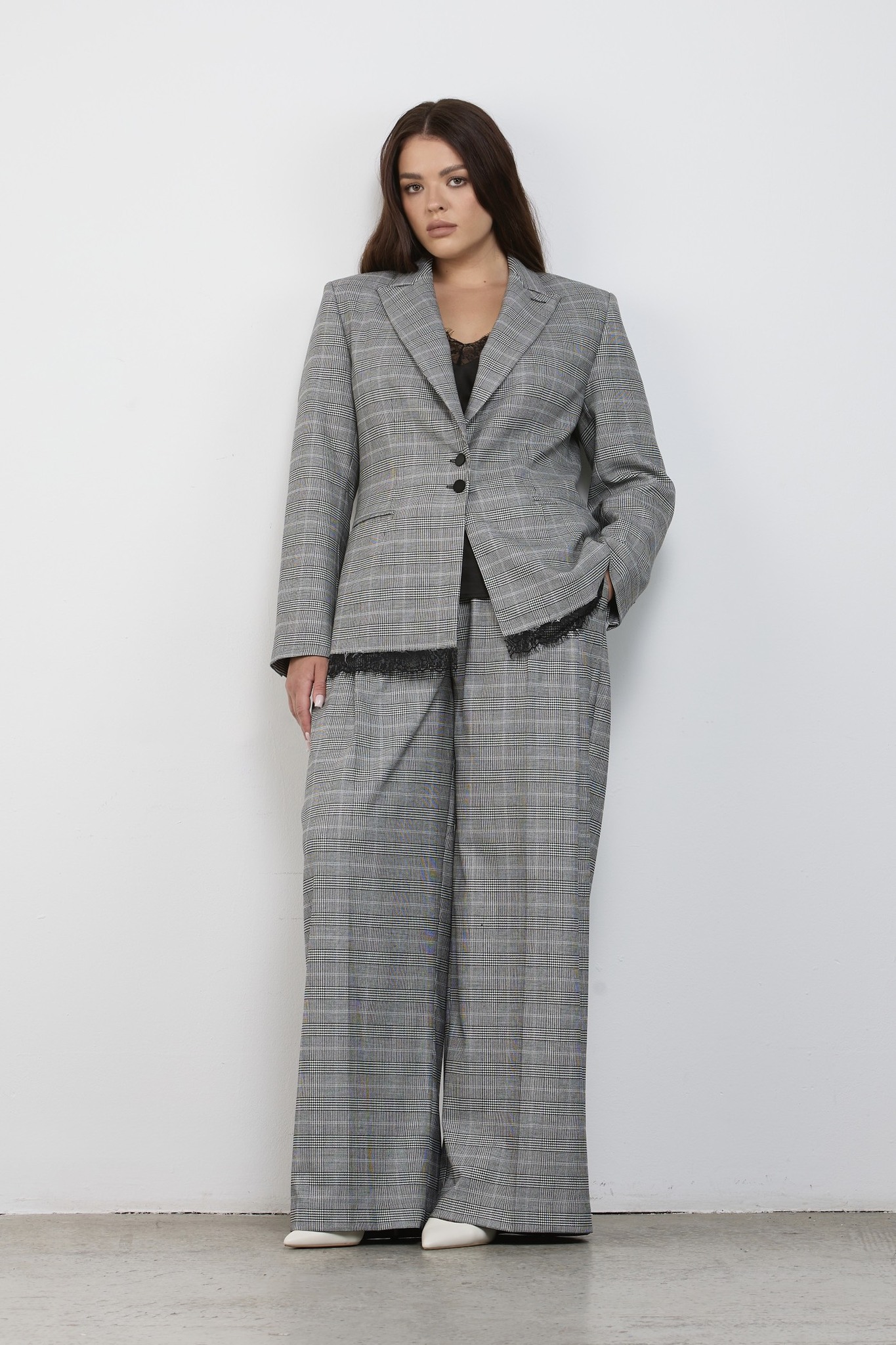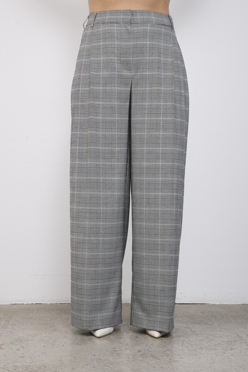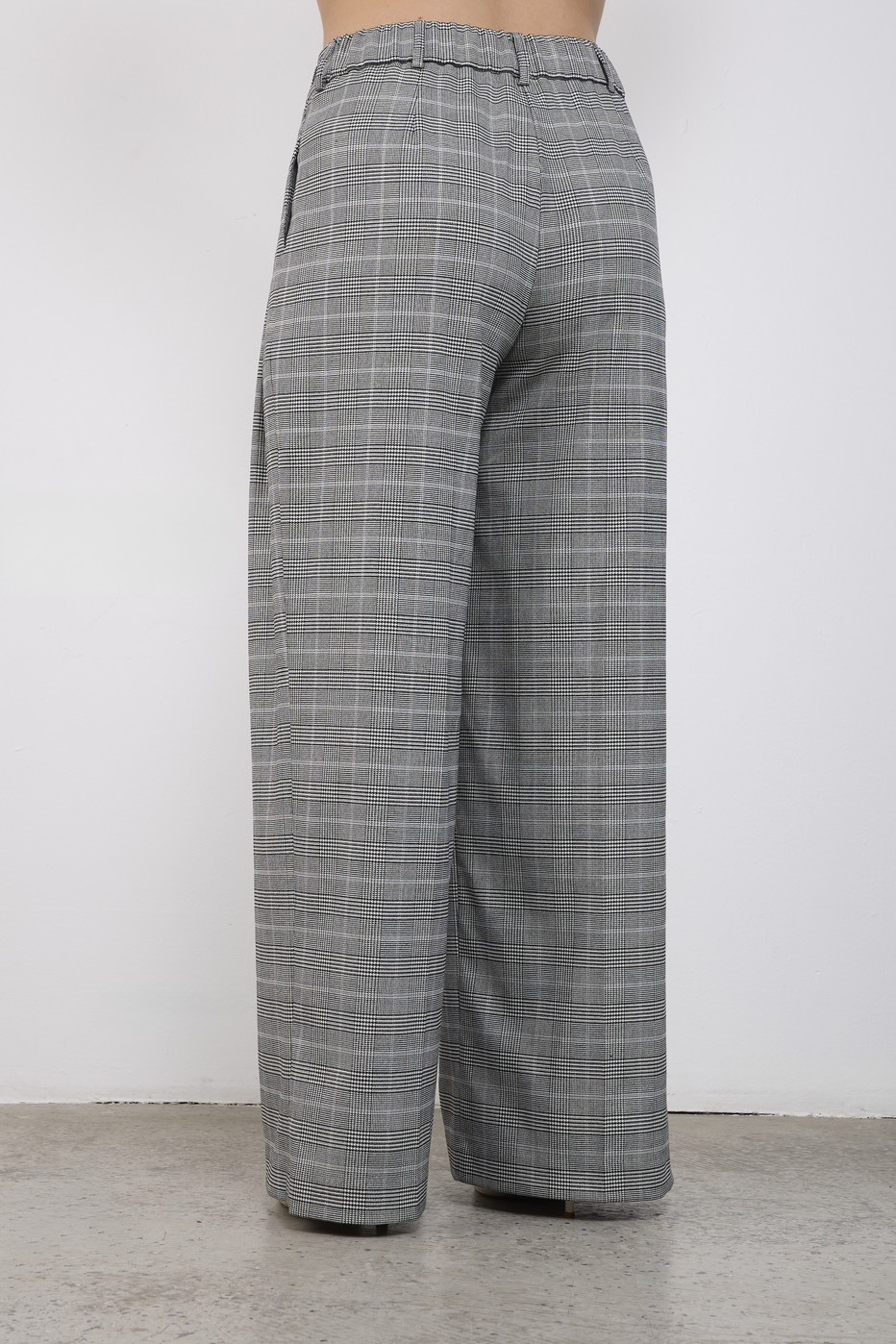 Брюки прямого кроя с защипами — идеальный выбор для создания стильного образа. Широкая модель обеспечивает комфорт и свободу движений. Серый цвет в клетку добавит образу элегантности и станет отличным дополнением к различным верхам.