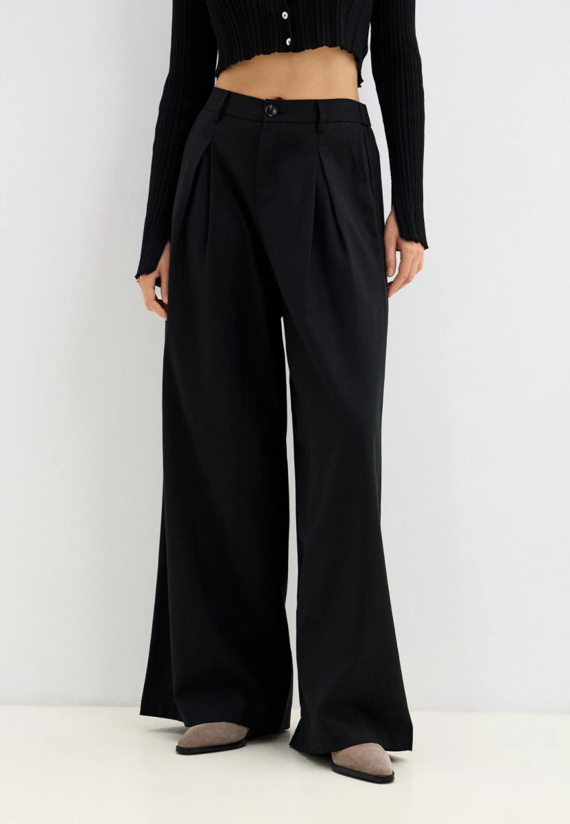 Высокая посадка, мягкие защипы и свобода движения. Универсальная база для деловых и вечерних образов.