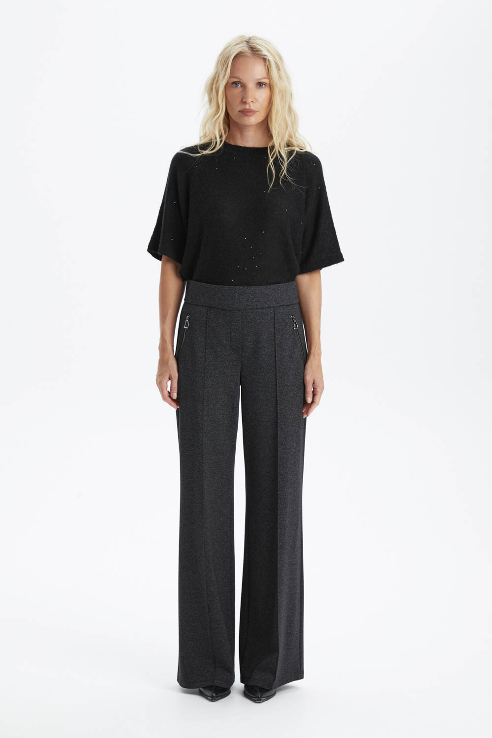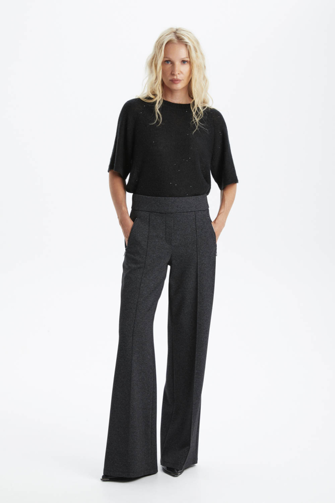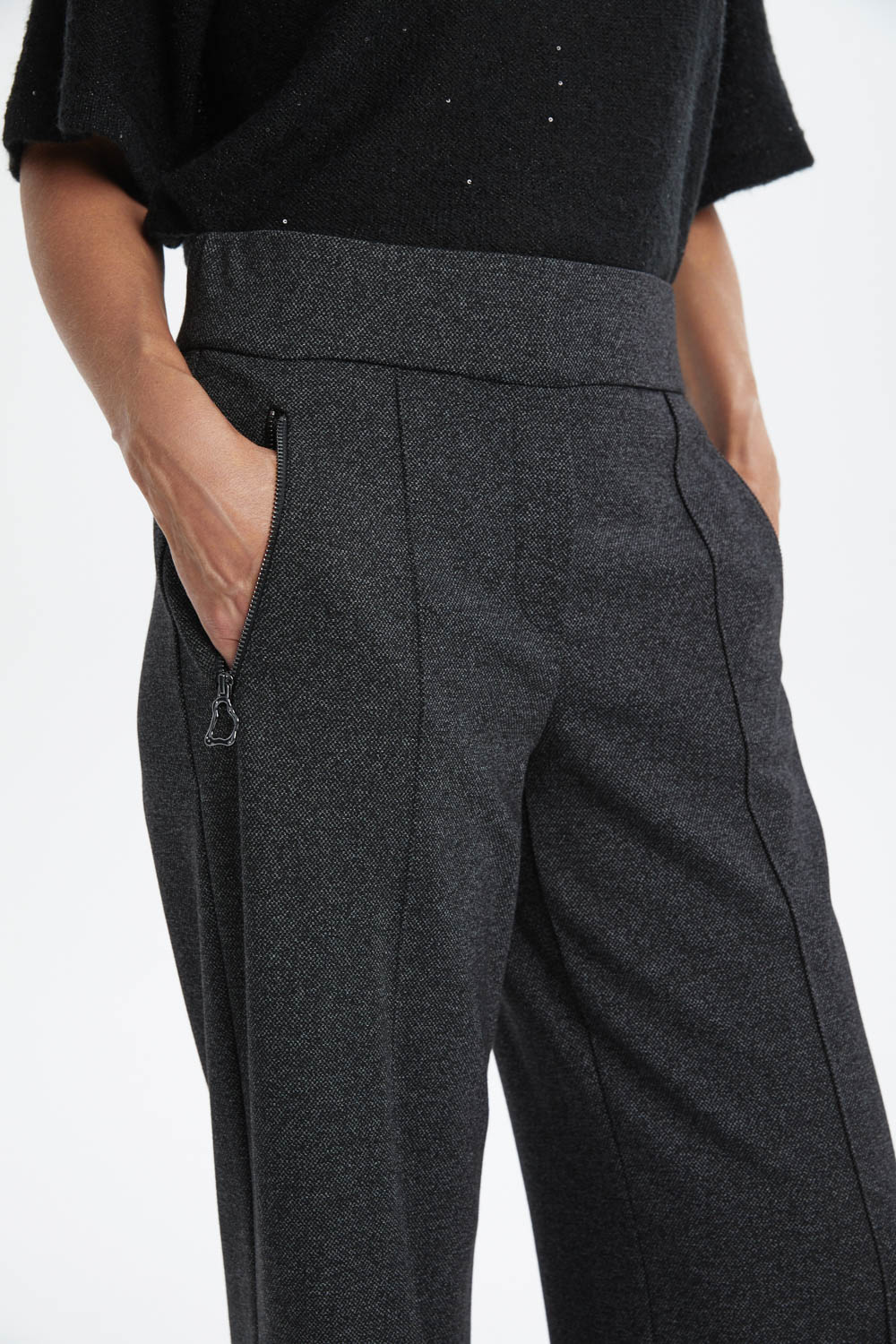 Классические брюки со стрелками в тёмно-сером цвете — идеальный выбор для деловых встреч и офисных будней. Они сочетают в себе элегантность и строгость, подчёркивая ваш профессиональный статус. Высокое качество ткани и аккуратный крой обеспечивают комфорт и уверенность в каждом движении. Эти брюки станут основой для создания множества стильных образов.