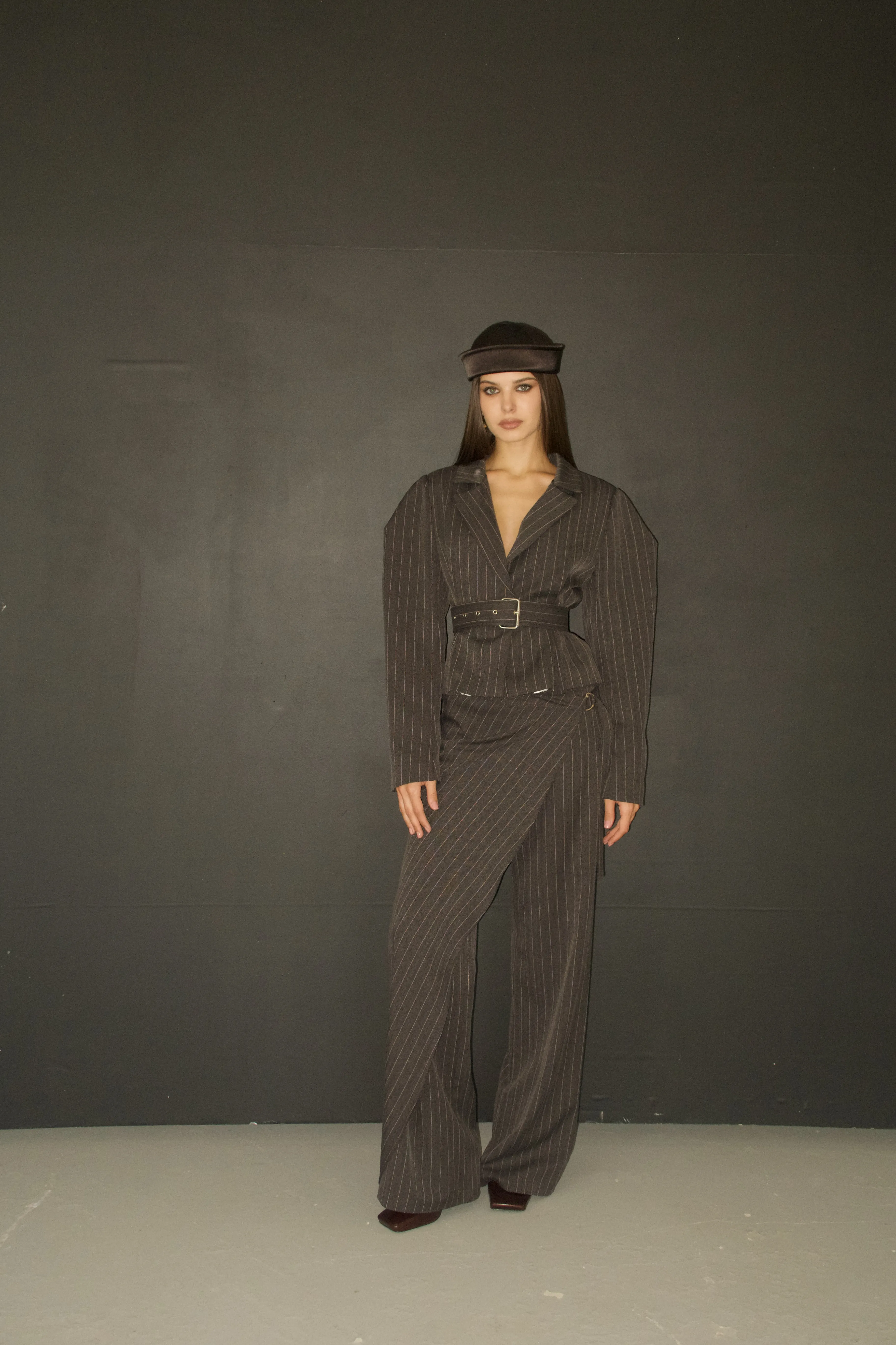 Стильный и удобный элемент гардероба. Брюки выполнены в классическом цветовом решении с выразительным полосатым принтом, что придаёт им современный и модный вид.