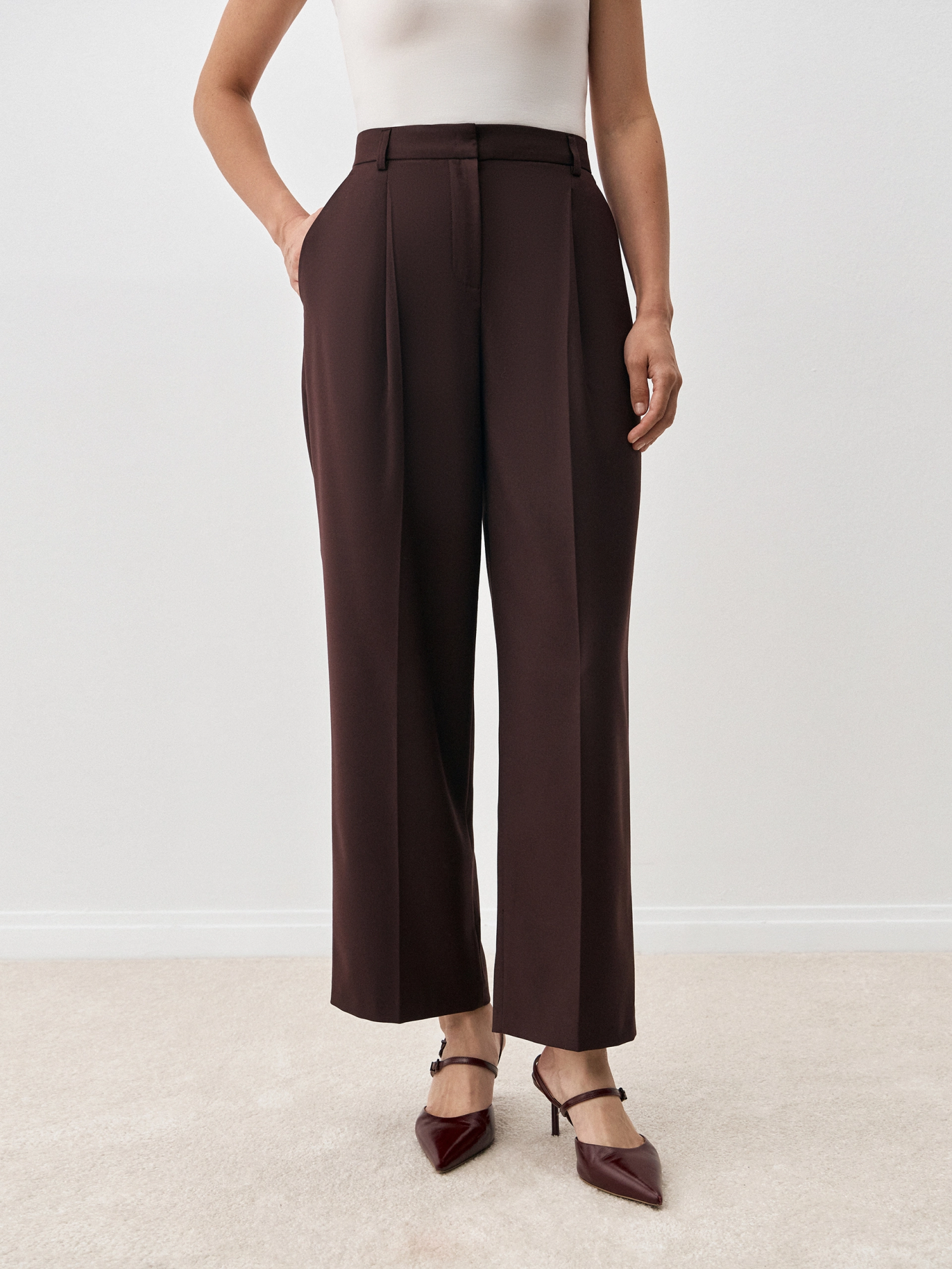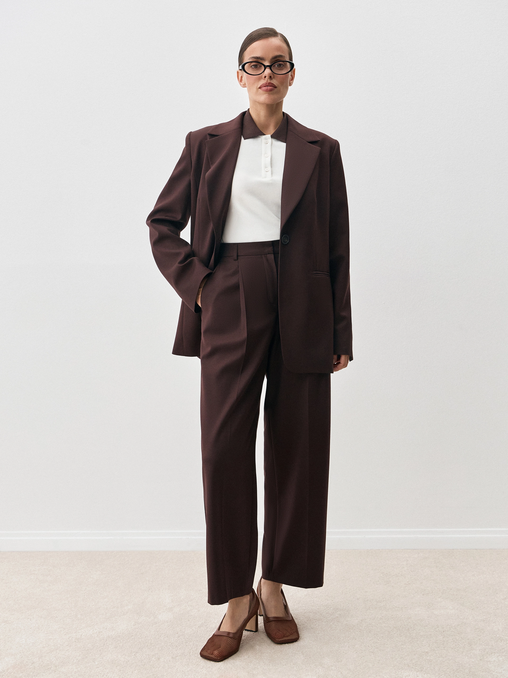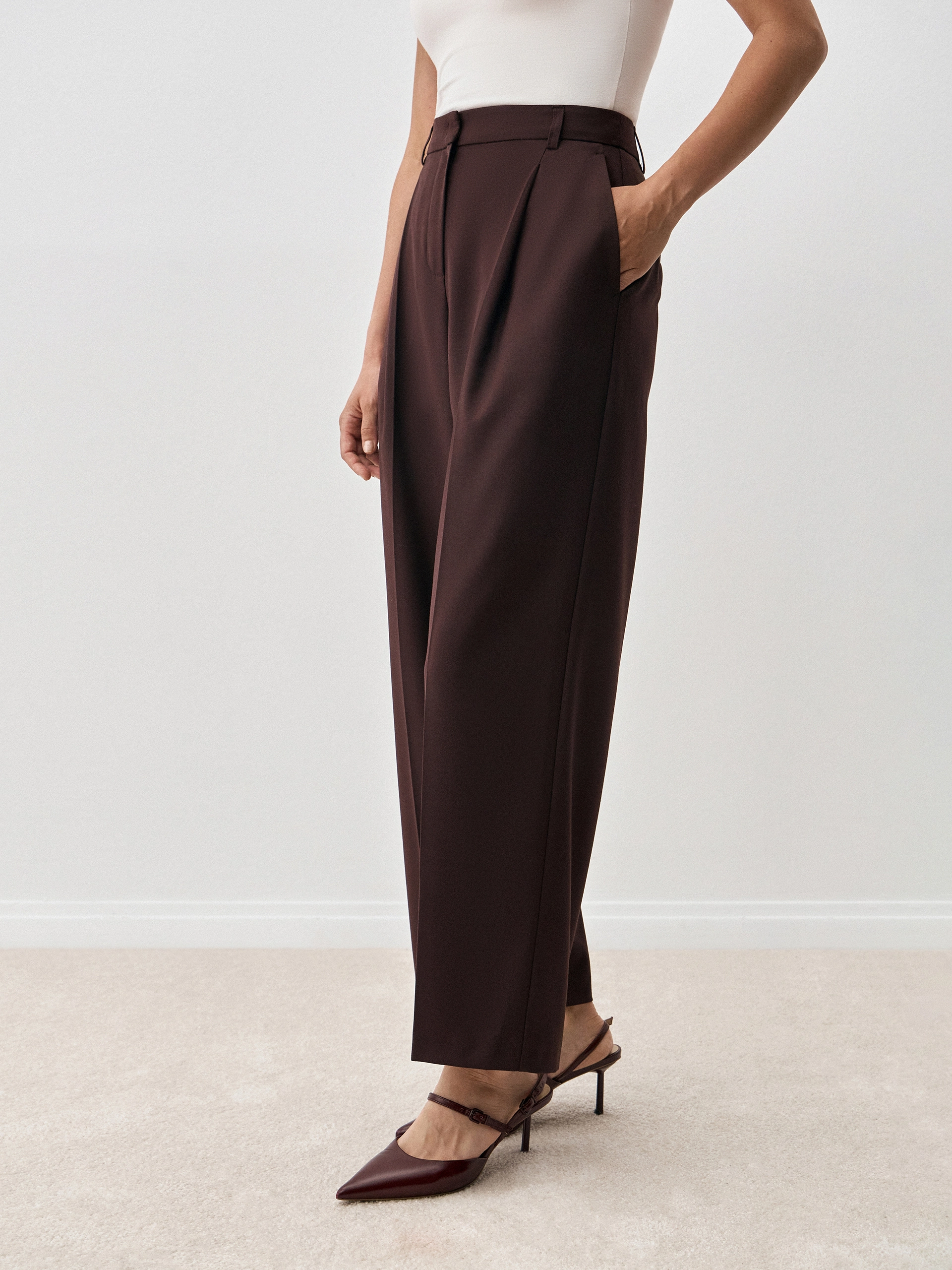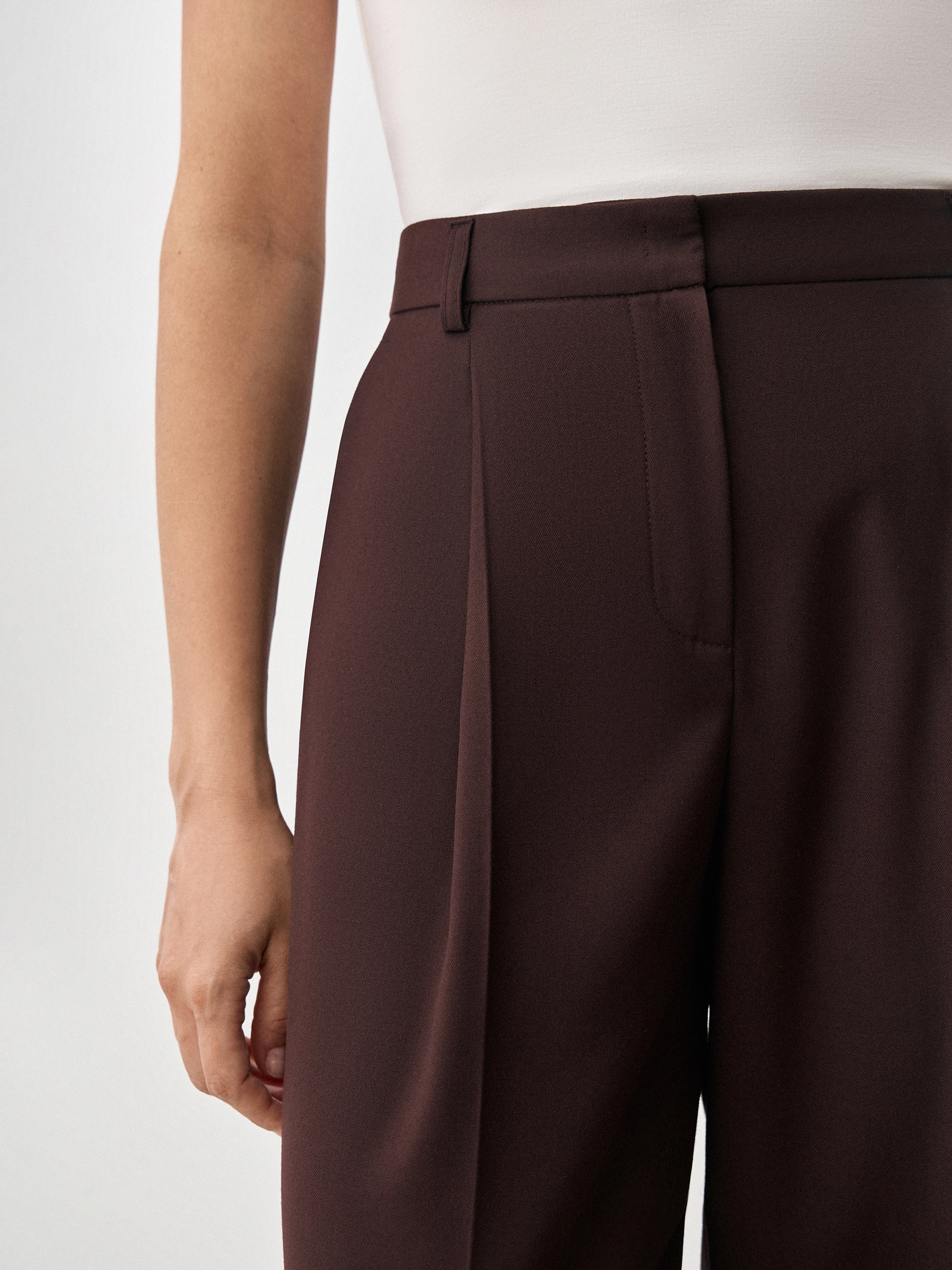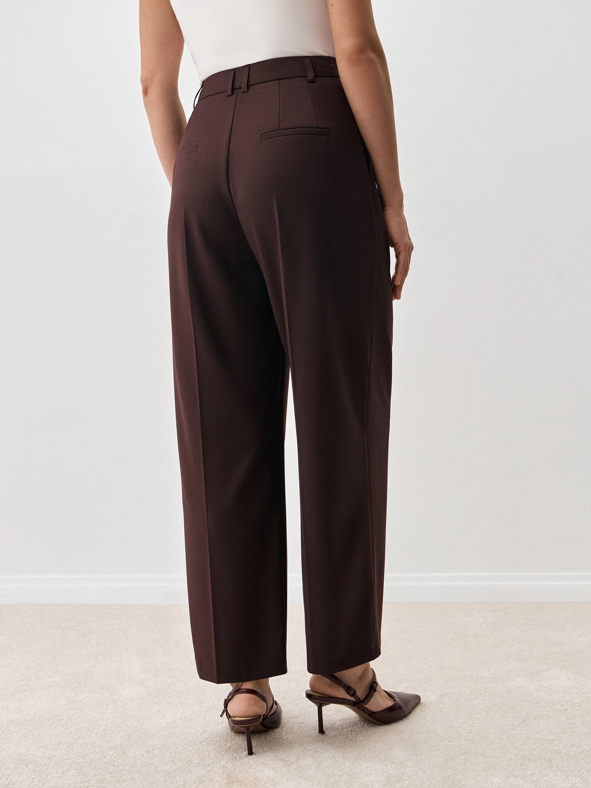 Брюки Hedy. Зауженные брюки — выверенная и комфортная база для осеннего гардероба. Укороченная длина красиво открывает щиколотку и сочетается как с обувью на небольшом каблуке, так и с обувью на плоском ходу. Мягкие защипы у талии обеспечивают свободу движения и аккуратный объём. Рекомендуем носить с жилетом Lana и жакетом Hedy — для гармоничного и сбалансированного образа.