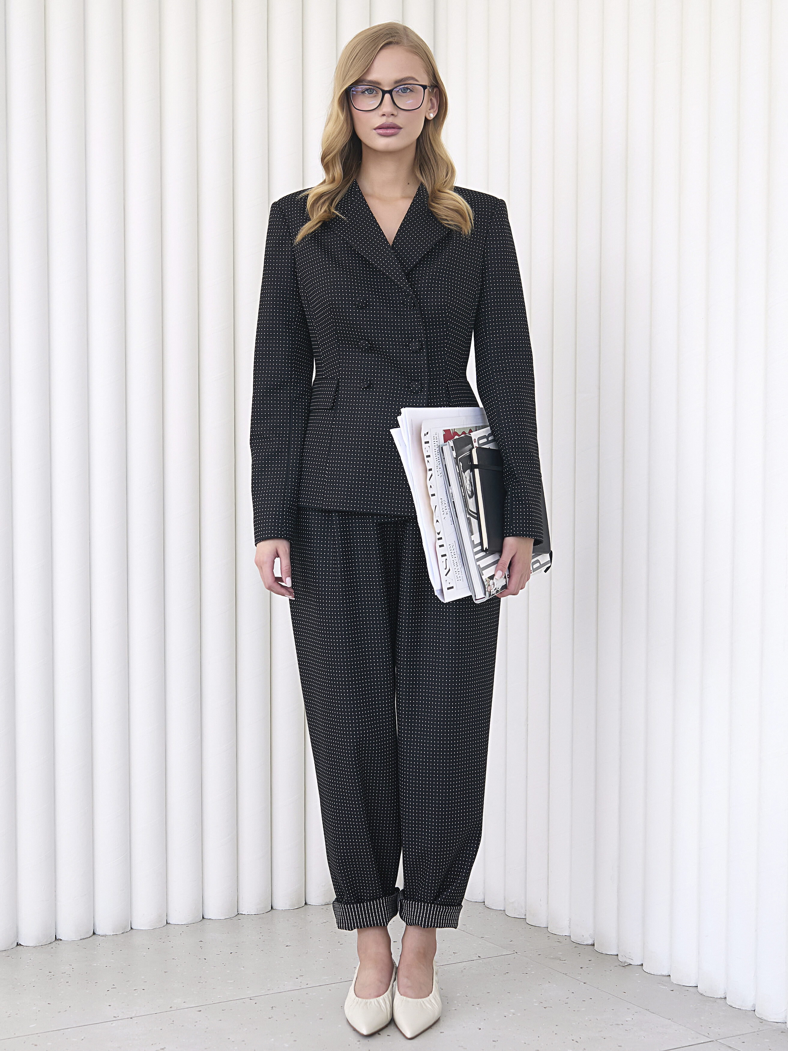 Отлично подходит для создания образов в любом стиле. Идеально сочетается с изделиями из базовой коллекции: юбкой мини и с жакетом двубортным укороченным.