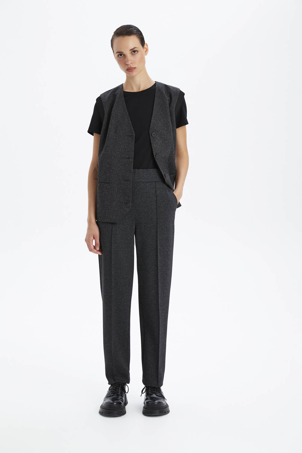 Классические серые прямые брюки — идеальный выбор для офисного стиля или деловых встреч. Они обеспечивают комфорт и свободу движений благодаря прямому крою. Качественный материал и аккуратный крой делают эти брюки стильным и универсальным элементом вашего гардероба.