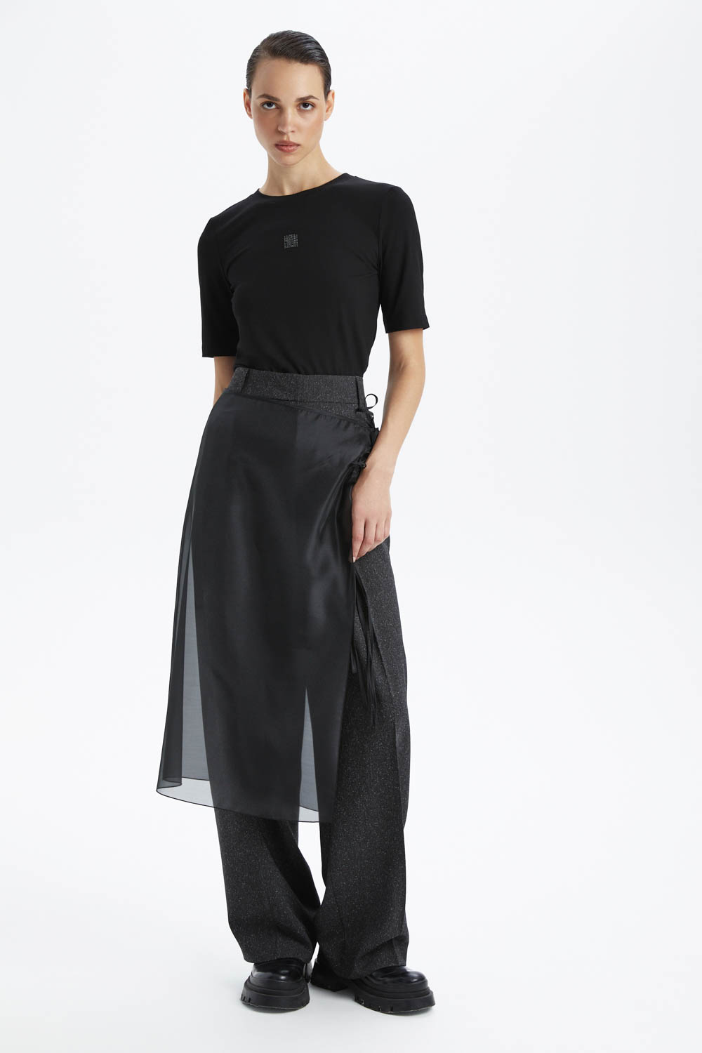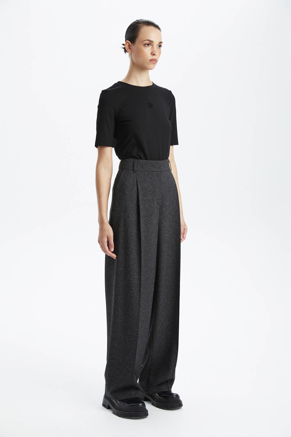 Съёмная баска добавляет брюкам изысканности и может быть легко отстегнута, если вы захотите создать более лаконичный образ. Благодаря универсальному крою и классическому стилю, эти брюки легко сочетаются с различными верхами — от рубашек до блузок.