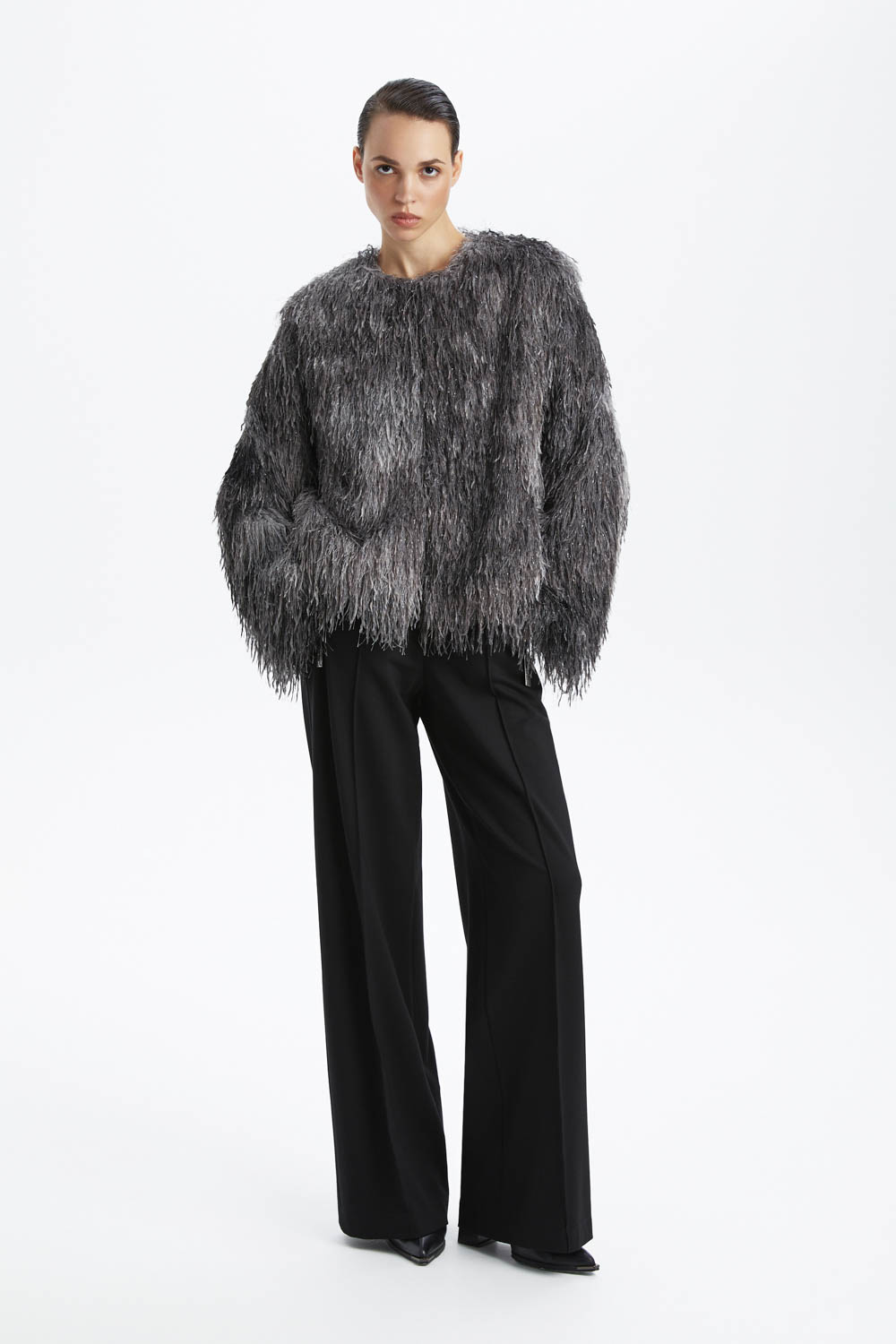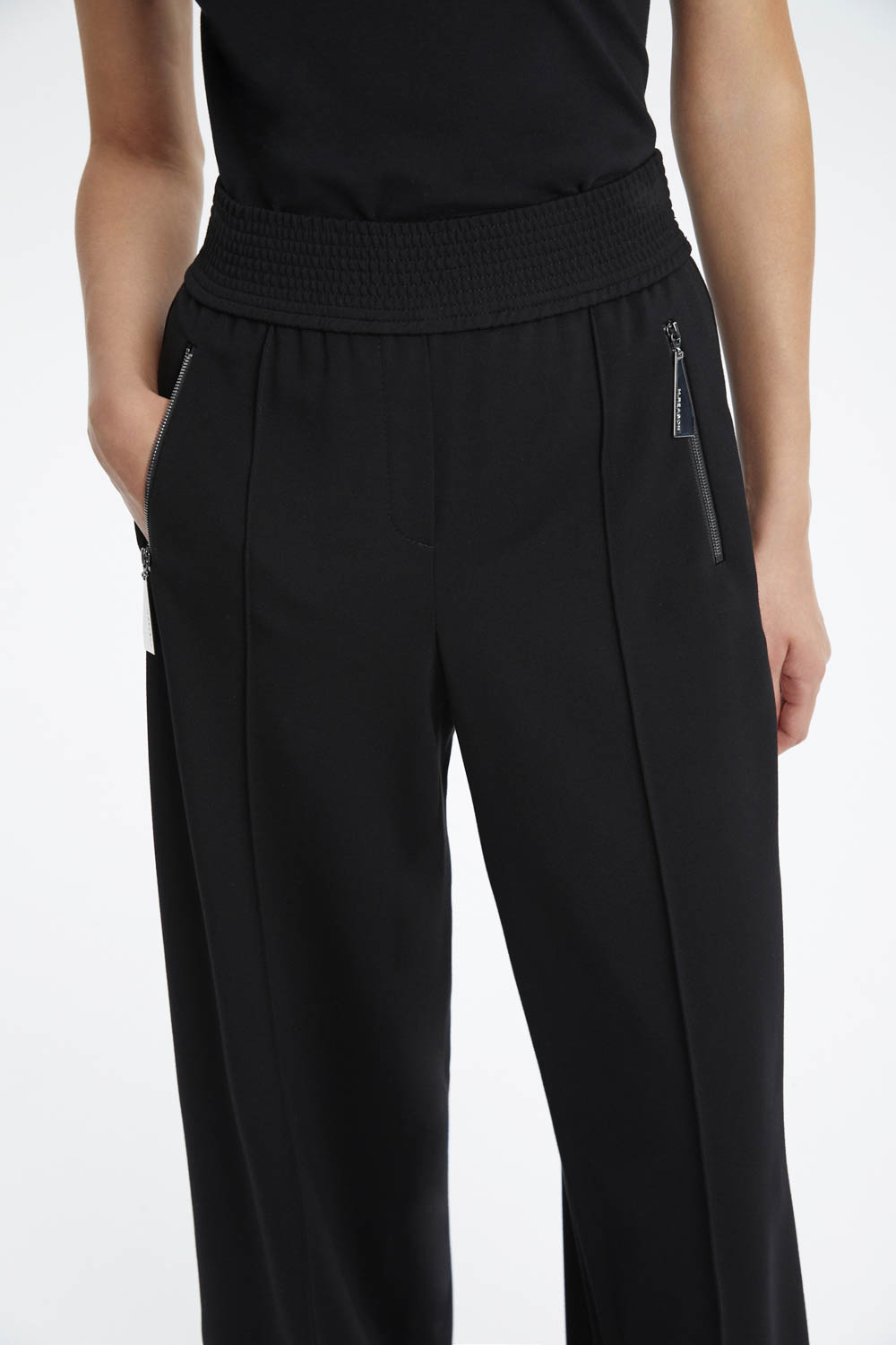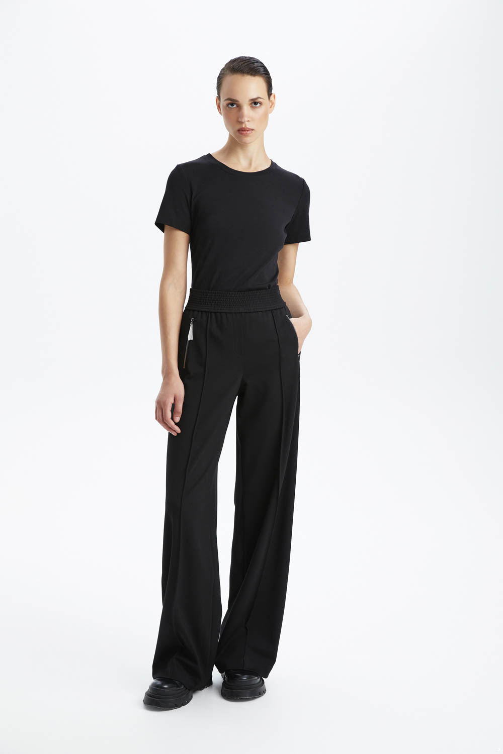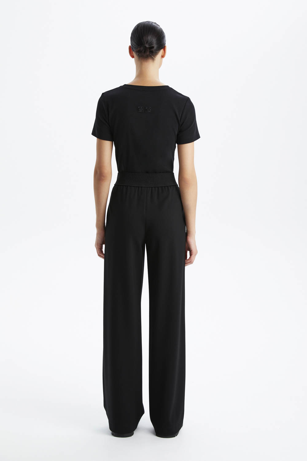 Широкие брюки выполнены из плотного мягкого джерси глубокого чёрного цвета, сочетая комфорт и современный дизайн.