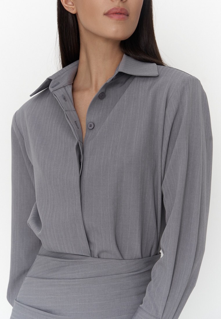 Этот костюм из одной ткани – рубашка и короткая юбка в сборку. Стильный и удобный, он отлично подойдет для повседневного образа. Рубашка хорошо сочетается с юбкой, подчеркивая женственность силуэта.