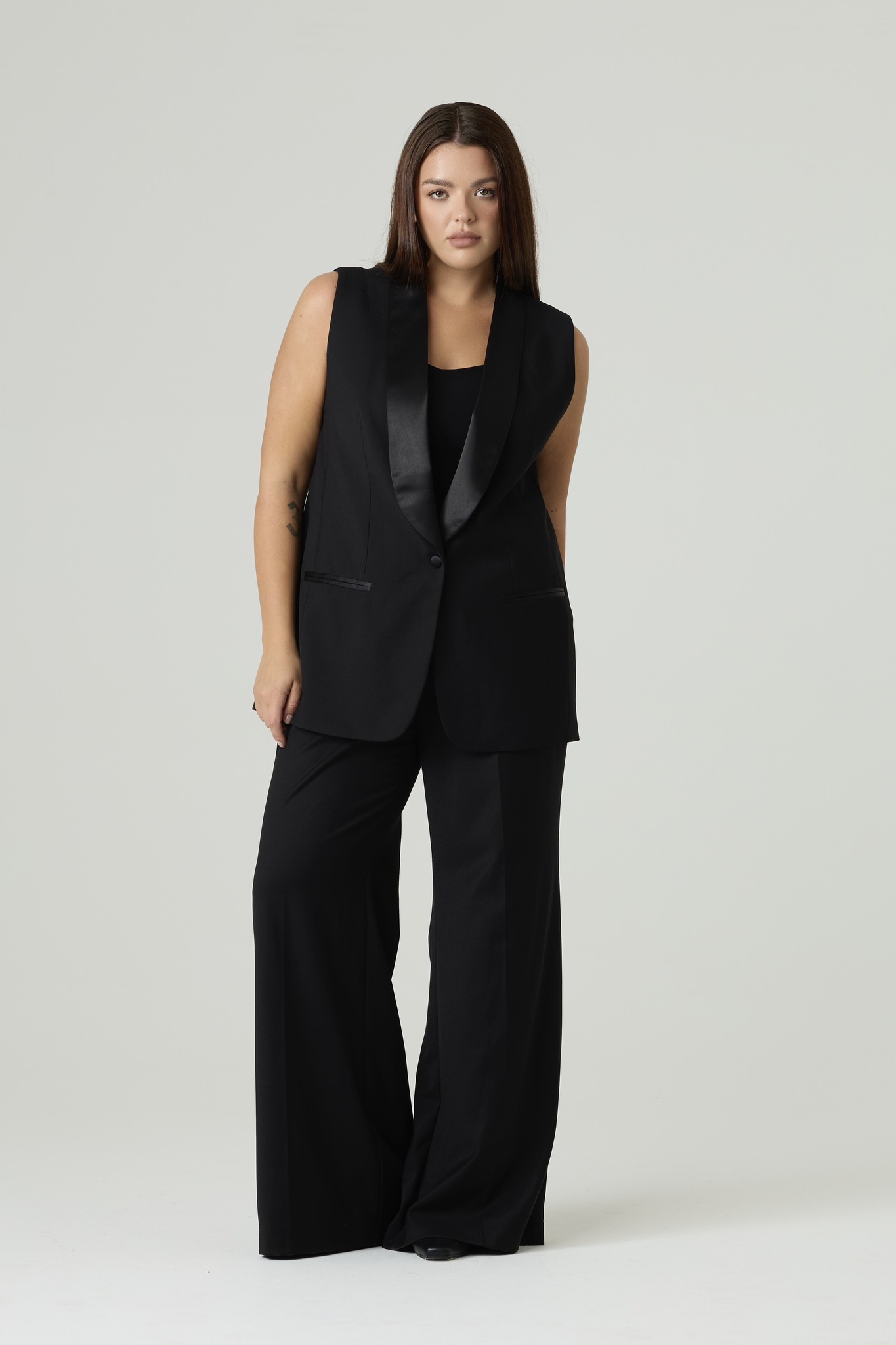 - классический воротник-шалька из атласа придает модели изысканность и стиль