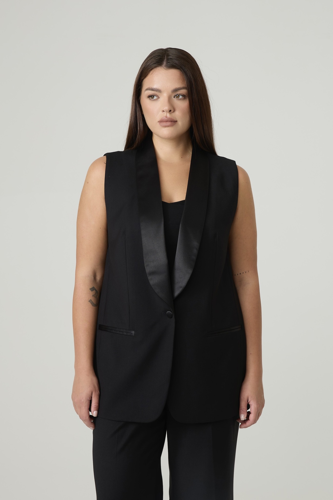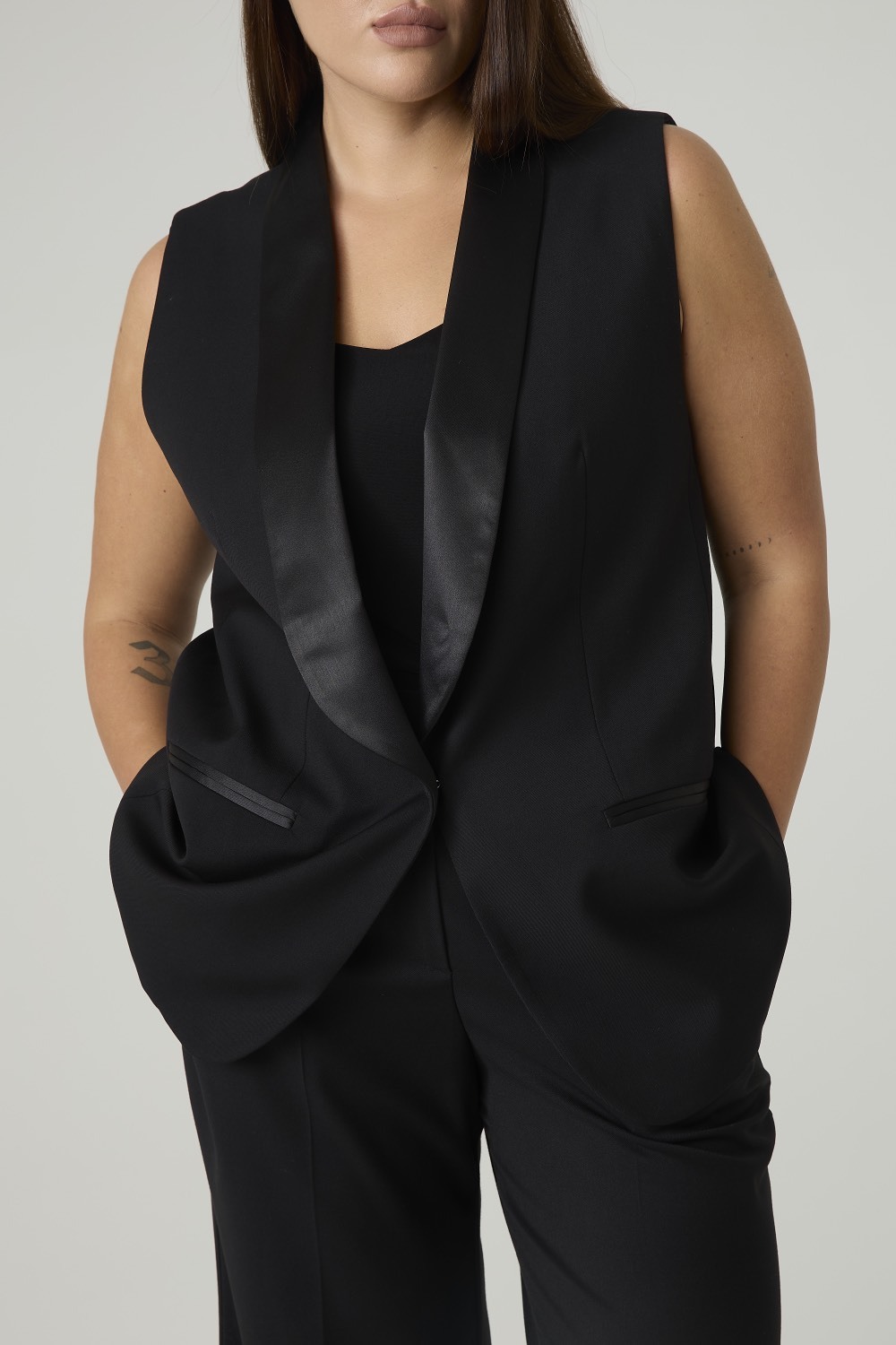 - отсутствие рукавов позволяет использовать жилет как самостоятельный элемент или в сочетании с разными верхами