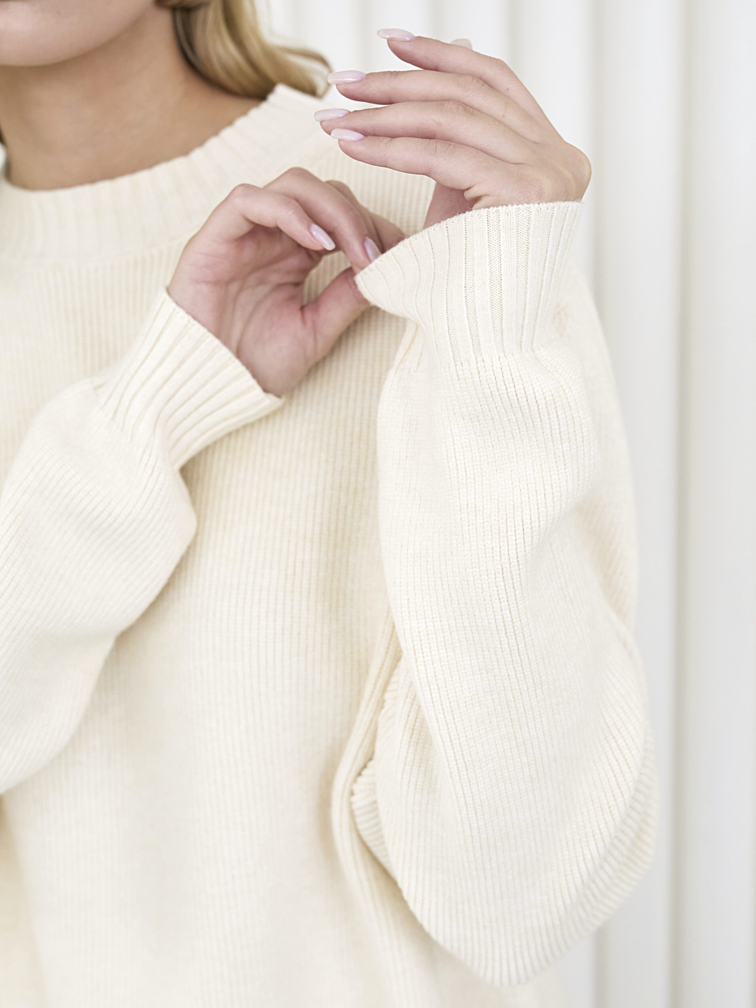 Изделия из трикотажа стирать вывернув на изнанку отдельно от других вещей, избегать длительного замачивания. Чрезмерное трение с сумками и ремнями может привести к скатыванию, в случае образования катышков аккуратно срезайте их специальной машинкой.