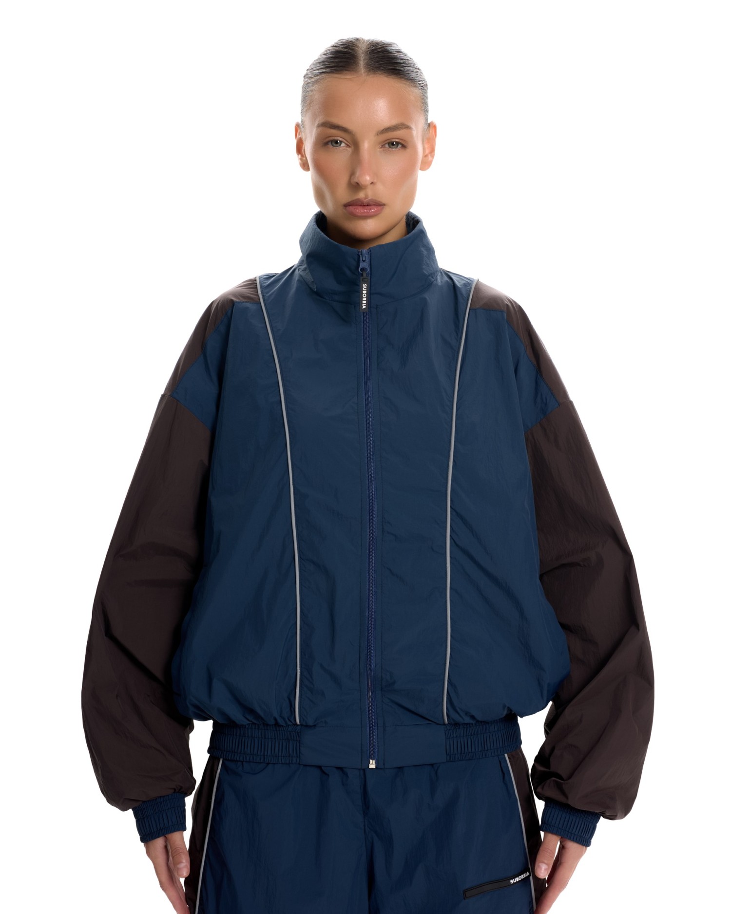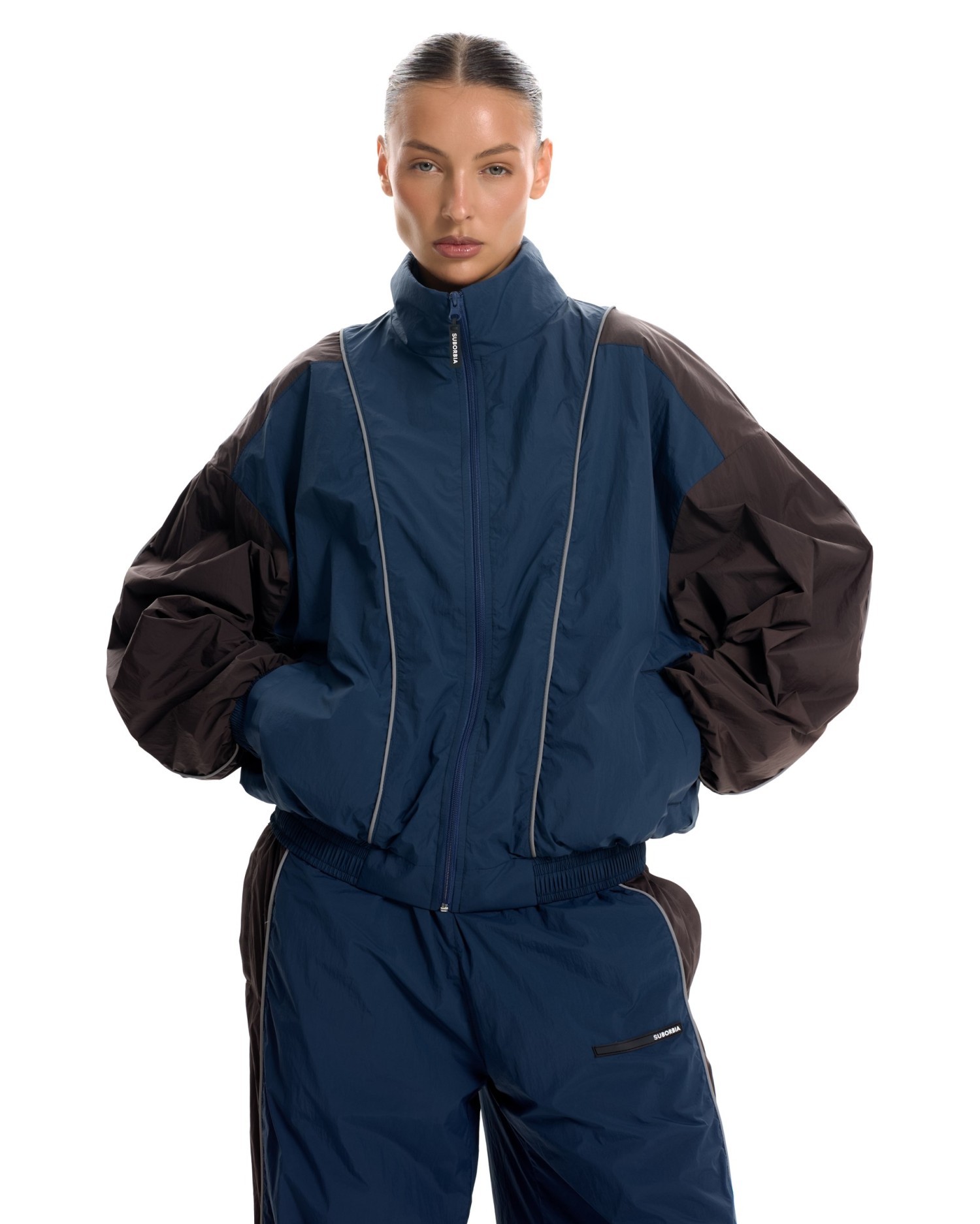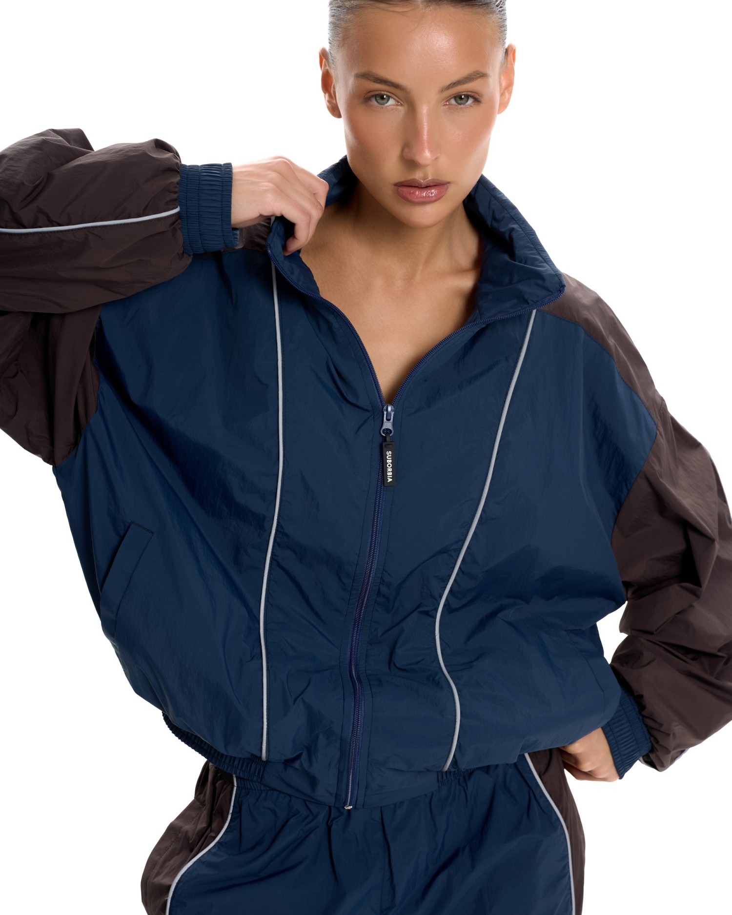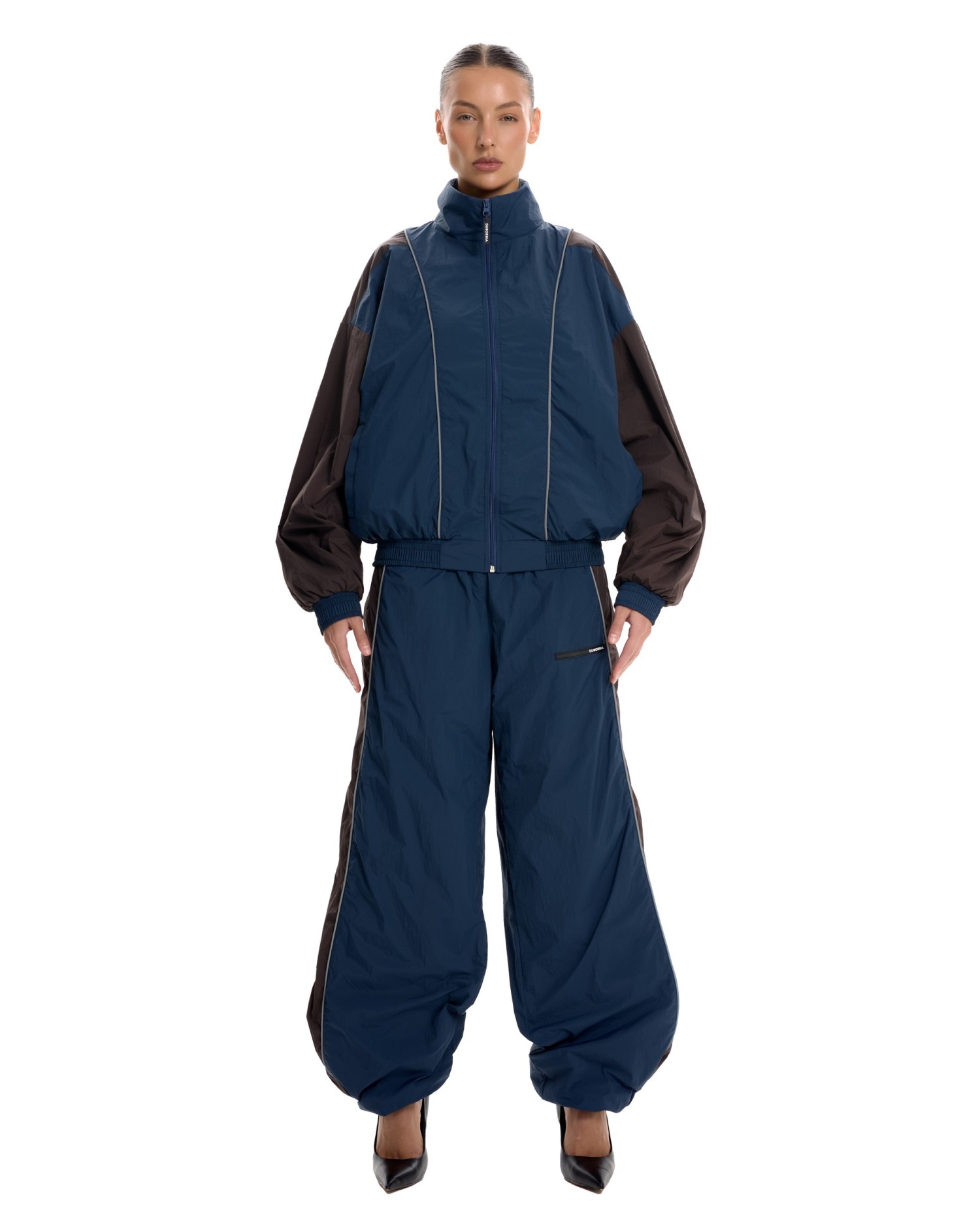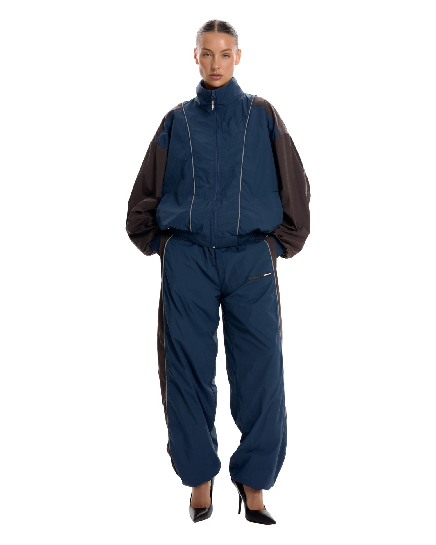 Костюм с мастеркой и брюками свободного кроя из облегченной ткани.