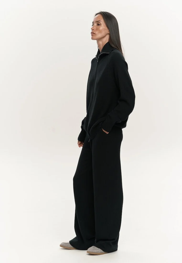 Благородное кашемировое волокно характеризуется чрезвычайной тонкостью и ценными сохраняющими тепло свойствами, обеспечивающими одновременно тепло, защиту и легкость при носке.Кардиган на молнии и эластичный пояс на штанах придают изделию комфорт. Лаконичный силуэт характеризует свободный крой модели.