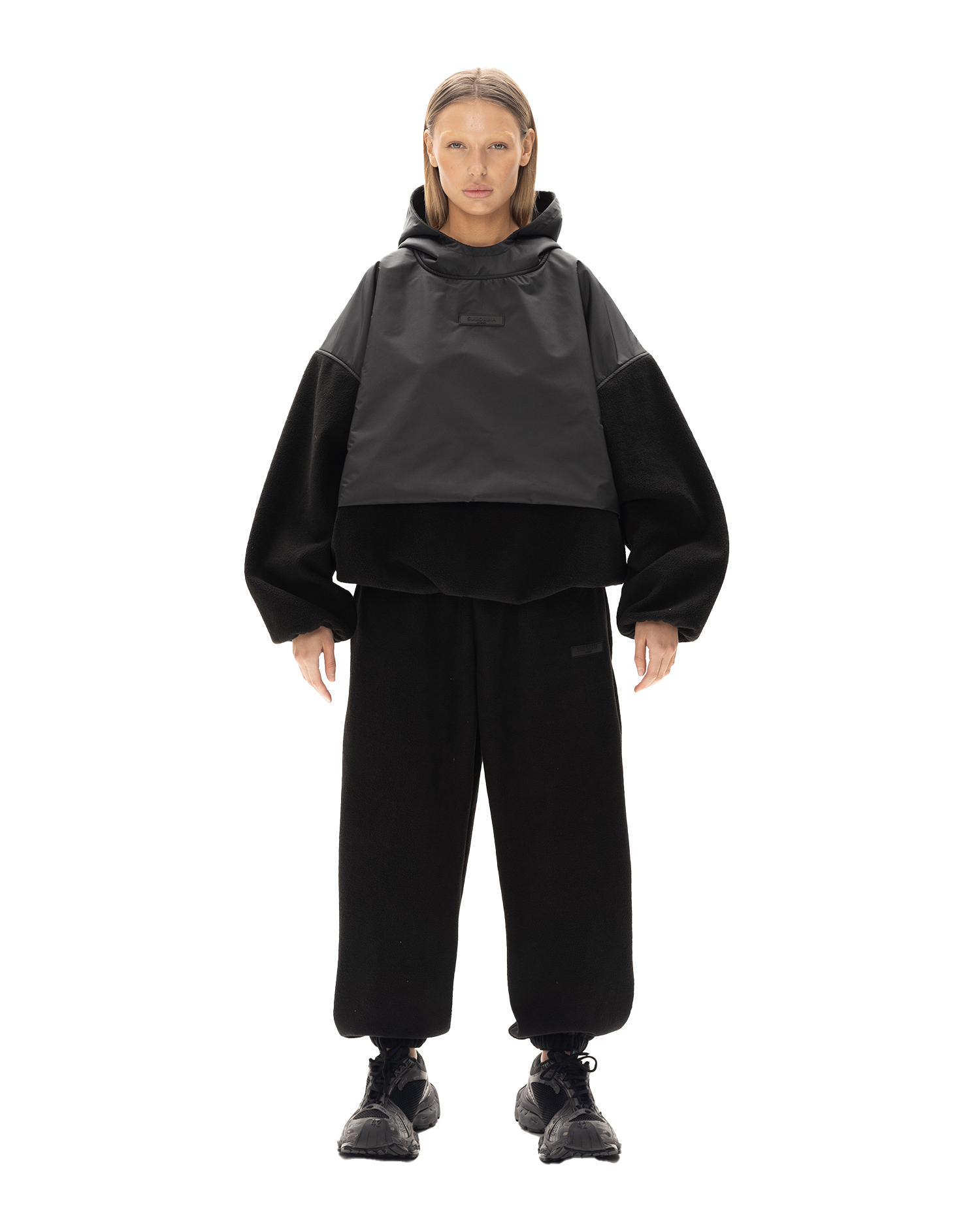 Костюм из футера-интерсофт со вставками из влагозащитной мембраны.