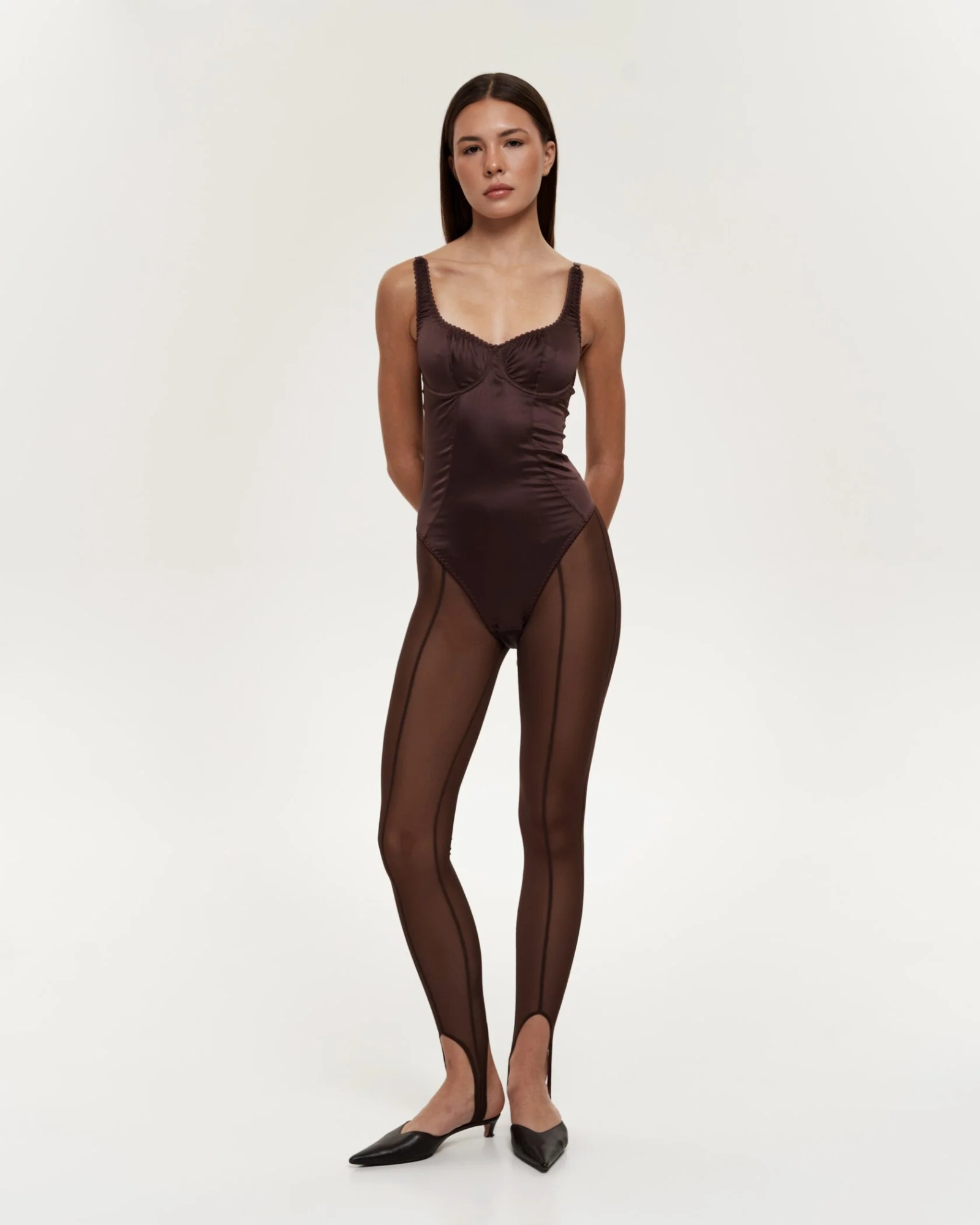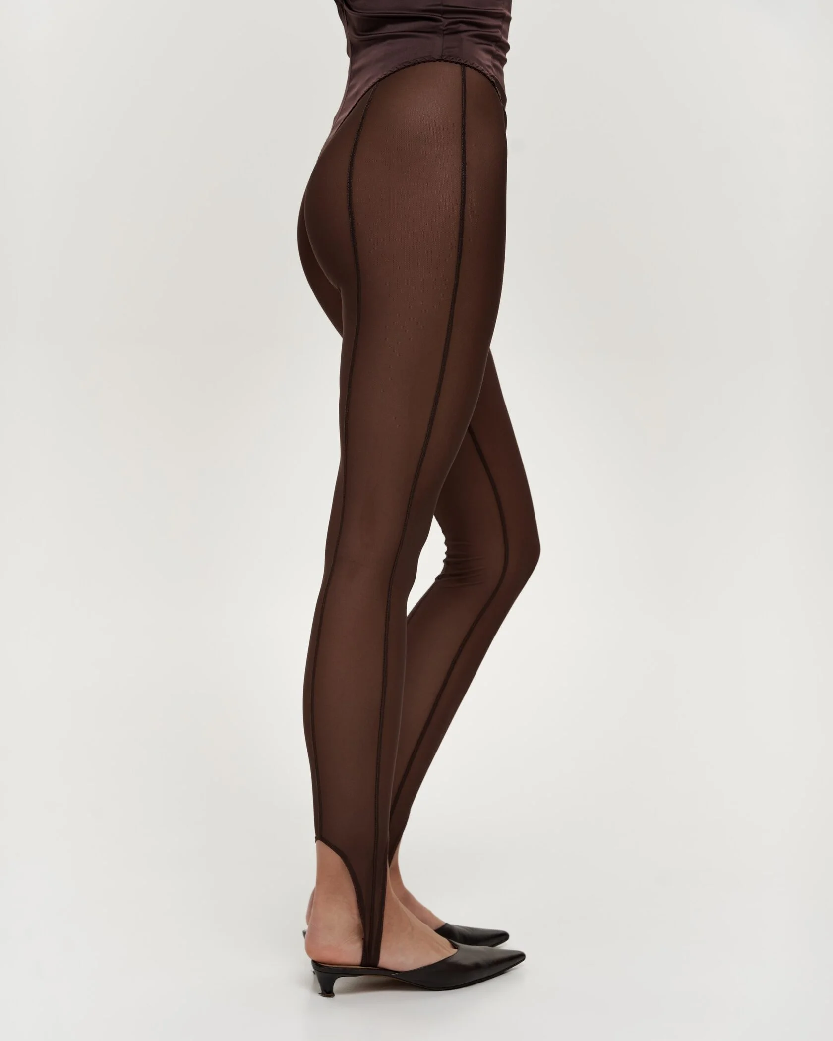 Штрипки DRAMA COCOA — облегающие штрипки из плотной сетки в цвете шоколад. Полупрозрачная текстура подчёркивает силуэт, добавляя образу дерзости и элегантности. Идеальны для вечерних выходов, стильных многослойных сочетаний и смелых повседневных луков.