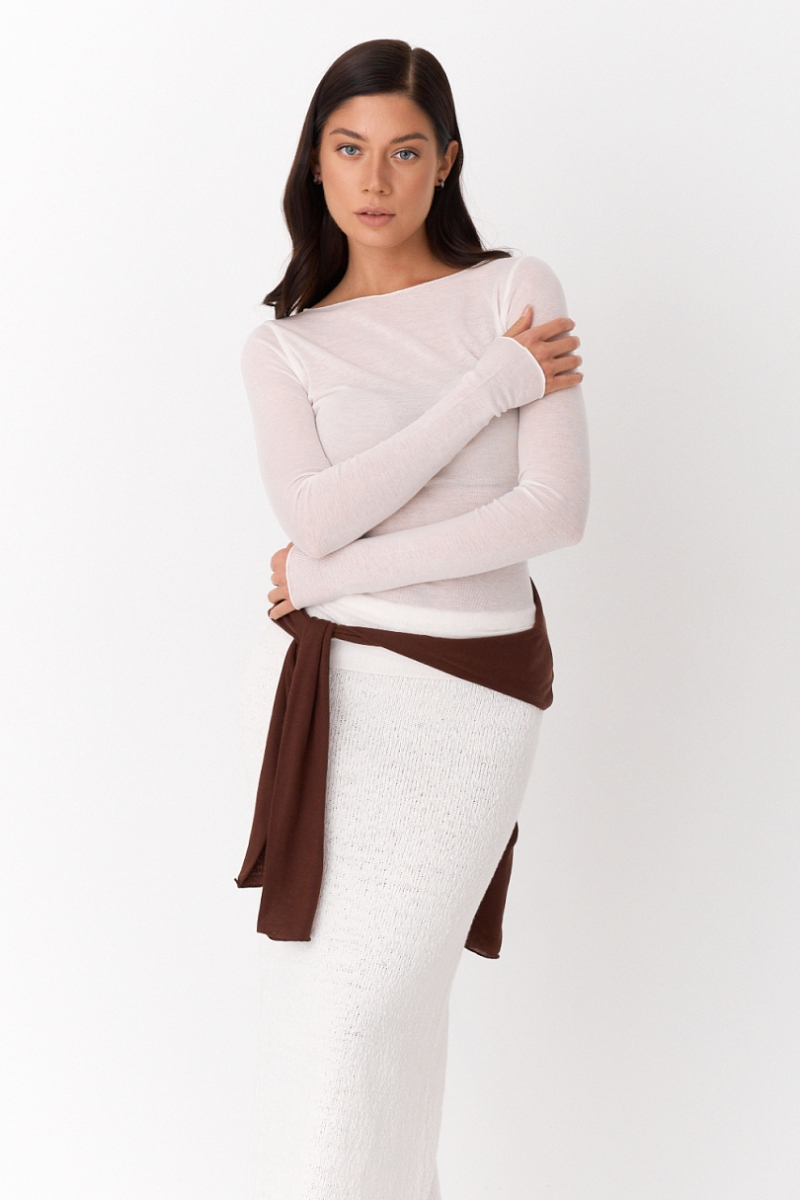 Лонгслив из мягкой и нежной ткани, которая покорит Вас при первой примерке. Тонкий трикотаж, декоративная отделка низа изделия. Выполнен в расслабленном свободном крое. Деликатный вырез горловины, ненавязчиво обрамляет линию ключицы. Длина лонгслива позволяет носить его как в расправленном виде, так и в заправленном. Отличная база под жакеты.