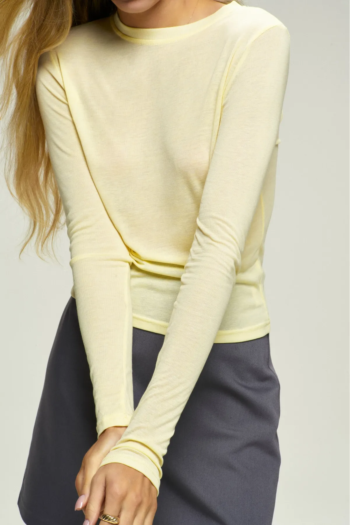 Один «универсальный» размер благодаря продуманному крою по фигуре подходит большинству типажей, подчёркивая силуэт без лишней обтяжки. Правильная линия плеч создаёт аккуратный ровный плечевой контур, а удлинённые рукава придают лонгсливу современный характер и обеспечивают дополнительный комфорт.