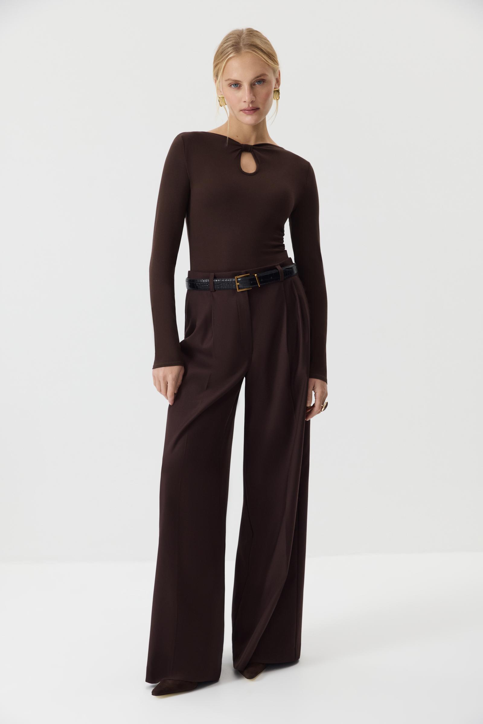 Впишите лонгслив в классические монохромные костюмные выходы сохраняя сдержанный минималистичный стиль. Носите с брюками-палаццо, выбирая расслабленный образ для повседневных встреч.
