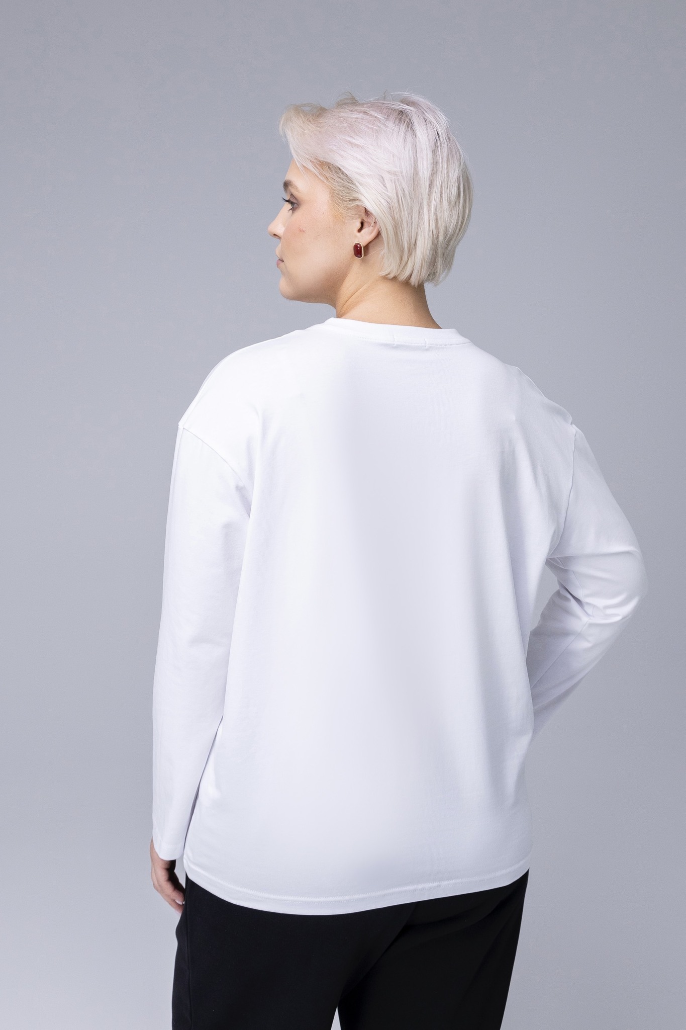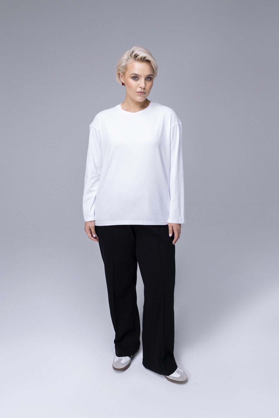 Лонгслив свободного кроя с небольшой вышивкой на груди в виде лого. Универсальная и практичная модель. Идеальная основа твоего повседневного гардероба и беспроигрышный вариант на любой случай жизни.