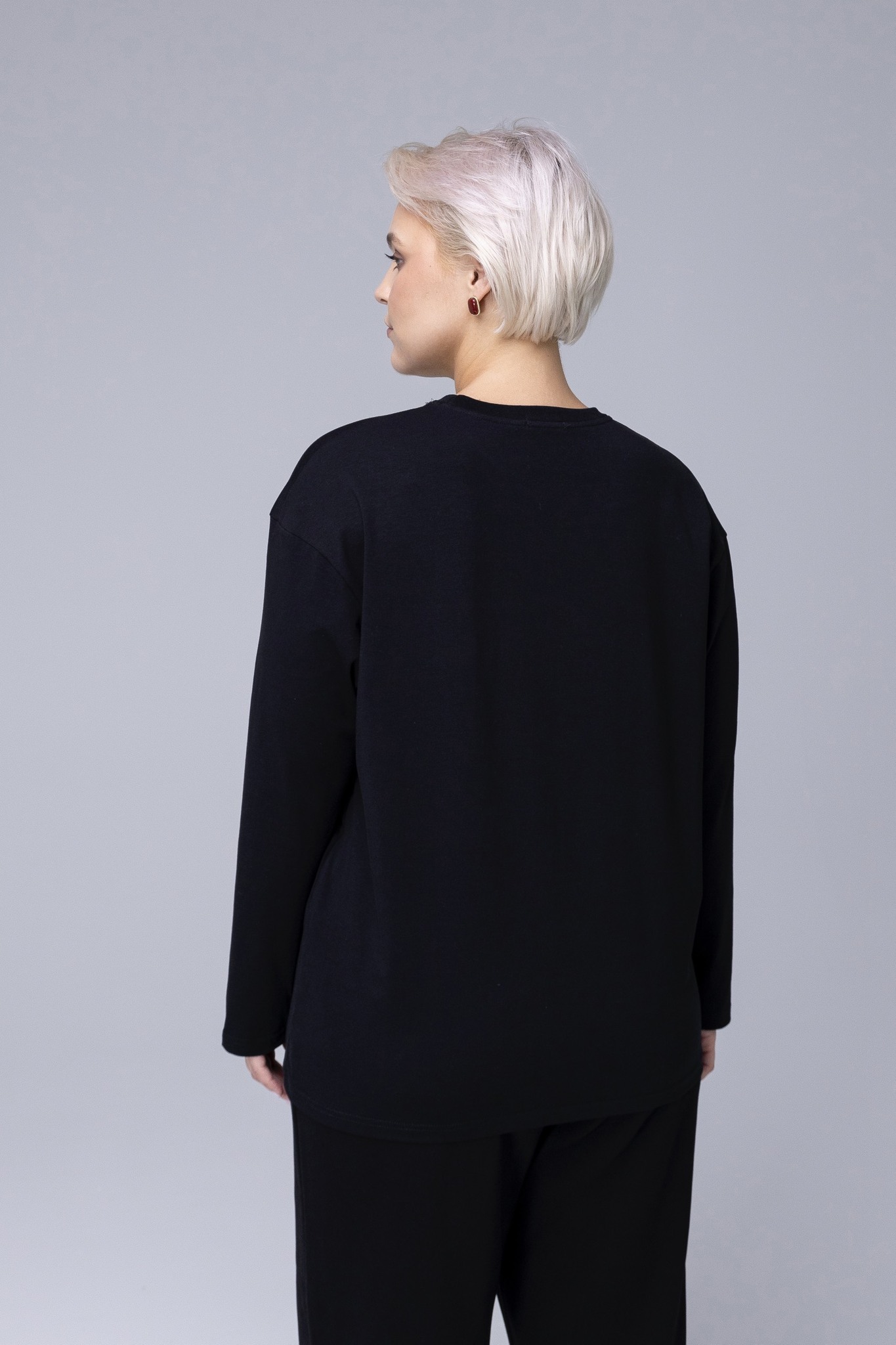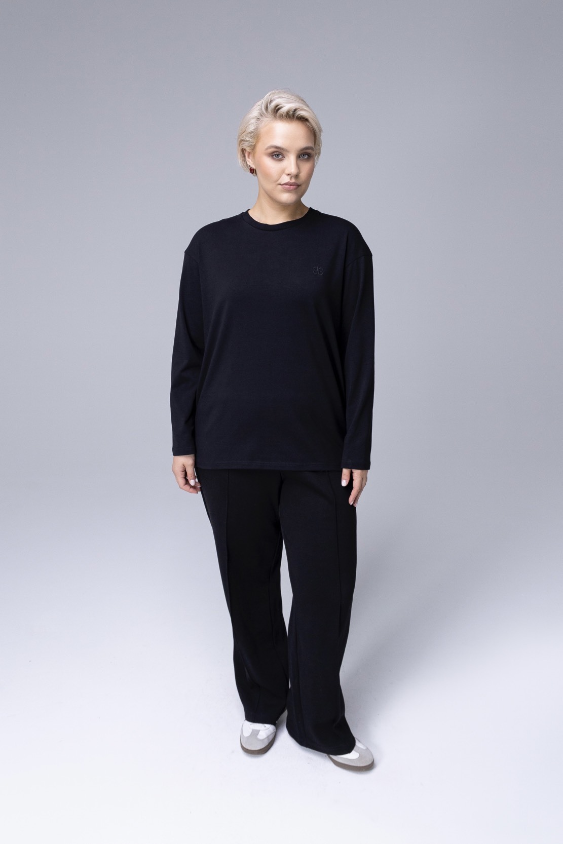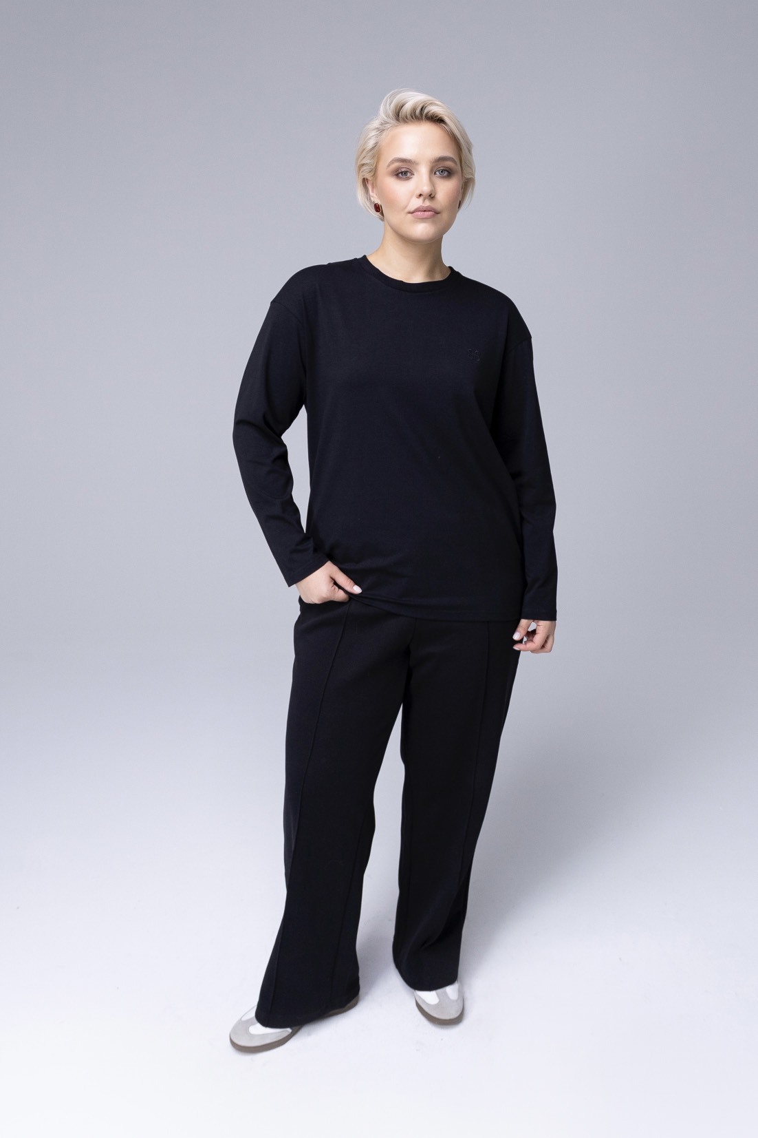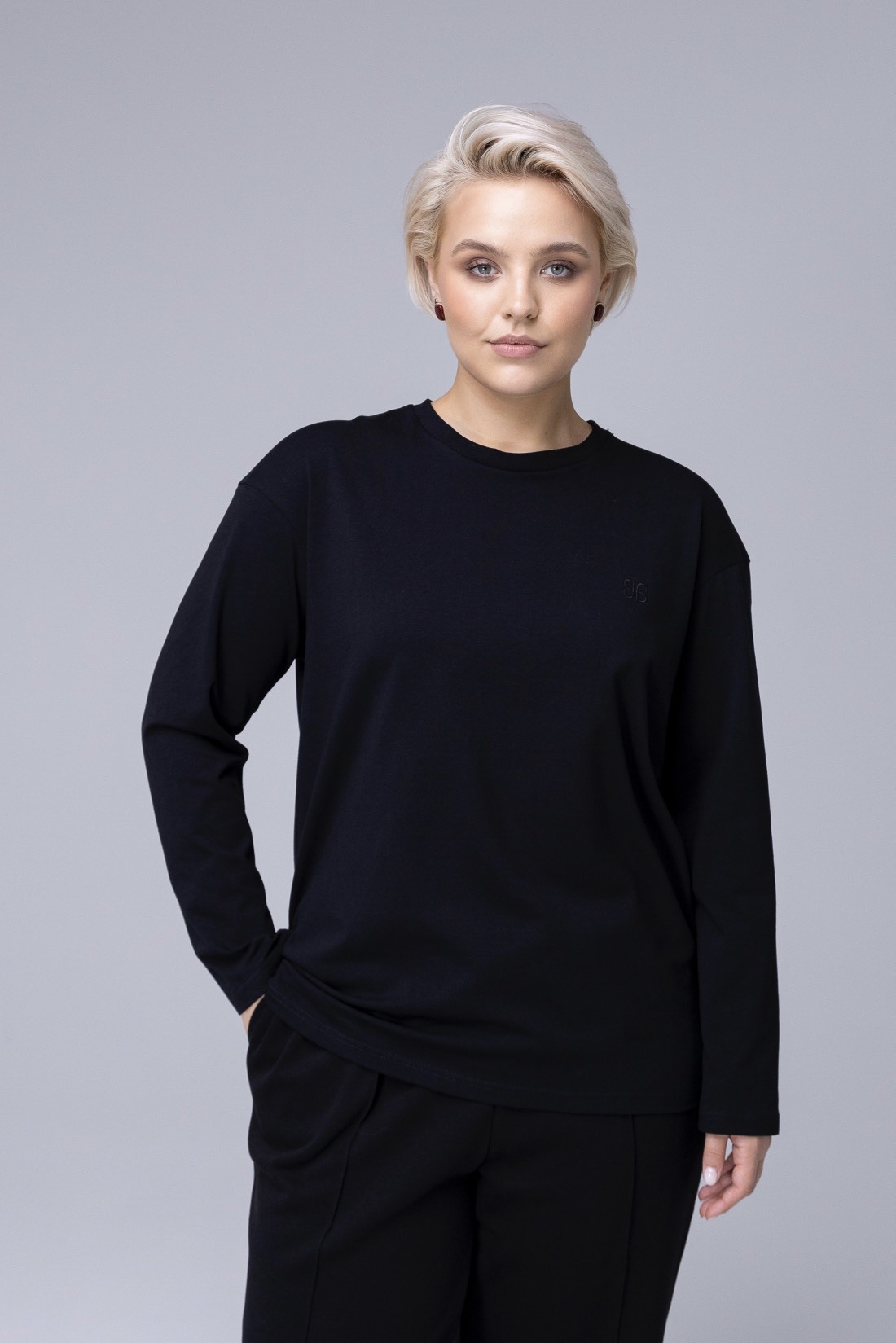 Лонгслив свободного кроя с небольшой вышивкой на груди в виде лого. Универсальная и практичная модель. Идеальная основа твоего повседневного гардероба и беспроигрышный вариант на любой случай жизни.