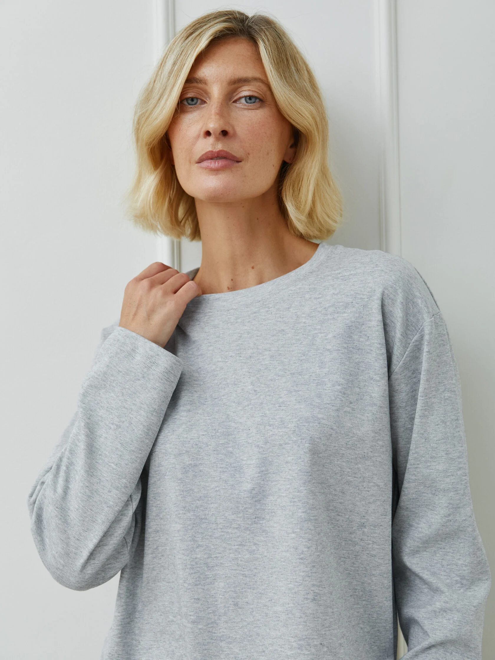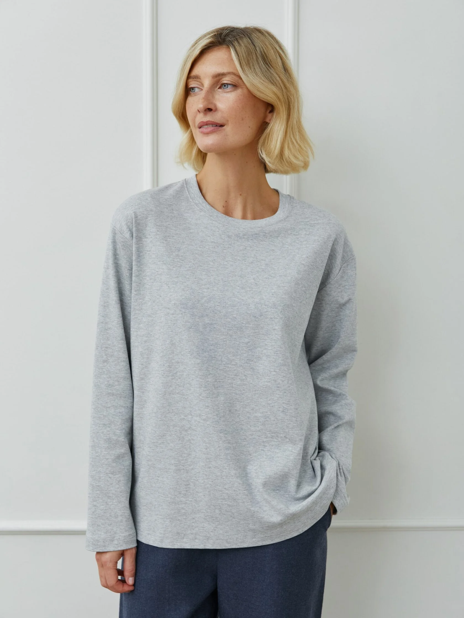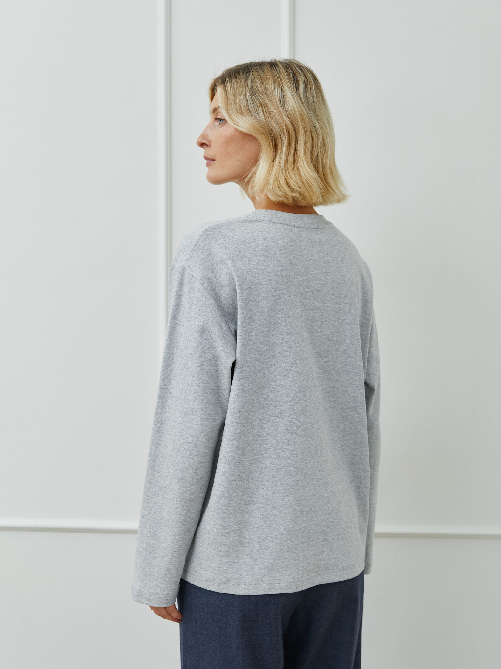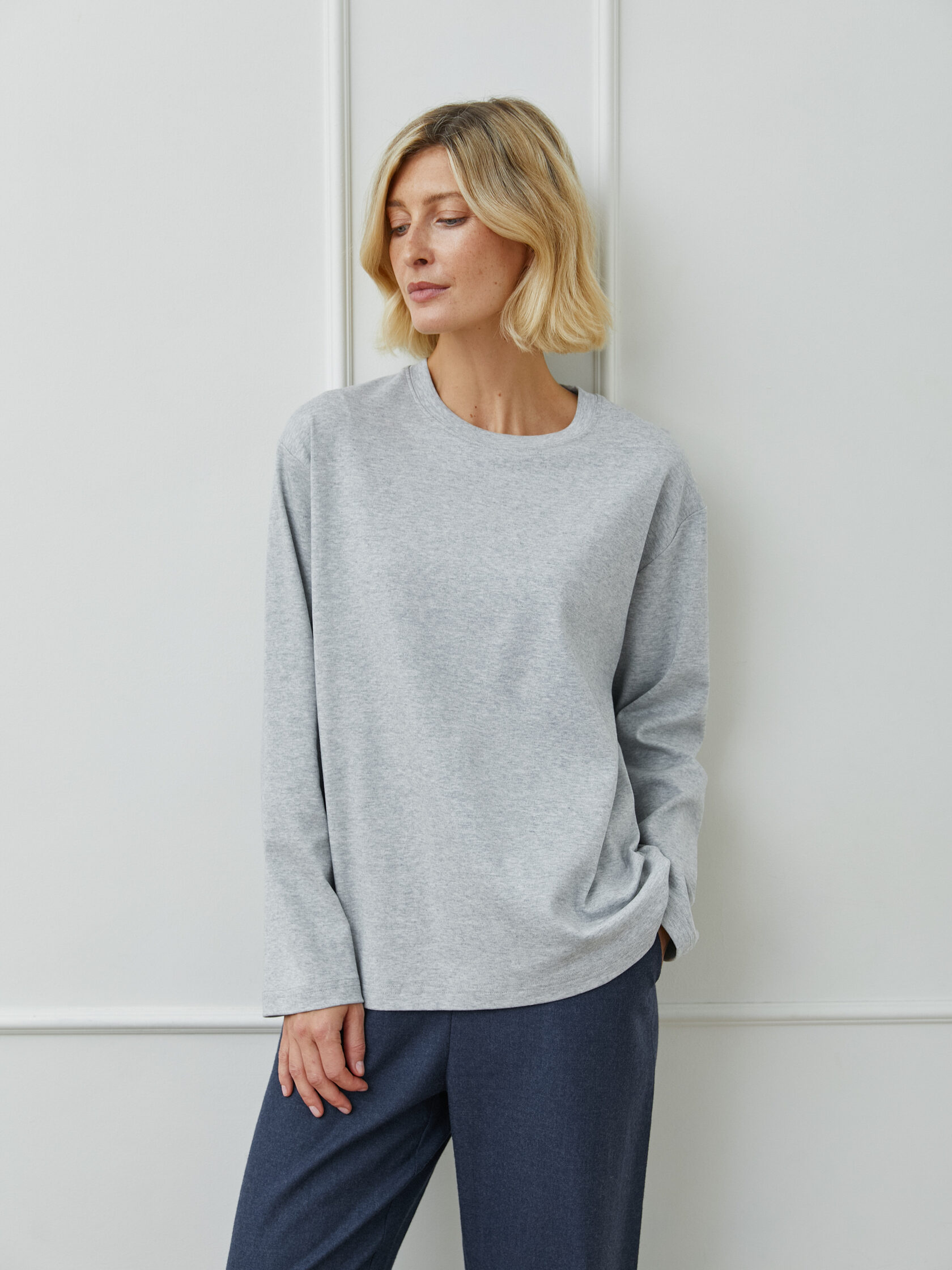 Уютный лонгслив оверсайз в сером цвете — идеальный выбор для создания расслабленного образа. Свободный крой обеспечивает комфорт, а нейтральный оттенок легко комбинируется с другими вещами из вашего гардероба.