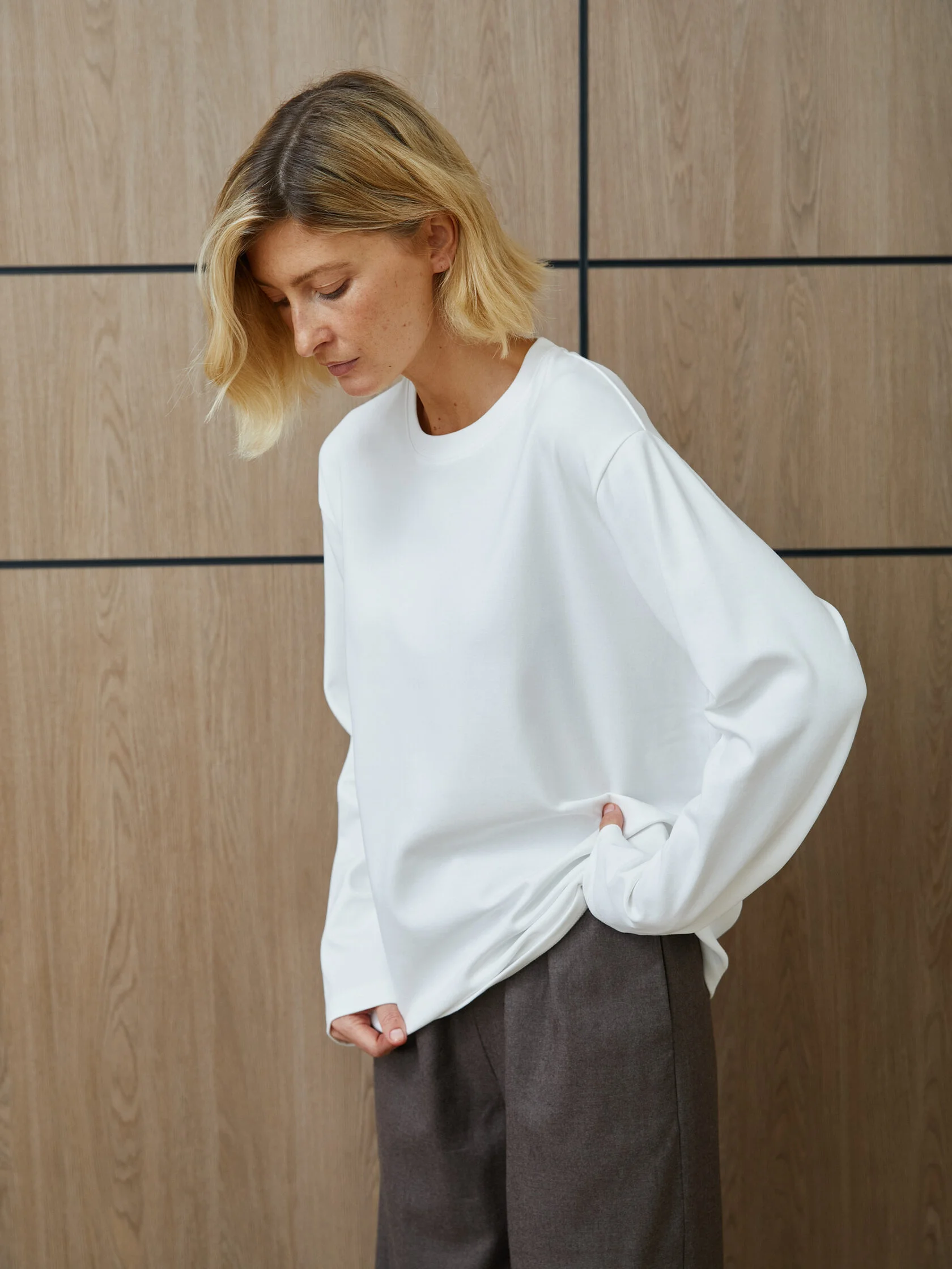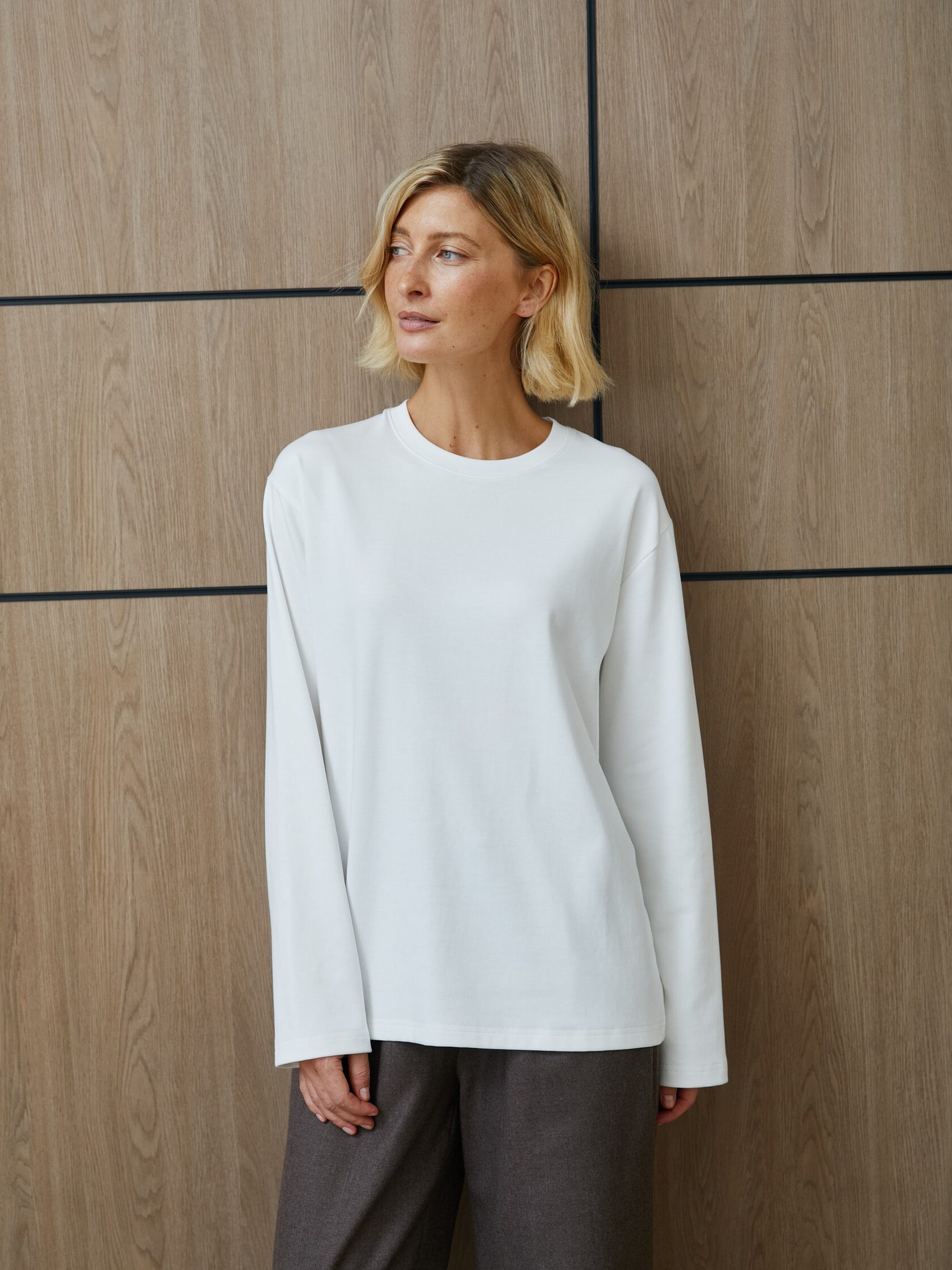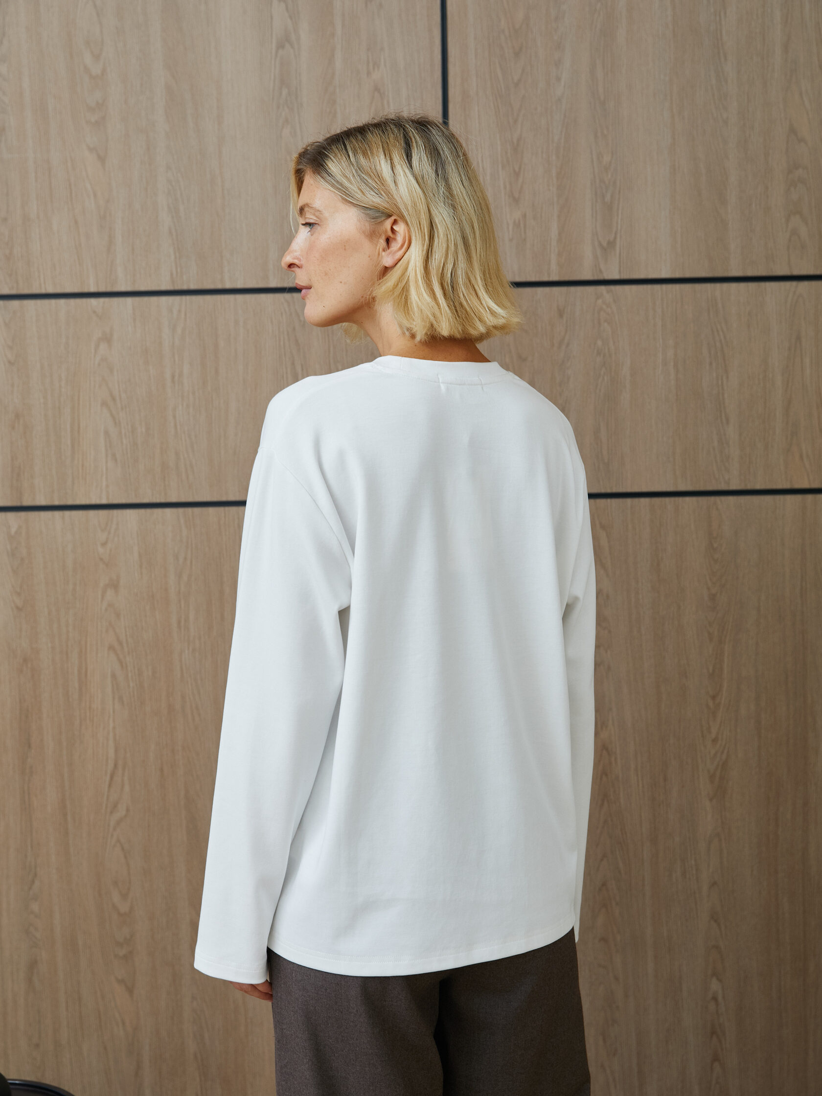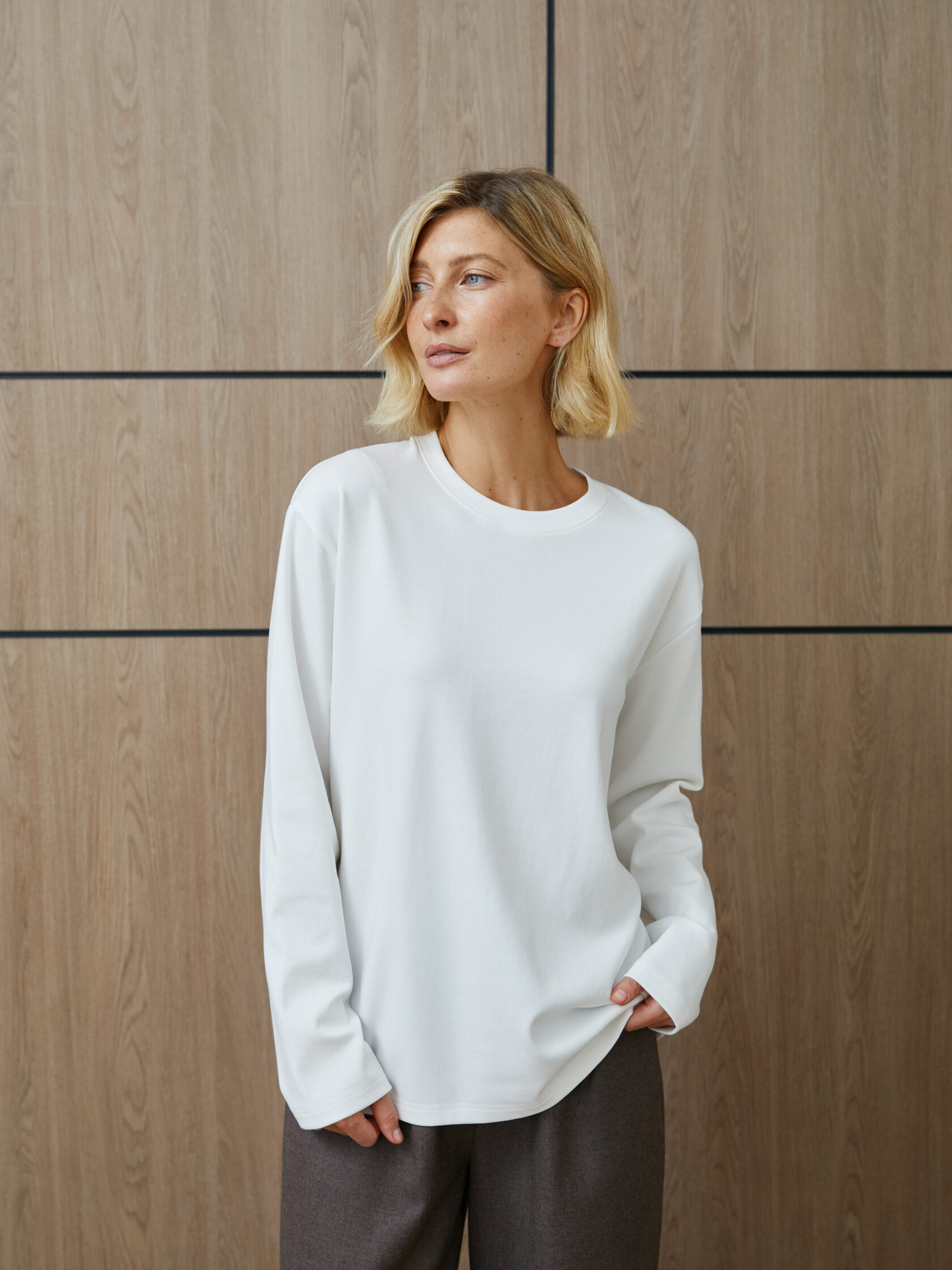 Уютный лонгслив оверсайз в белом цвете — идеальный выбор для создания расслабленного образа. Свободный крой обеспечивает комфорт, а нейтральный оттенок легко комбинируется с другими вещами из вашего гардероба.
