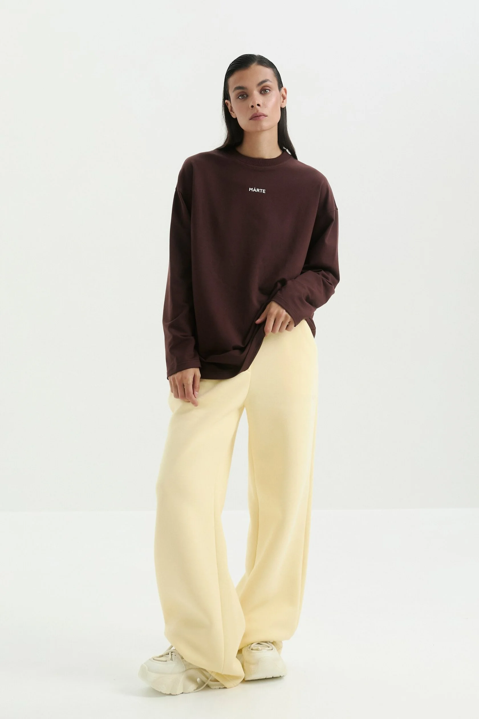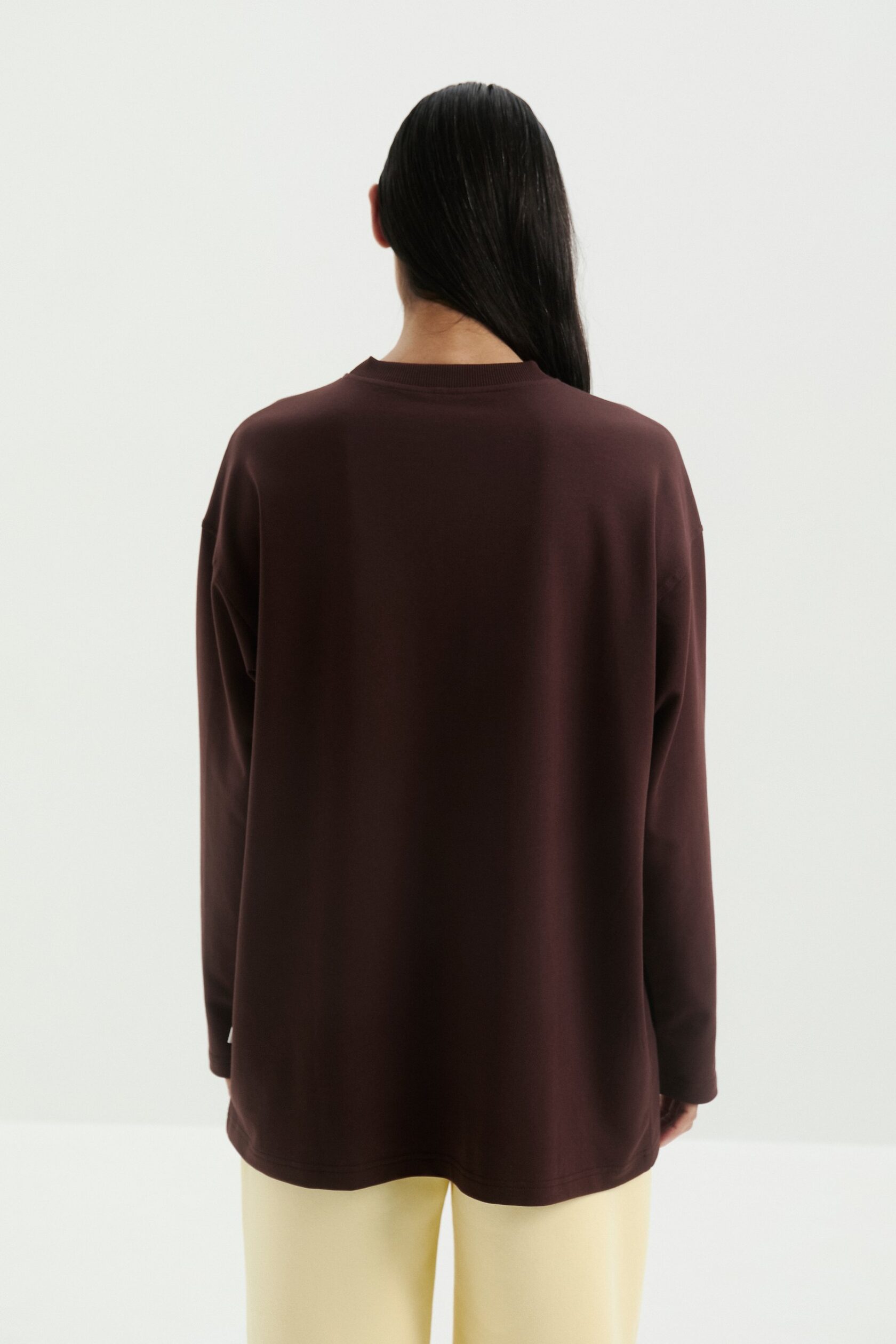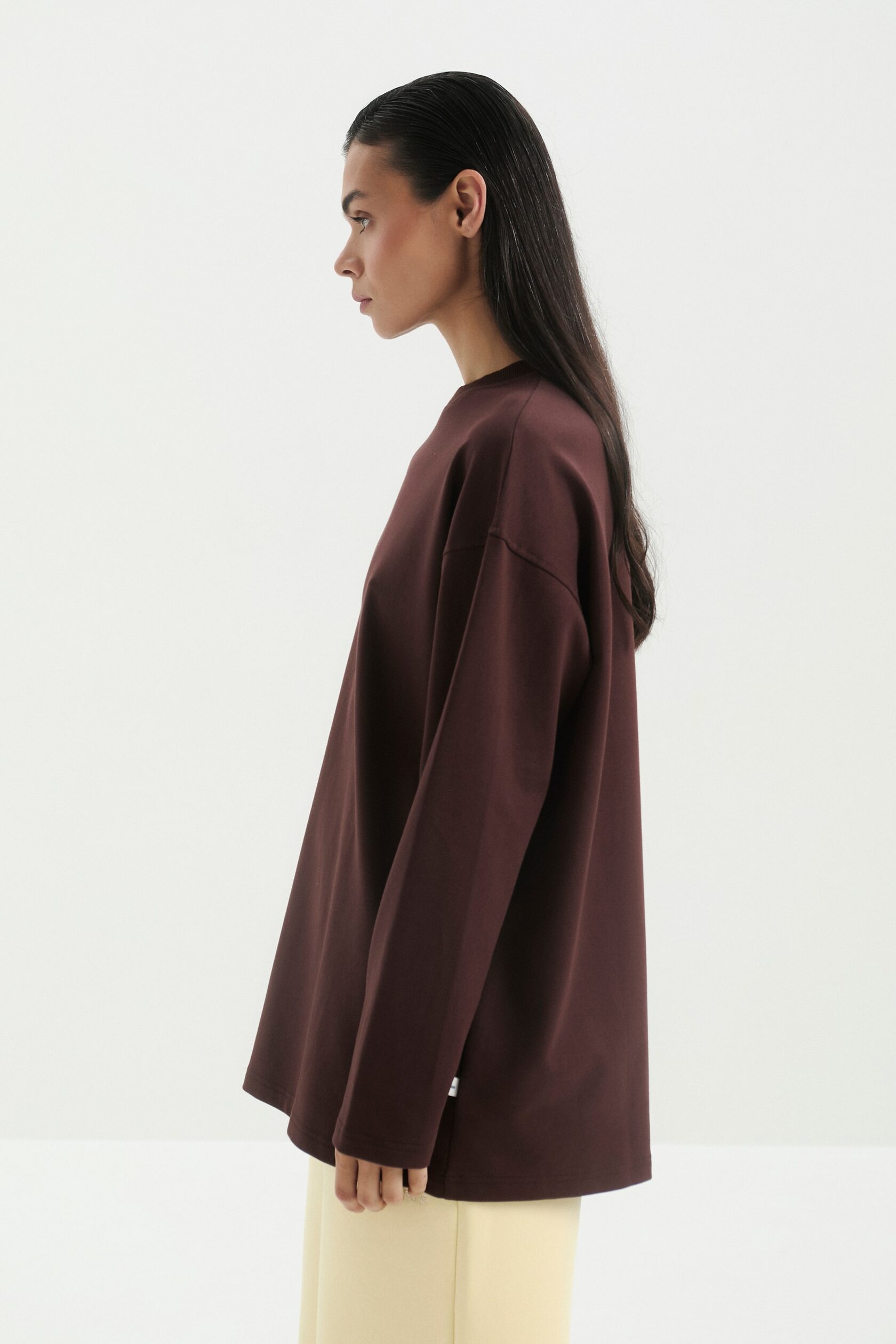 Базовый лонгслив свободного кроя — необходимая вещь в любом гардеробе. Мы хотели создать ощущение легкости и комфорта в этой модели, именно поэтому в ней нет лишних деталей.