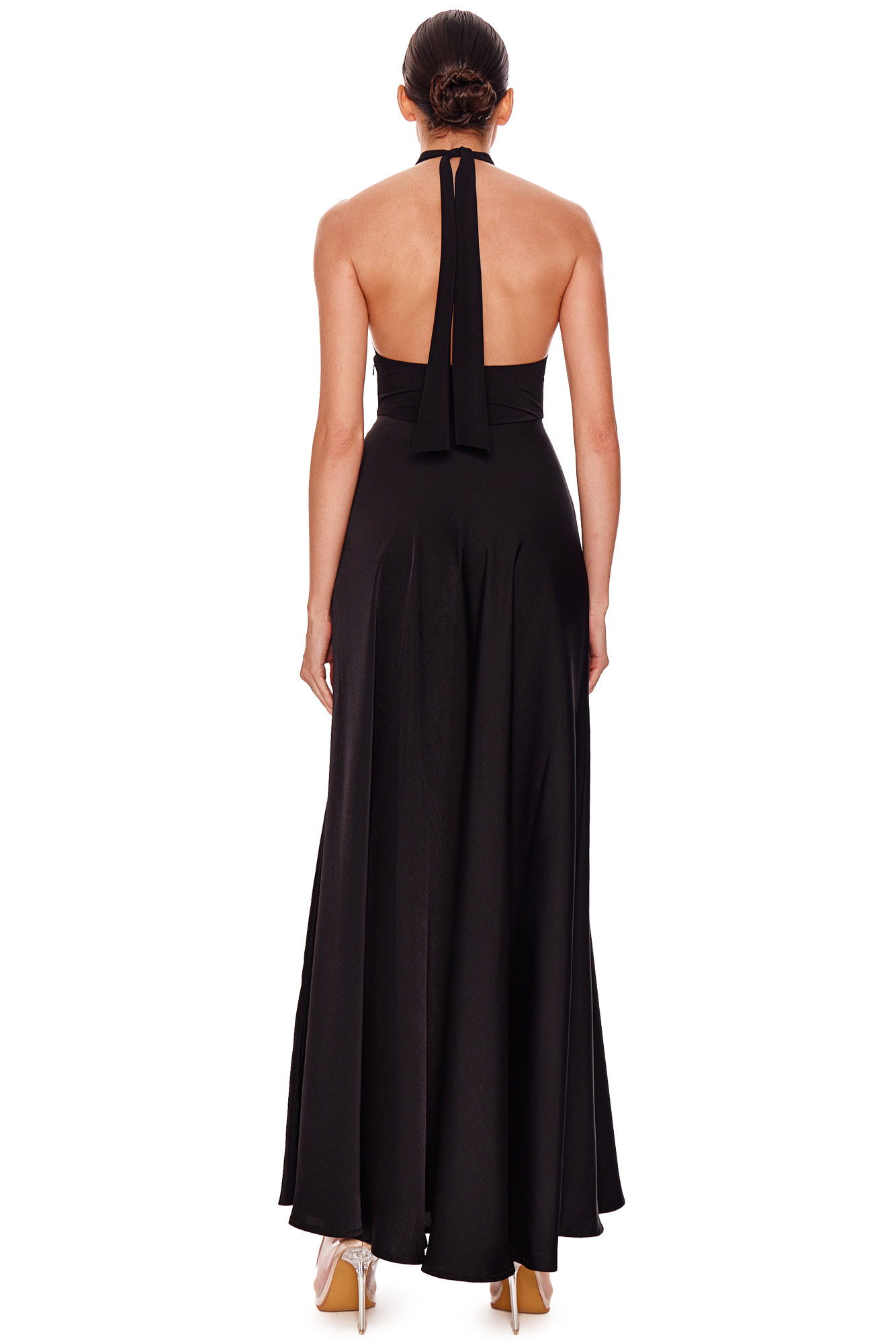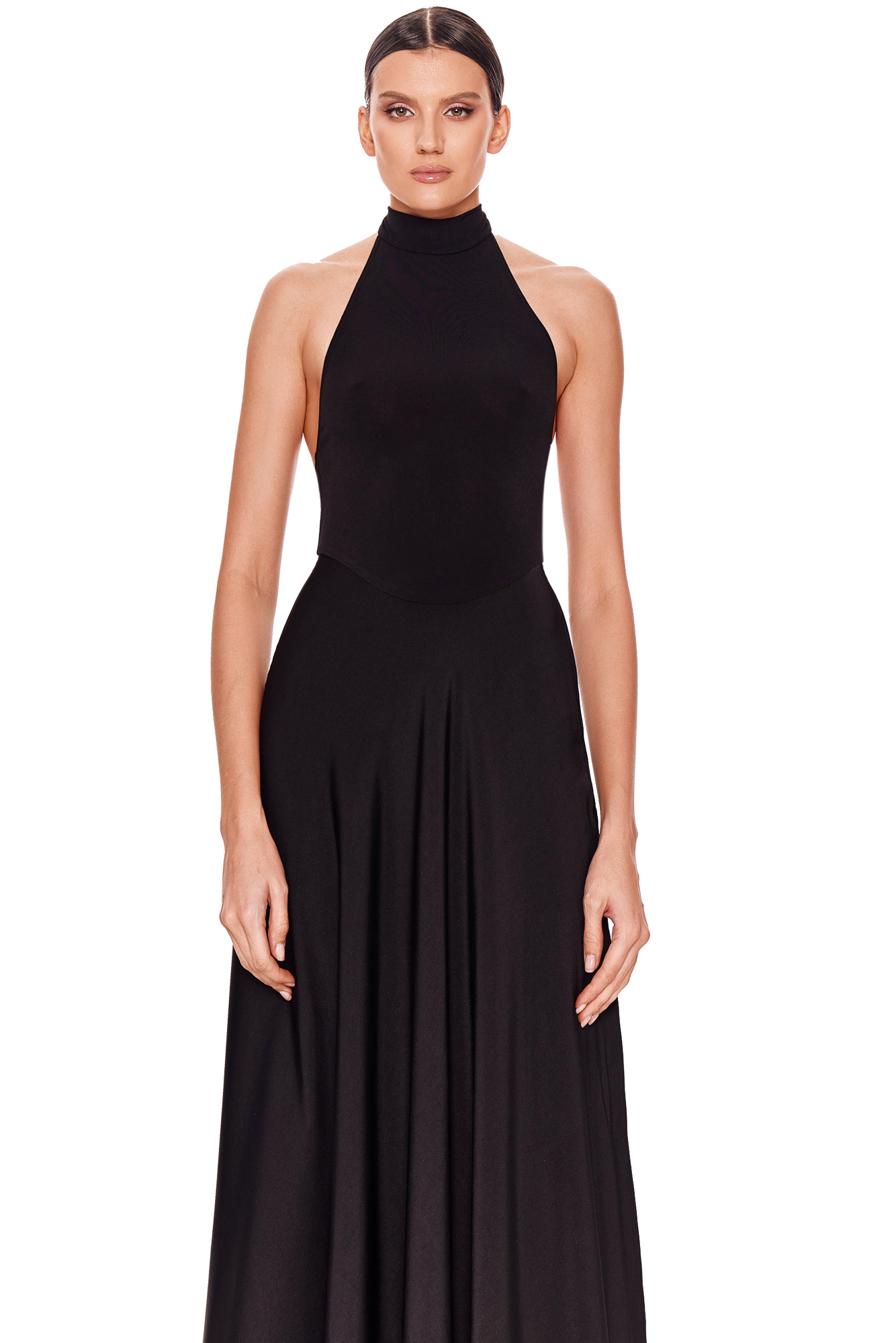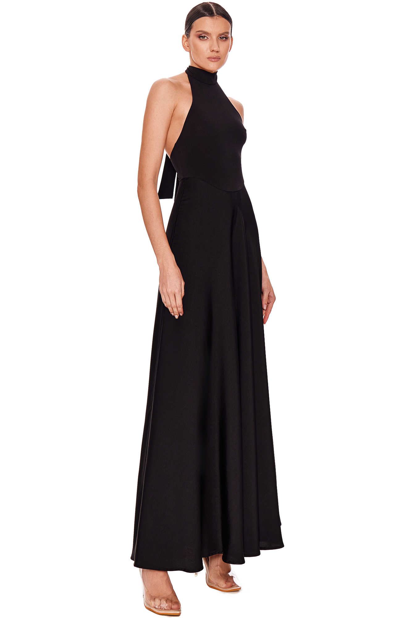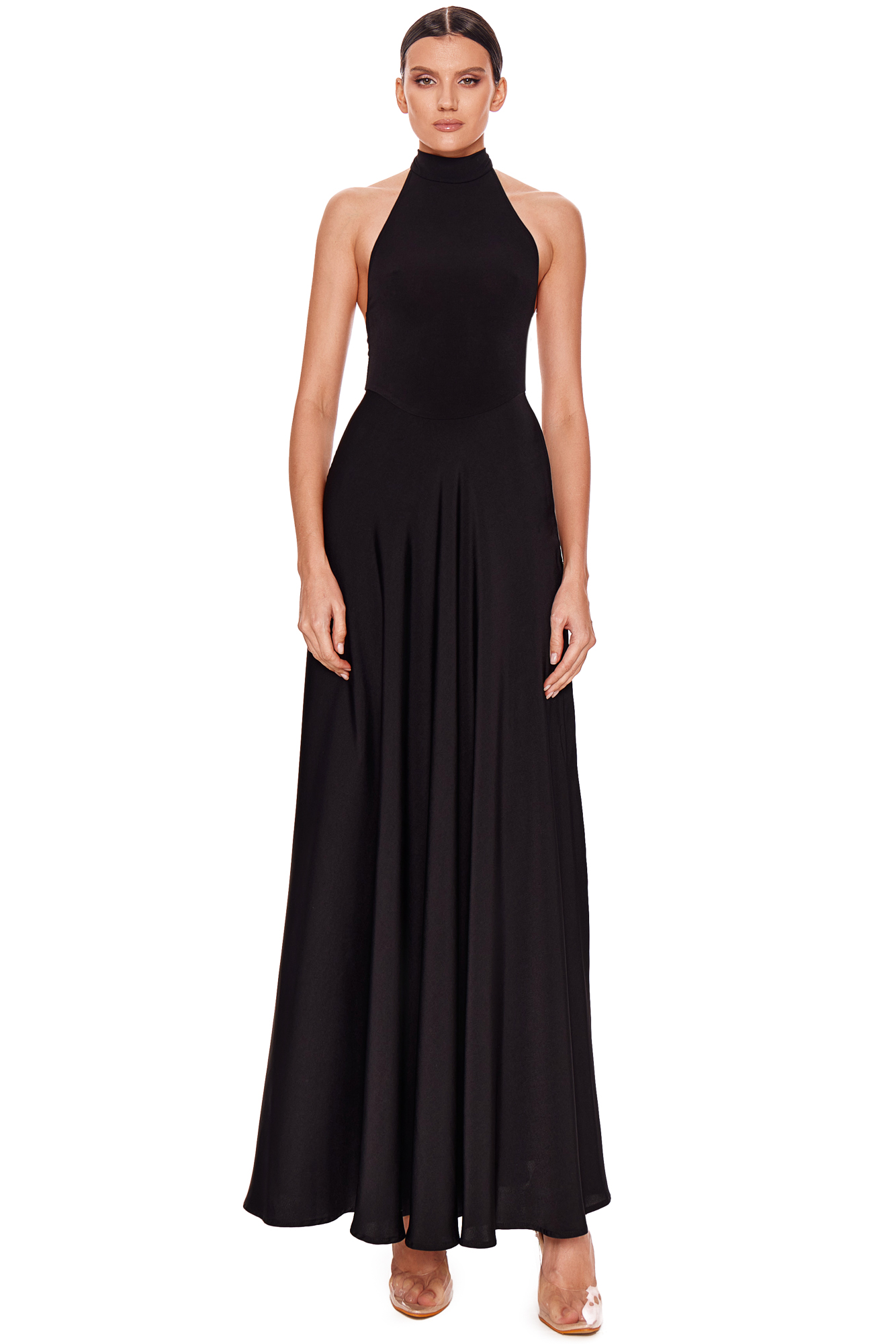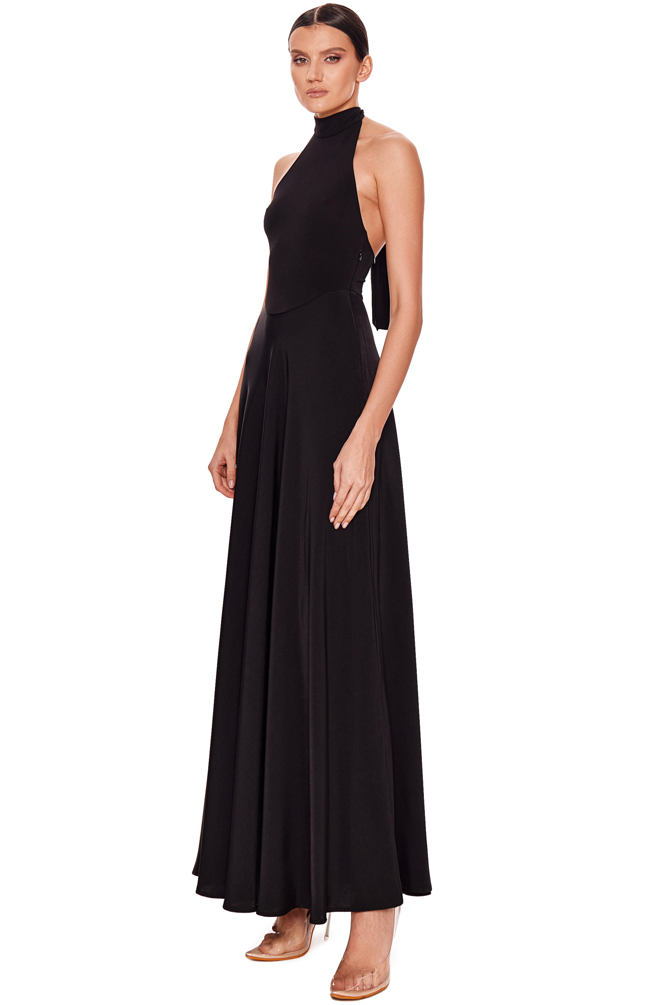 Платье в длине макси выполнено из лёгкой, струящейся ткани с деликатным блеском. Модель с американской проймой, фиксацией на широкие ленты по линии шеи и на потайную молнию в боковом шве. Низ скроен в нативном клёш с акцентами на линию бёдер и баланс пропорций. Идеальное решение для выхода в свет, особого случая, выпускного вечера. Рекомендуем сочетать с обувью на каблуке и активными аксессуарами.