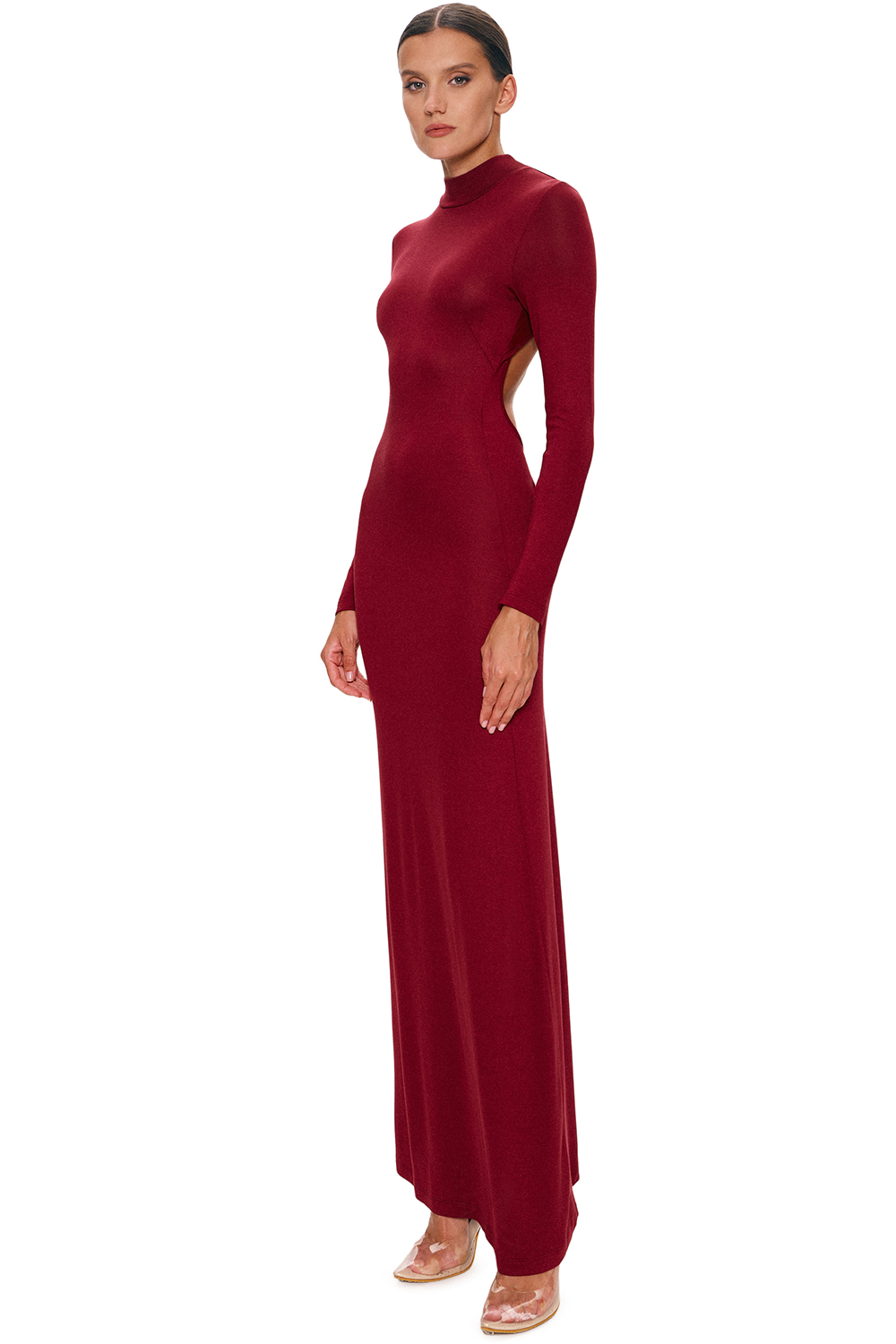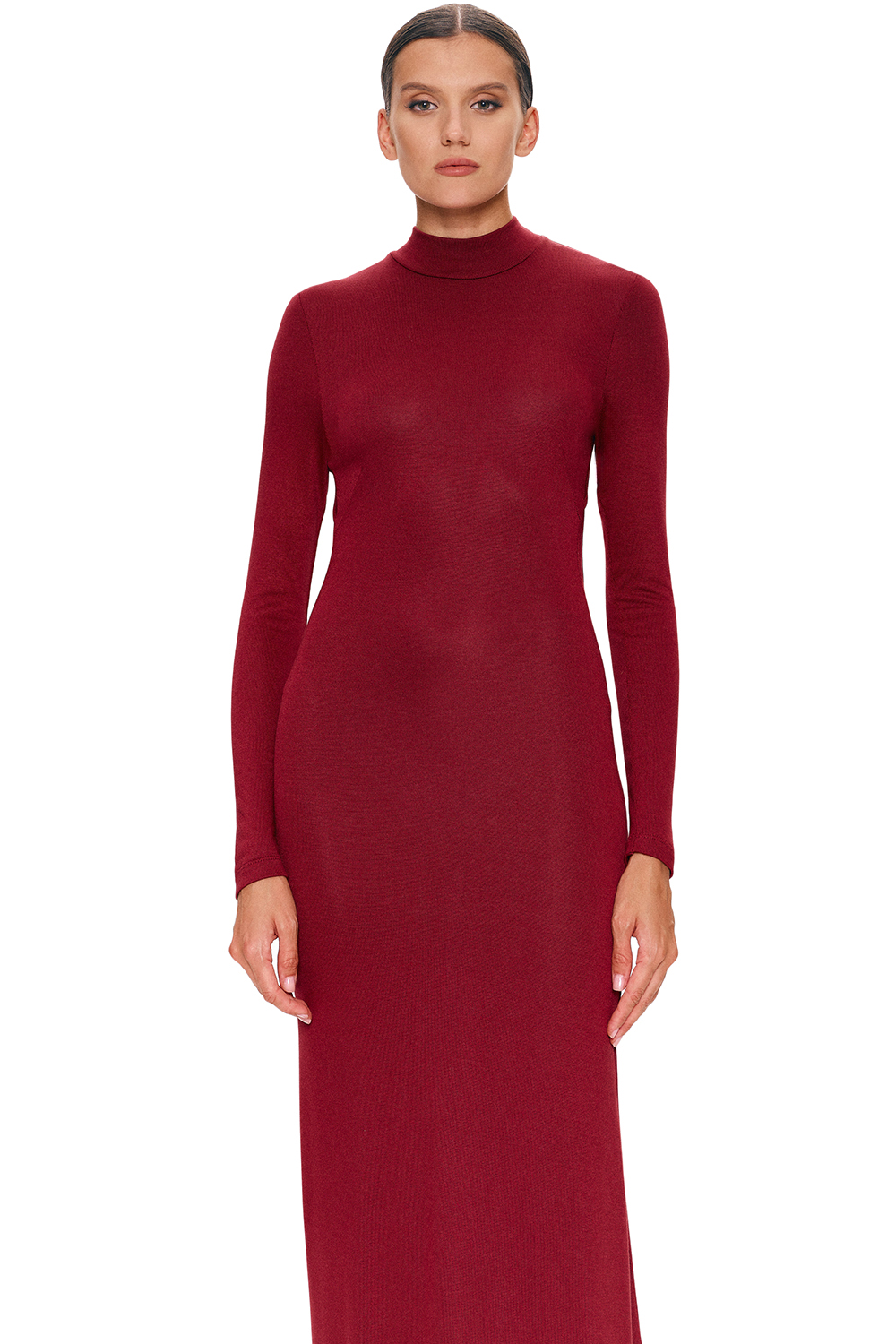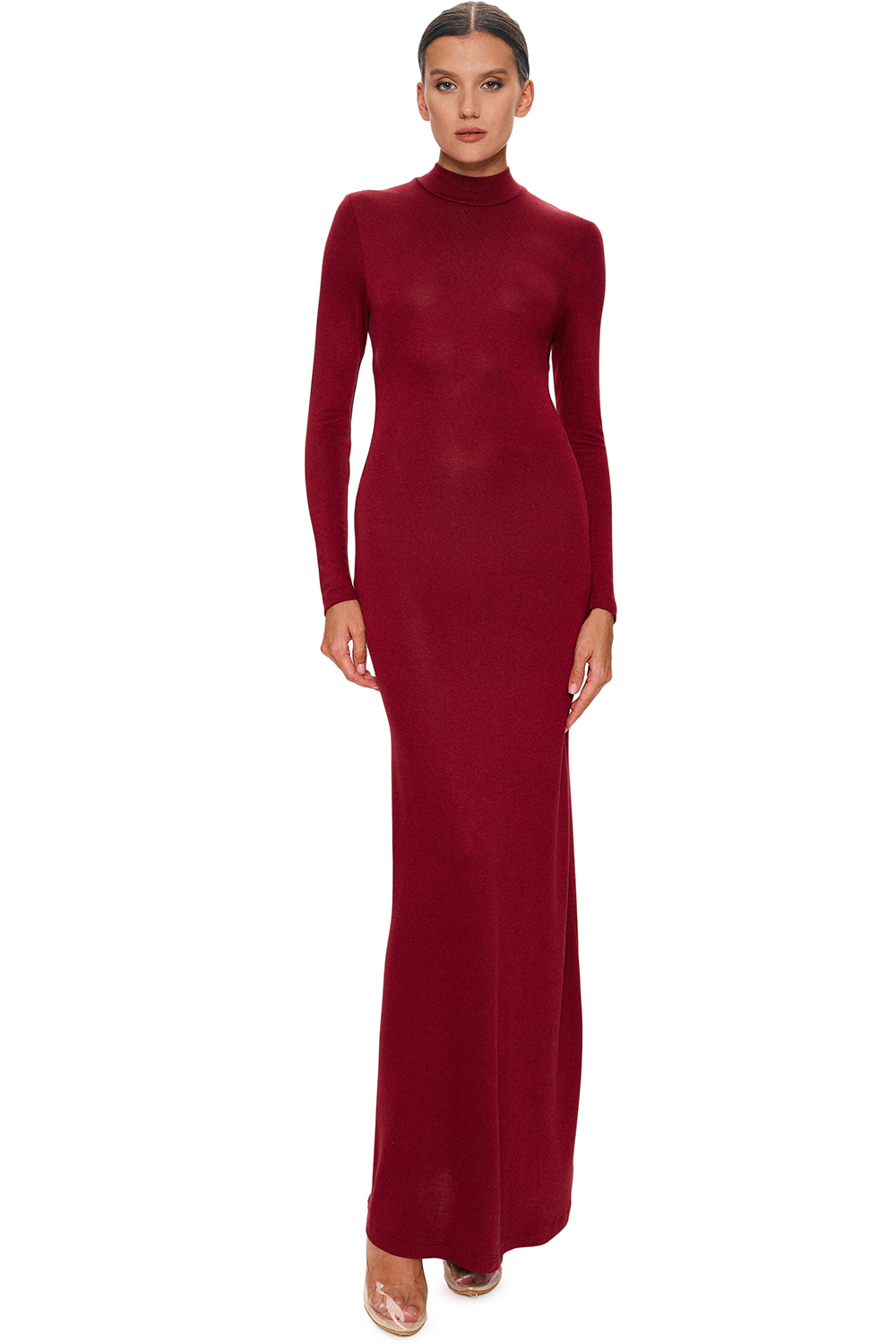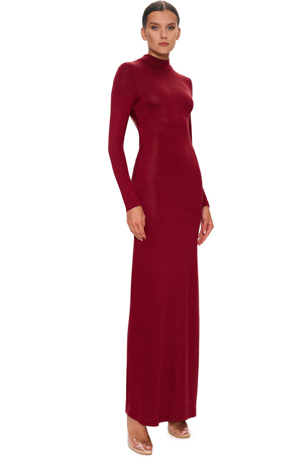 Платье в длине макси выполнено из нежного, приятного к телу материала на основе вискозы. Модель с высокой горловиной, полуоткрытой спиной, свободным низом. Изделие выделяется, в том числе за счет контурированного кроя. Рекомендуем стилизовать с изящной обувью, аксессуарами, можно включать как в праздничный аутфит, так и в повседневный образ.