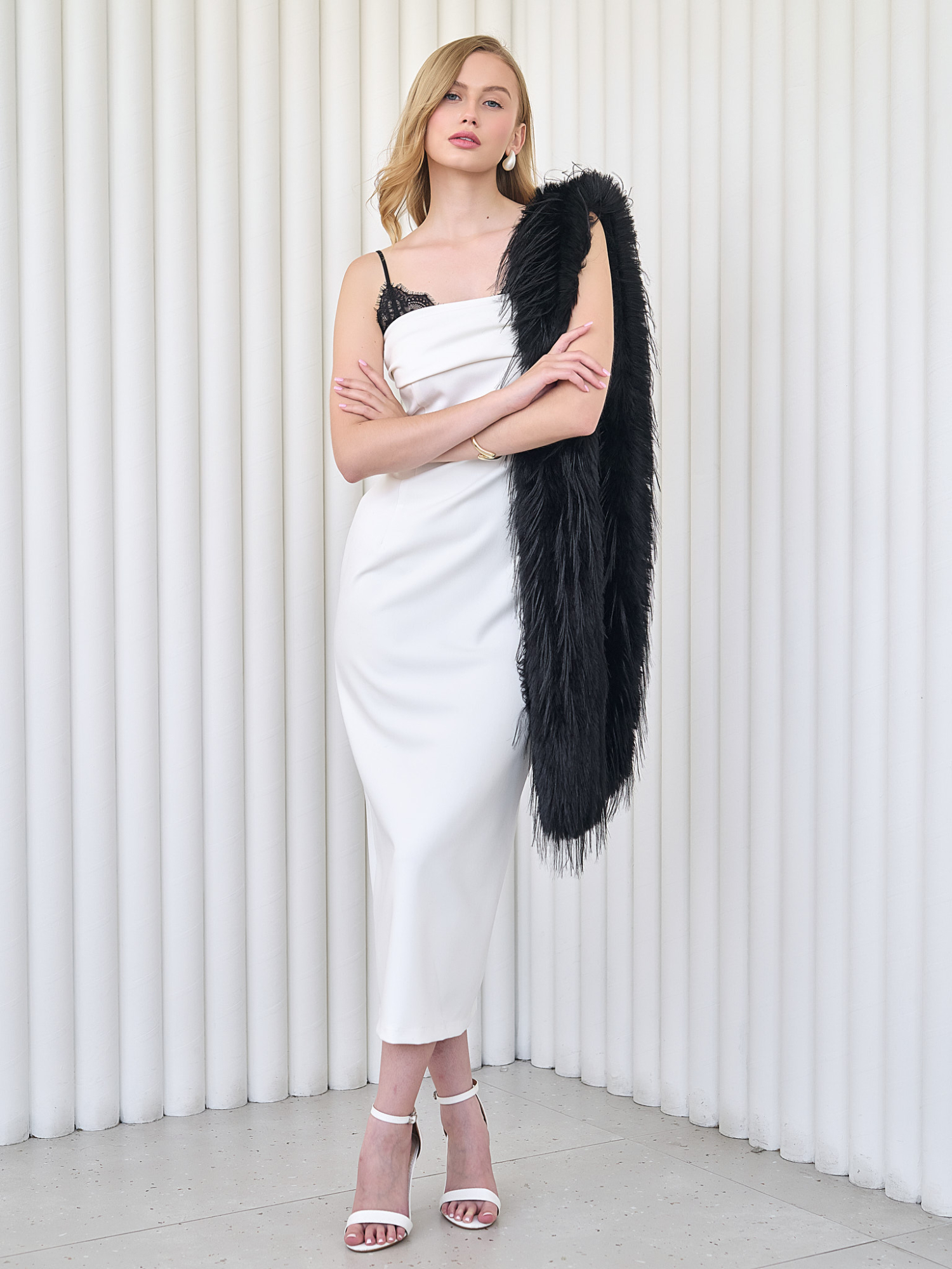 Изысканное вечернее платье с элементами белья станет идеальным выбором для торжественного мероприятия. Благодаря съёмным бретелям, вы сможете адаптировать наряд под свой стиль.