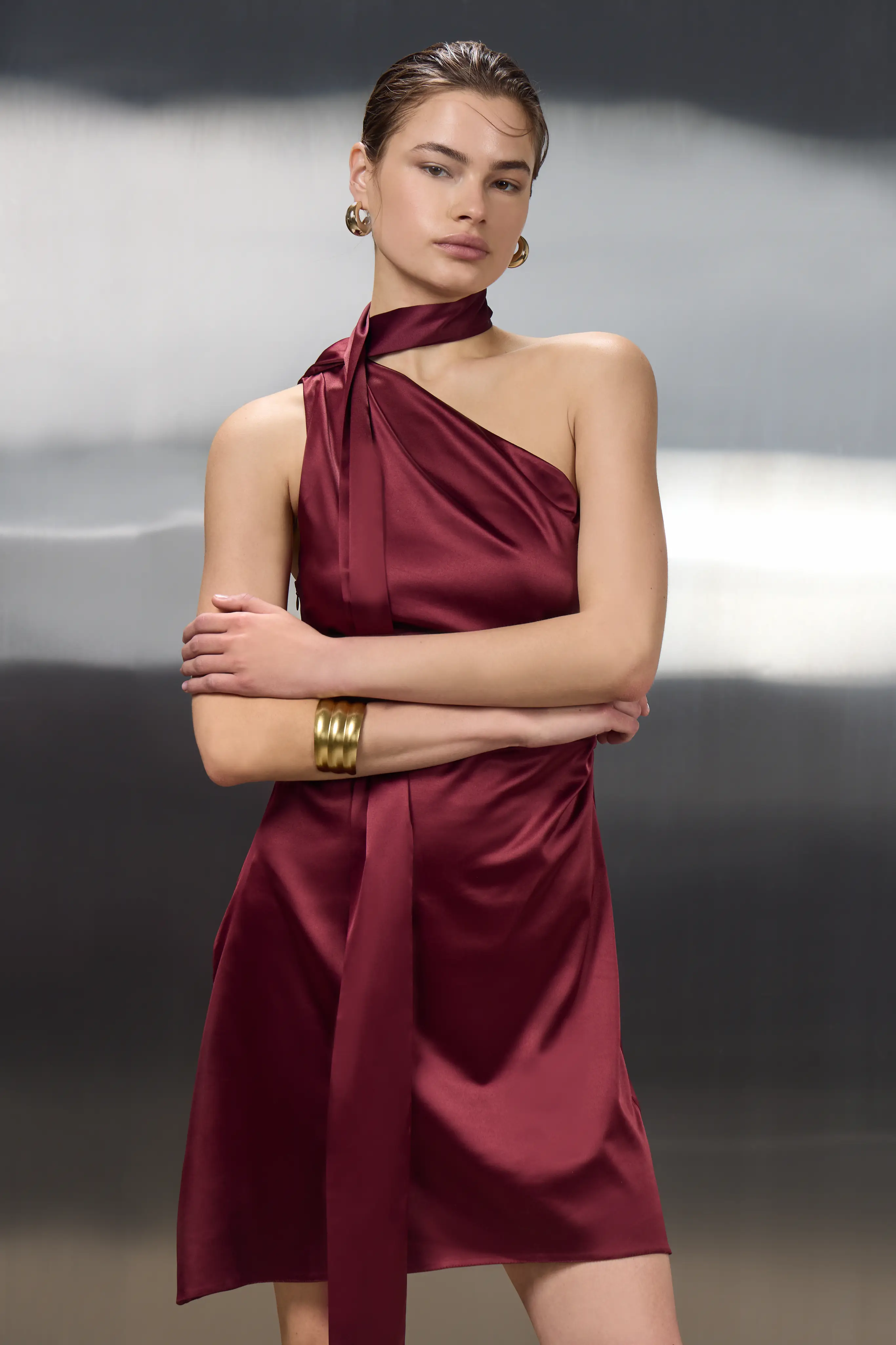 Блестящее бордовое платье-мини на одно плечо подчеркнёт вашу индивидуальность и создаст стильный образ! Благодаря сочетанию вискозы и тесила ткань приятна к телу и прекрасно держит форму. В изысканном крое легко подобрать свой идеальный размер. Стильное решение как для вечернего выхода, так и яркого повседневного образа. Выгодно подчёркивает фигуру, дарит комфорт и свободу движений. Вас заметят первым взглядом!