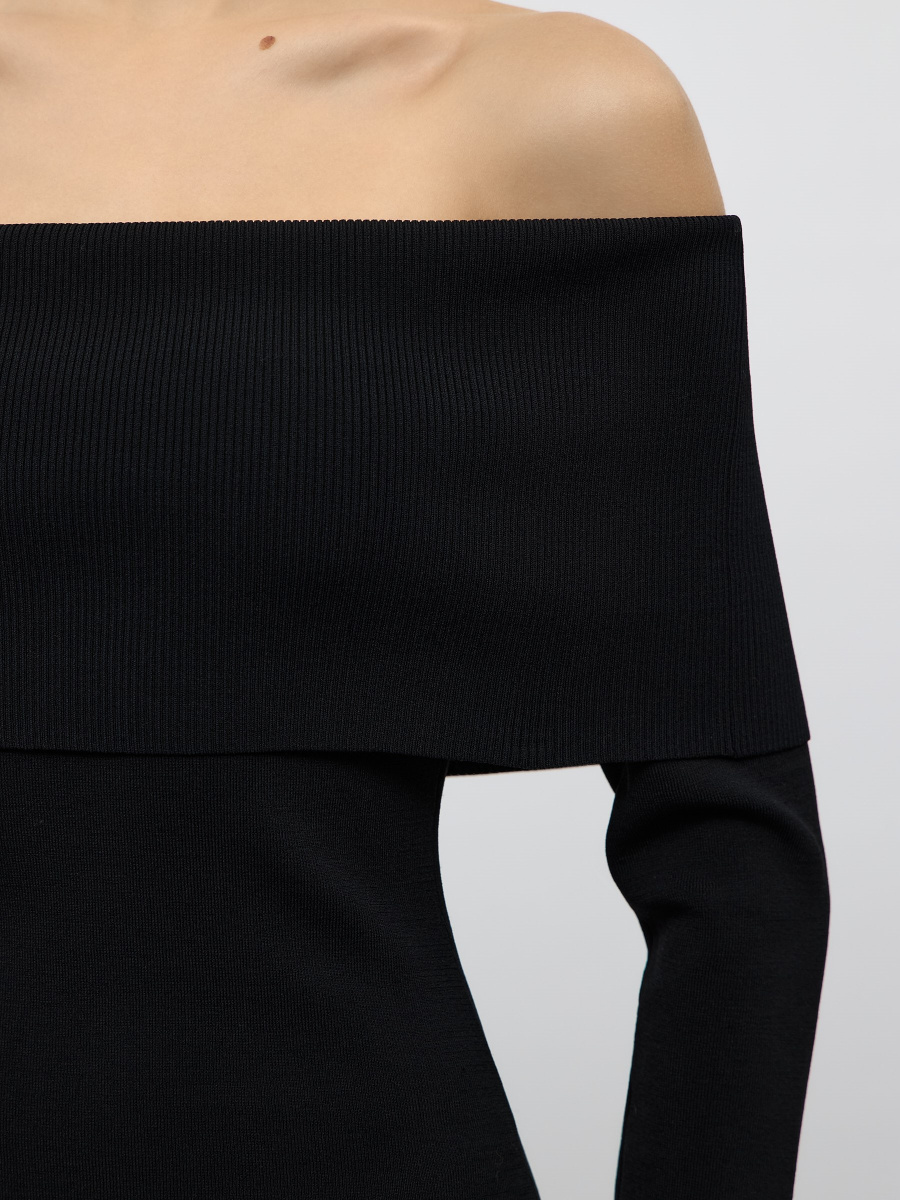 Платье мини с открытым декольте позволит создать как повседневный, так и вечерний образ. Модель облегающего силуэта, с подчеркнутой вытачками линией талии и фактурным отворотом на плечах. Бесшовные рукава реглан подстраиваются под объем плеч. Материал — плотное эластичное полотно с матовым финишем на основе дышащей "сухой" вискозы.