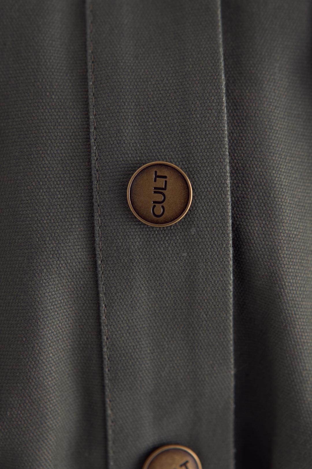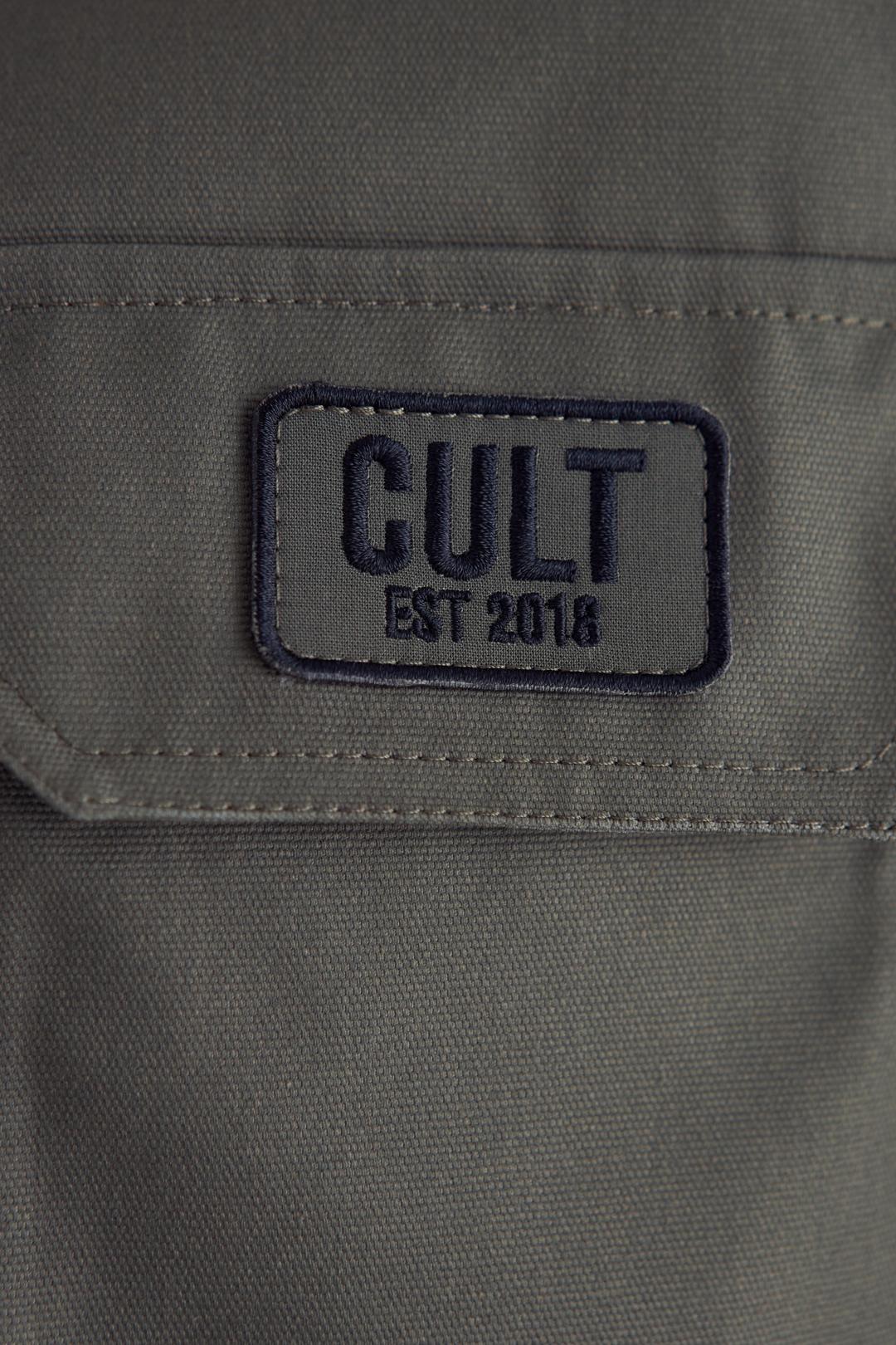 Женская рубашка прямого силуэта из канваса. Изделие с нагрудными накладными карманами, с застежкой на брендированные кнопки. Манжеты и пояс на резинке. Воротник отложной со стойкой. Справа на кармане брендированная нашивка.