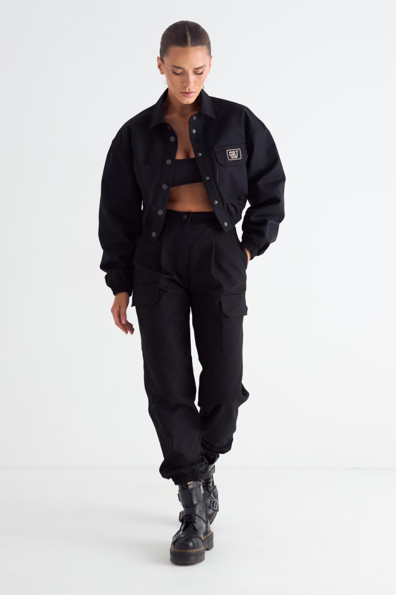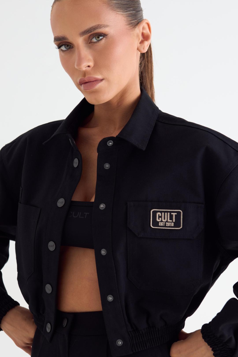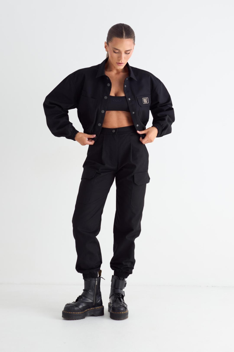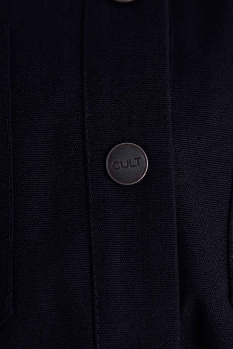 Женская рубашка прямого силуэта из канваса. Изделие с нагрудными накладными карманами, с застежкой на брендированные кнопки. Манжеты и пояс на резинке. Воротник отложной со стойкой. Справа на кармане брендированная нашивка.