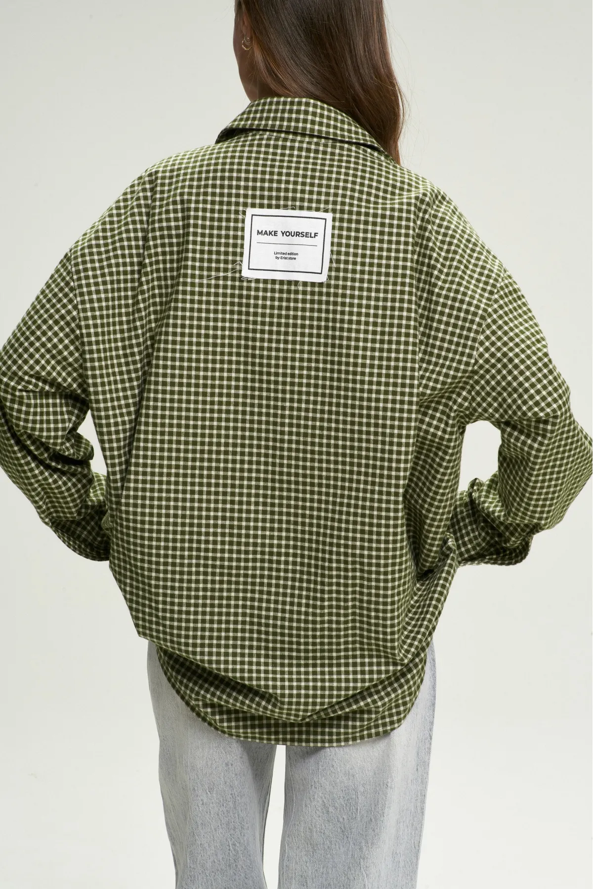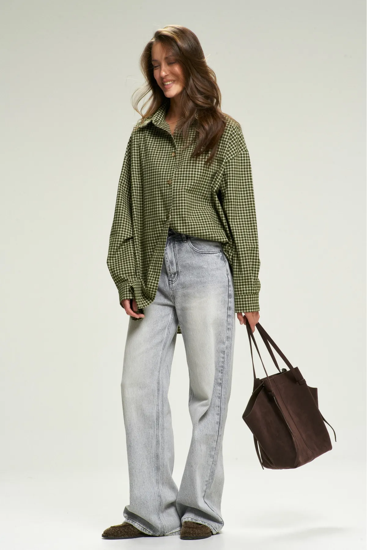 Рубашка Oversized в клетку выполнена из мягкого дышащего хлопка средней плотности. Свободный оверсайз-крой со слегка заниженным плечевым швом создаёт лёгкий объём, позволяя чувствовать себя максимально раскованно, а классический оой воротник и аккуратная планка на пуговицах сохраняют знакомые силуетные акценты. Закругленная линия низа позволяет носить рубашку как навыпуск, так и частично заправленной, добавляя образу непринуждённости и лёгкой небрежности.