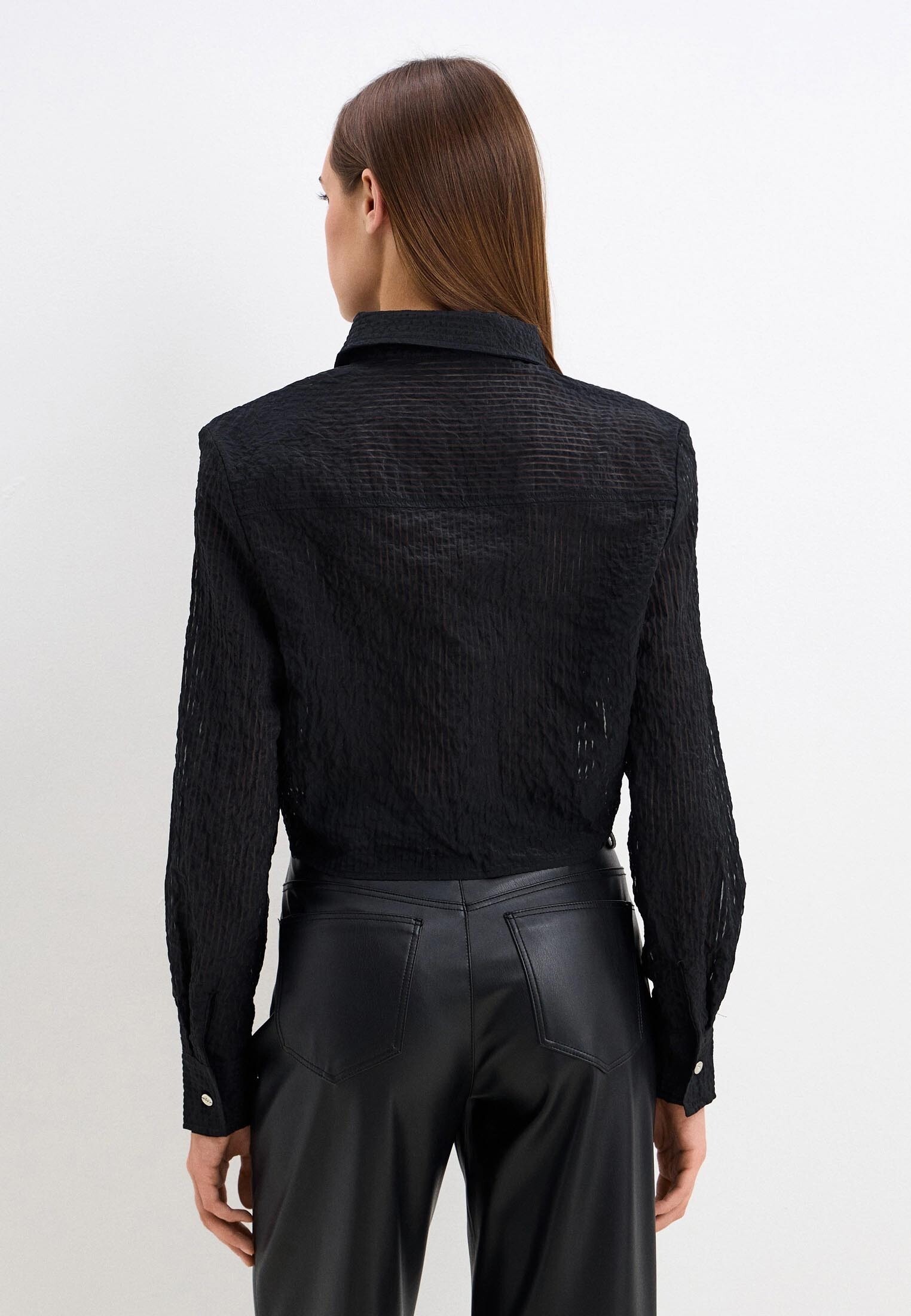 Чёрная рубашка кроп — смелость в минимализме. Лаконичный крой, акцент на талию и выразительная текстура делают её центром любого образа.