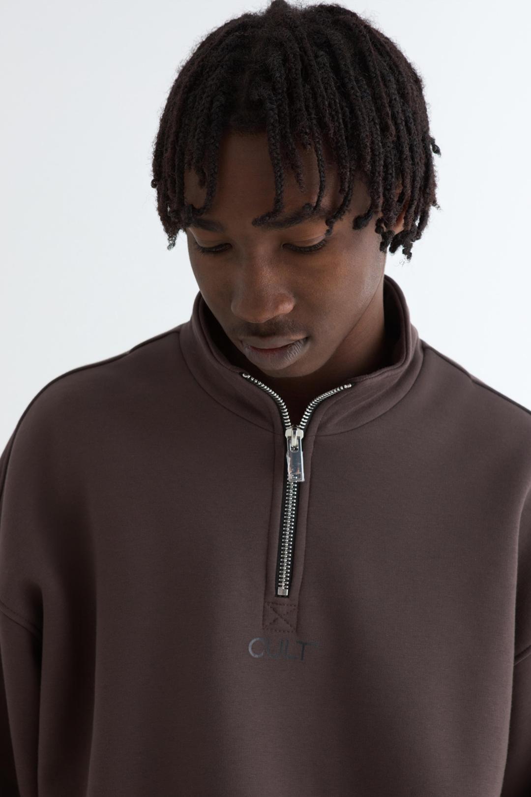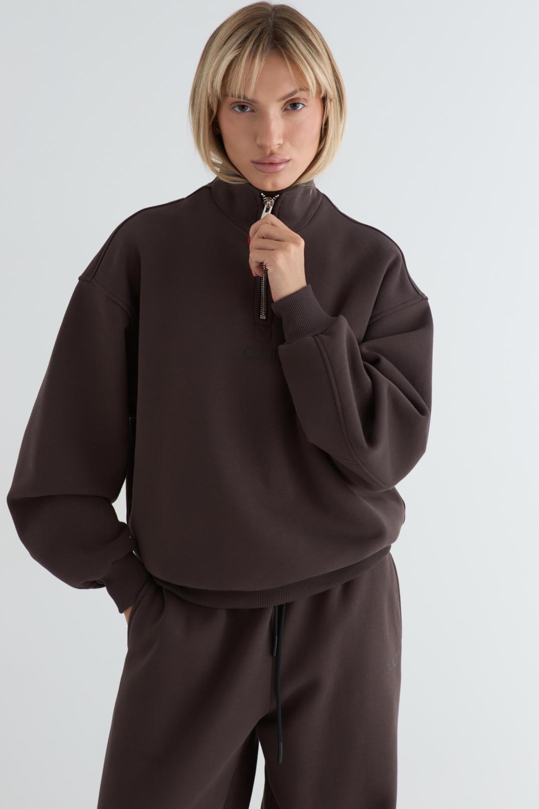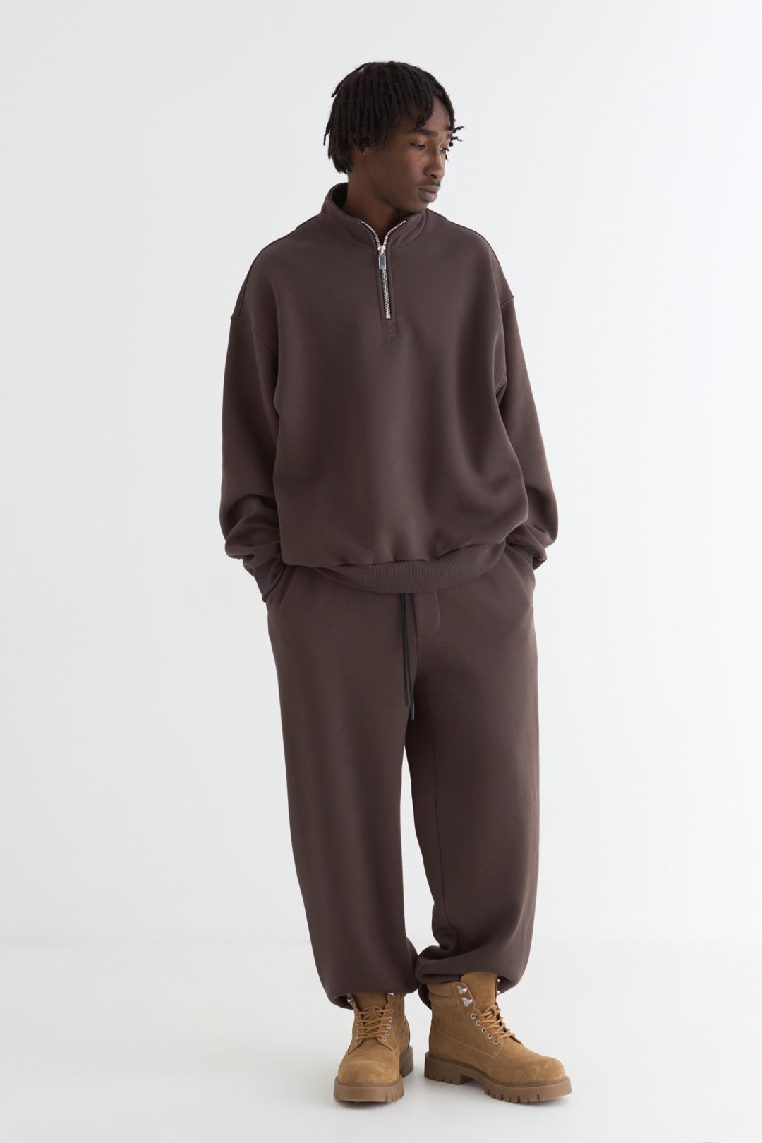 Анорак оверсайз со спущенным плечом из футера трехнитки с начёсом. Воротник на молнии. Манжеты и пояс из кашкорсе. По центру переда и спинки брендированные принты.