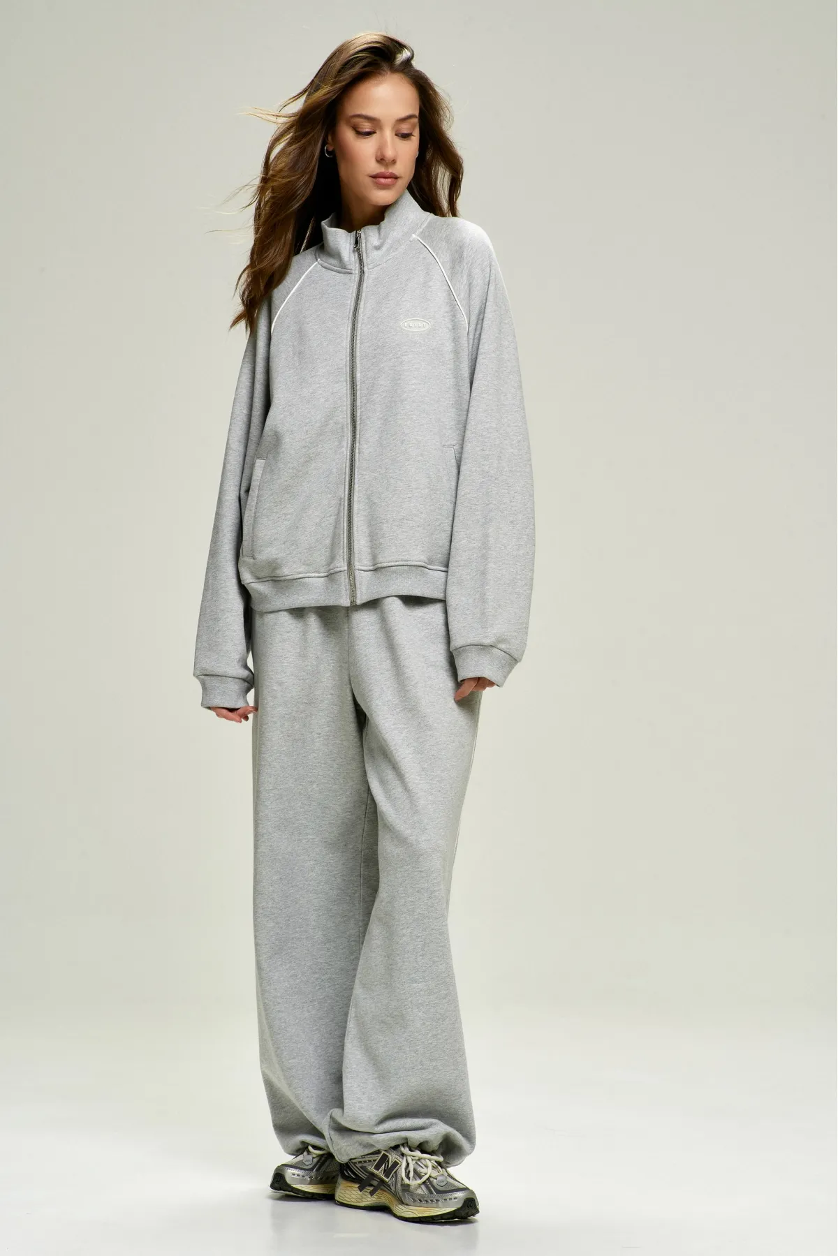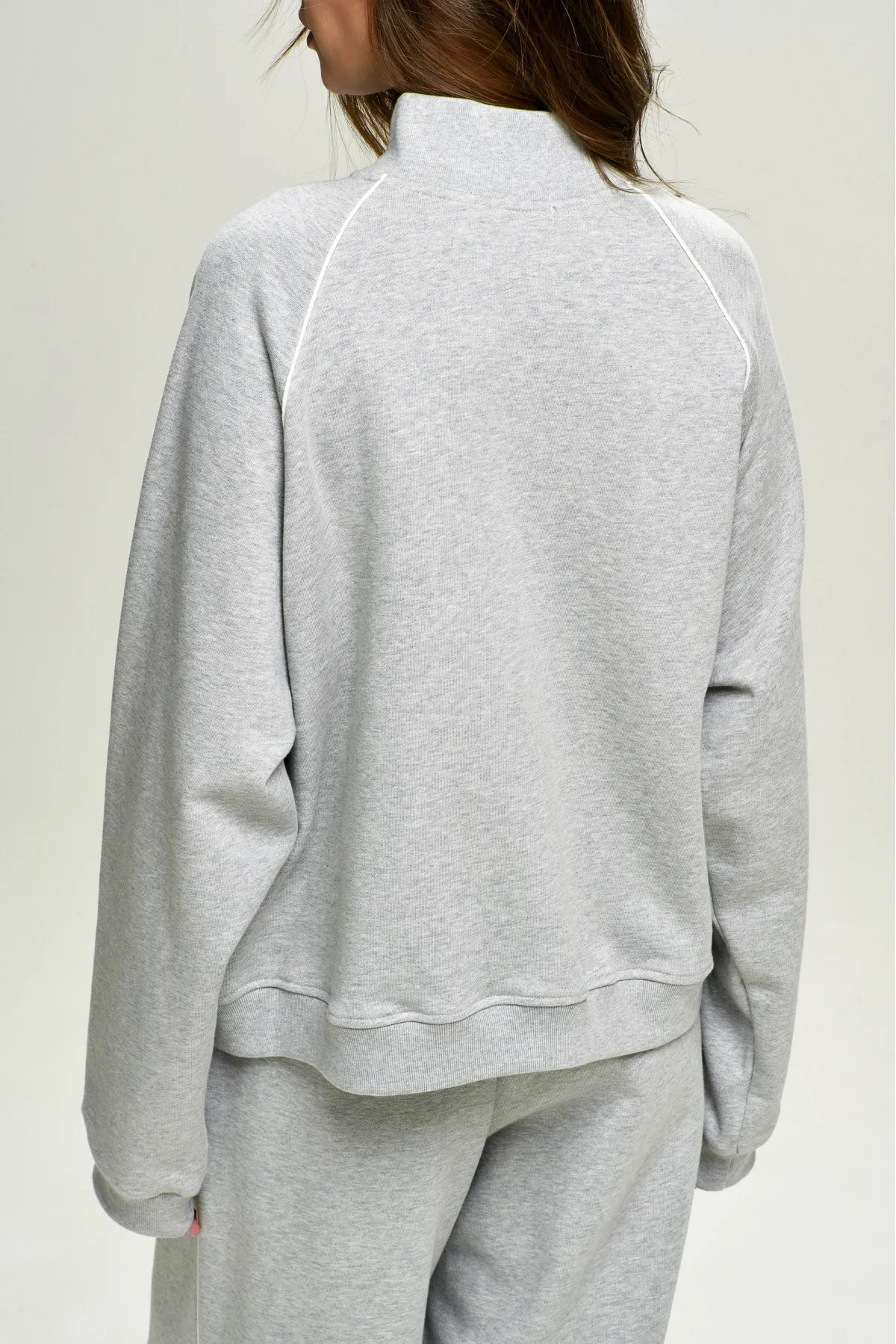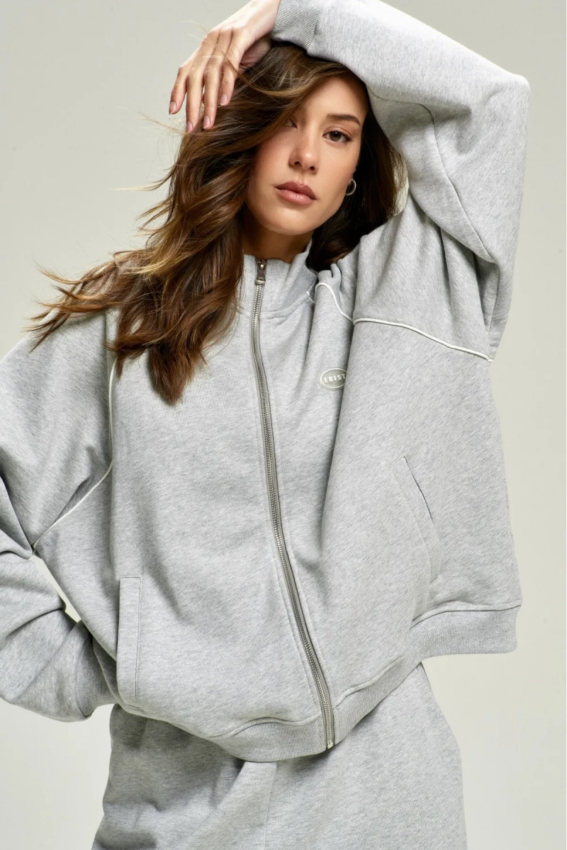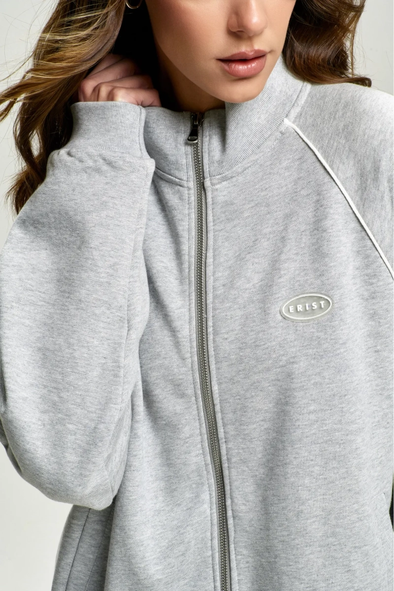 Олимпийка с кантом — комфортная оверсайз‑модель с воротником‑стойкой и рукавом‑реглан, где кант в шве добавляет графичности и аккуратной отделки.