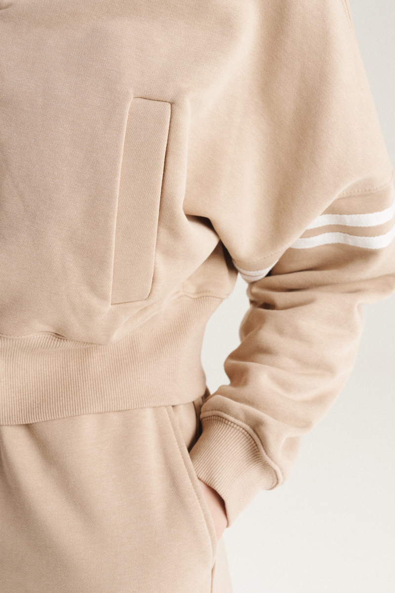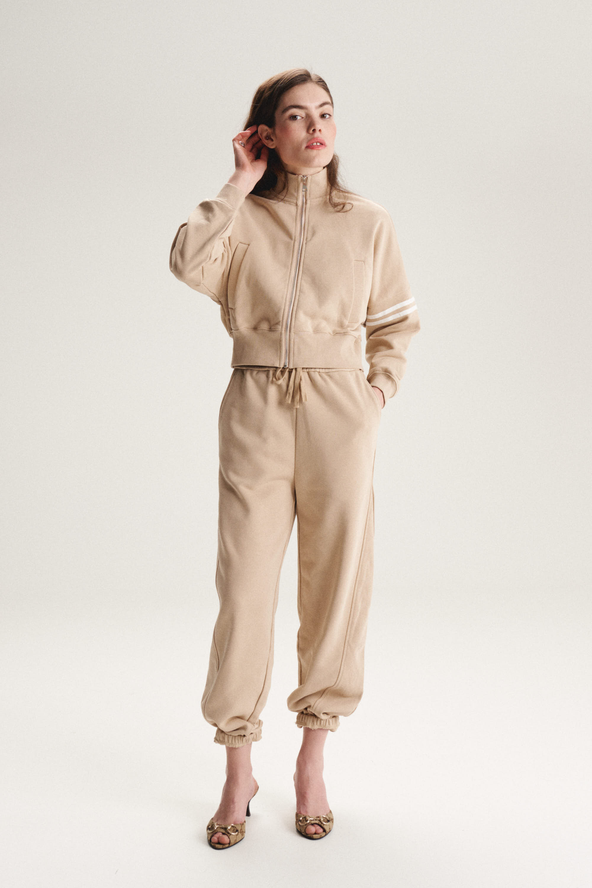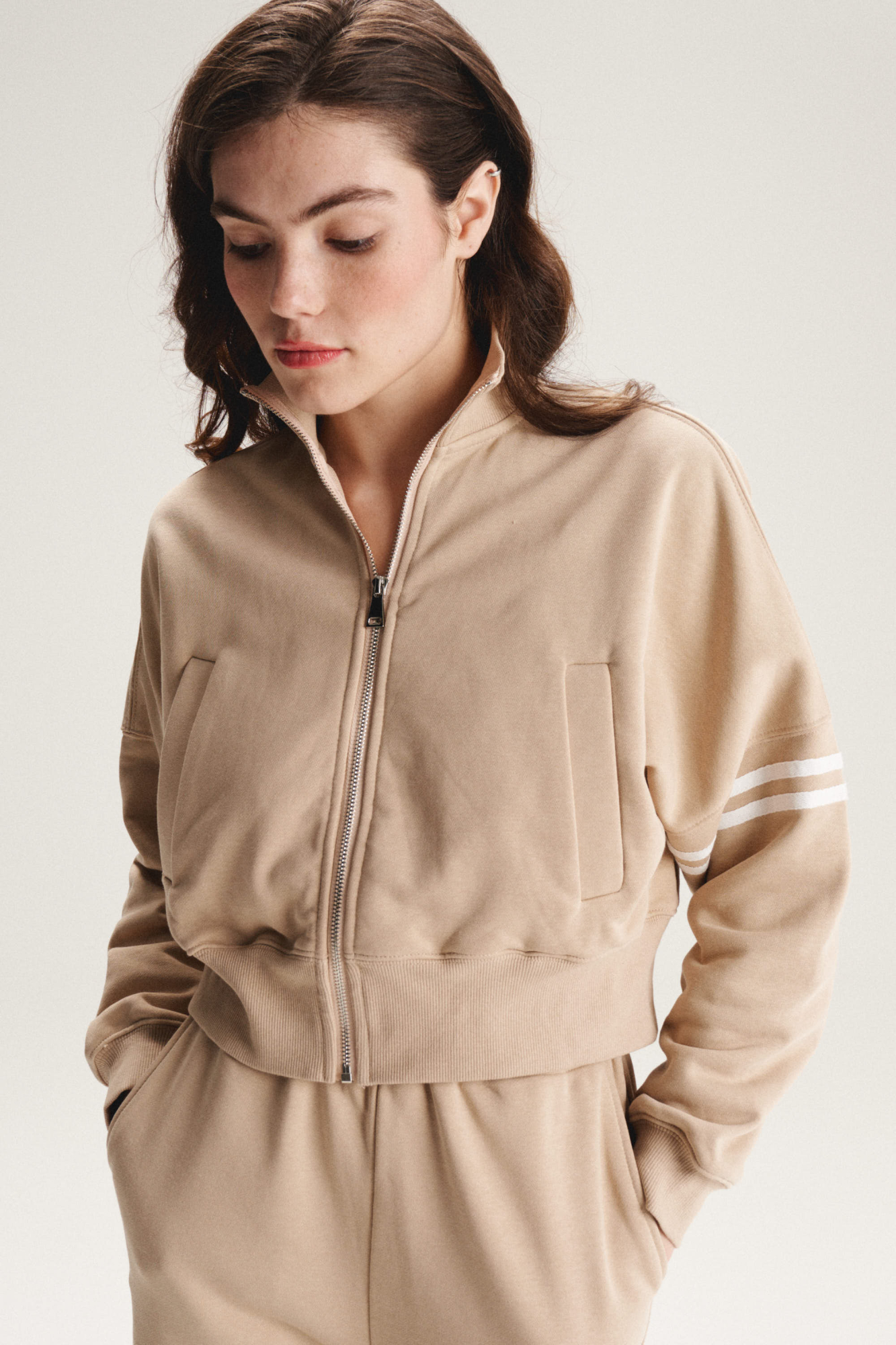 Укороченное зип-худи из легкого футера. Вместе с джоггерами из аналогичной ткани создает идеальный комплект на каждый день.