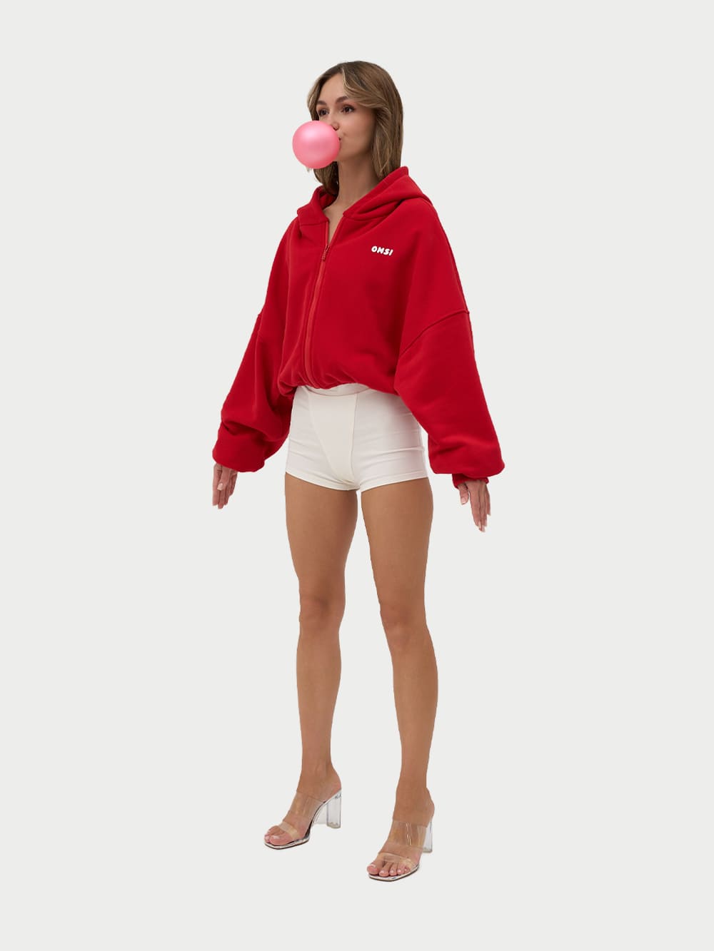 Оверсайз крой. Мягкое полотно с микроначесом. Регулируемая длина и ширина изделия за счет кулиски. Глубокий капюшон с продольным сечением.