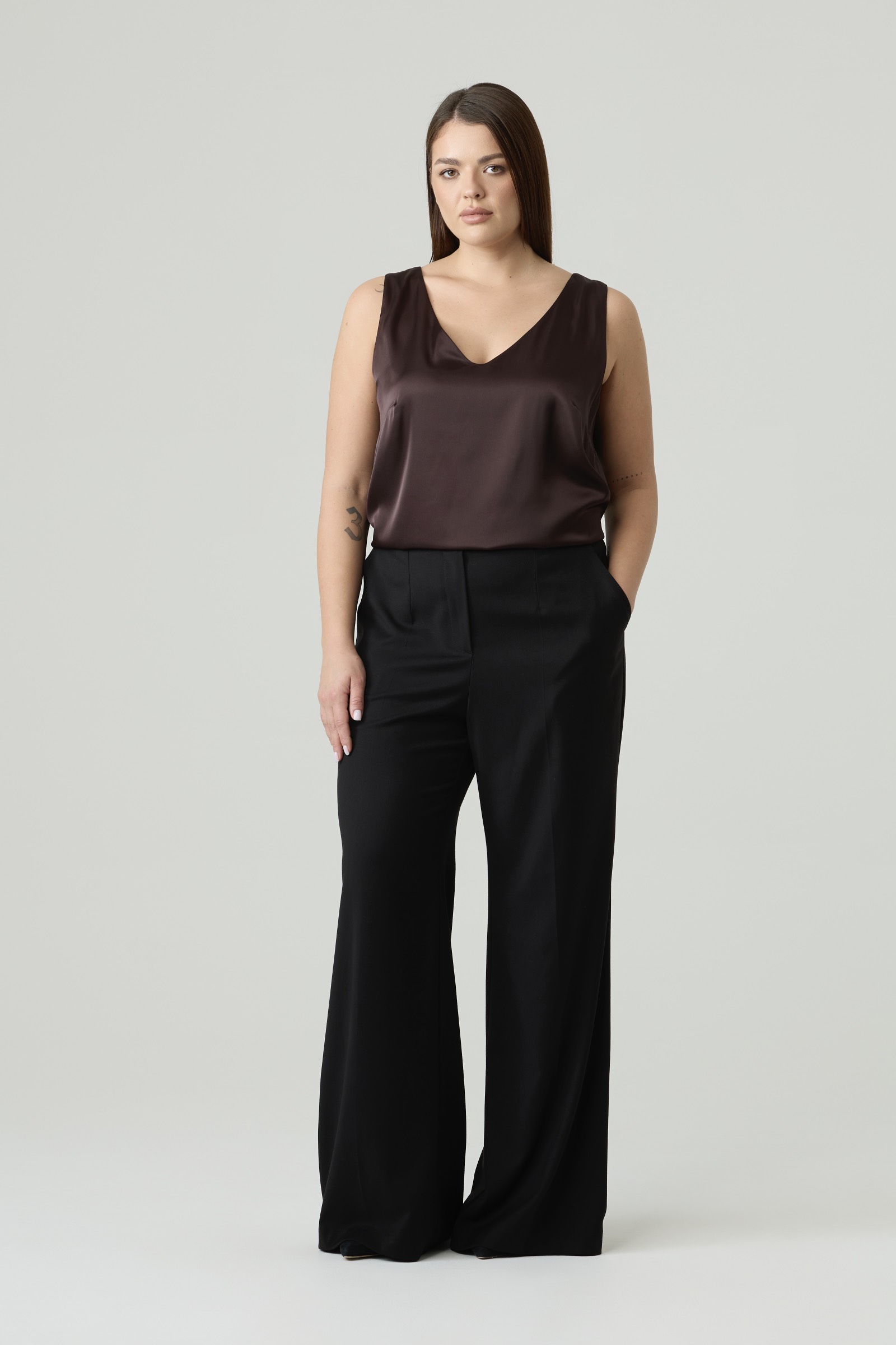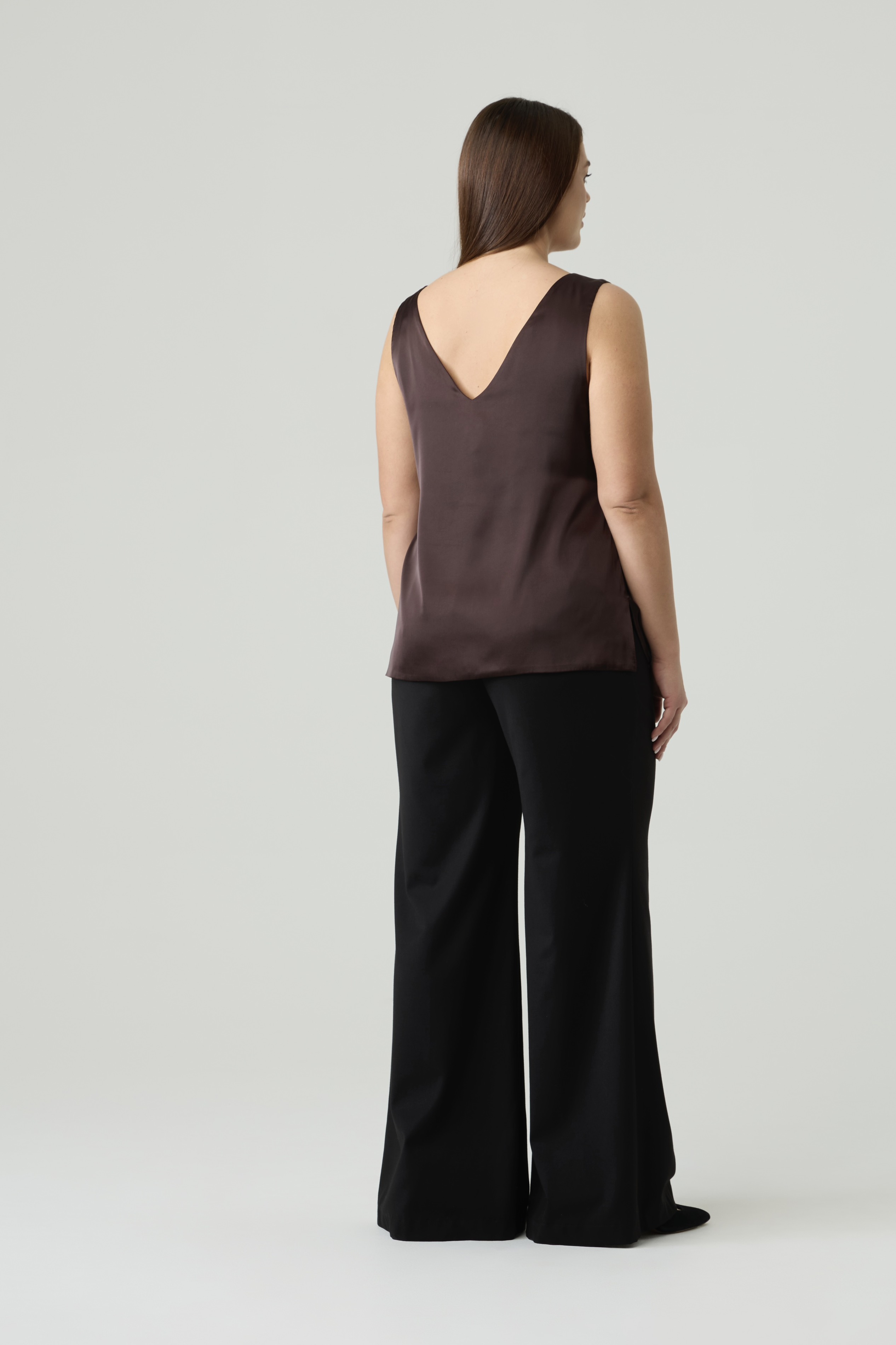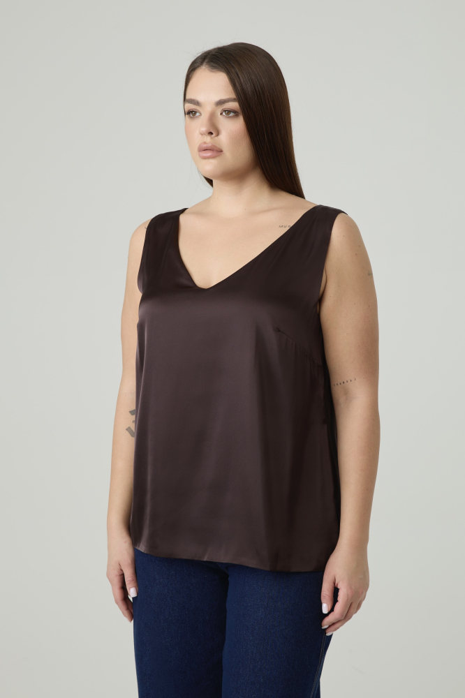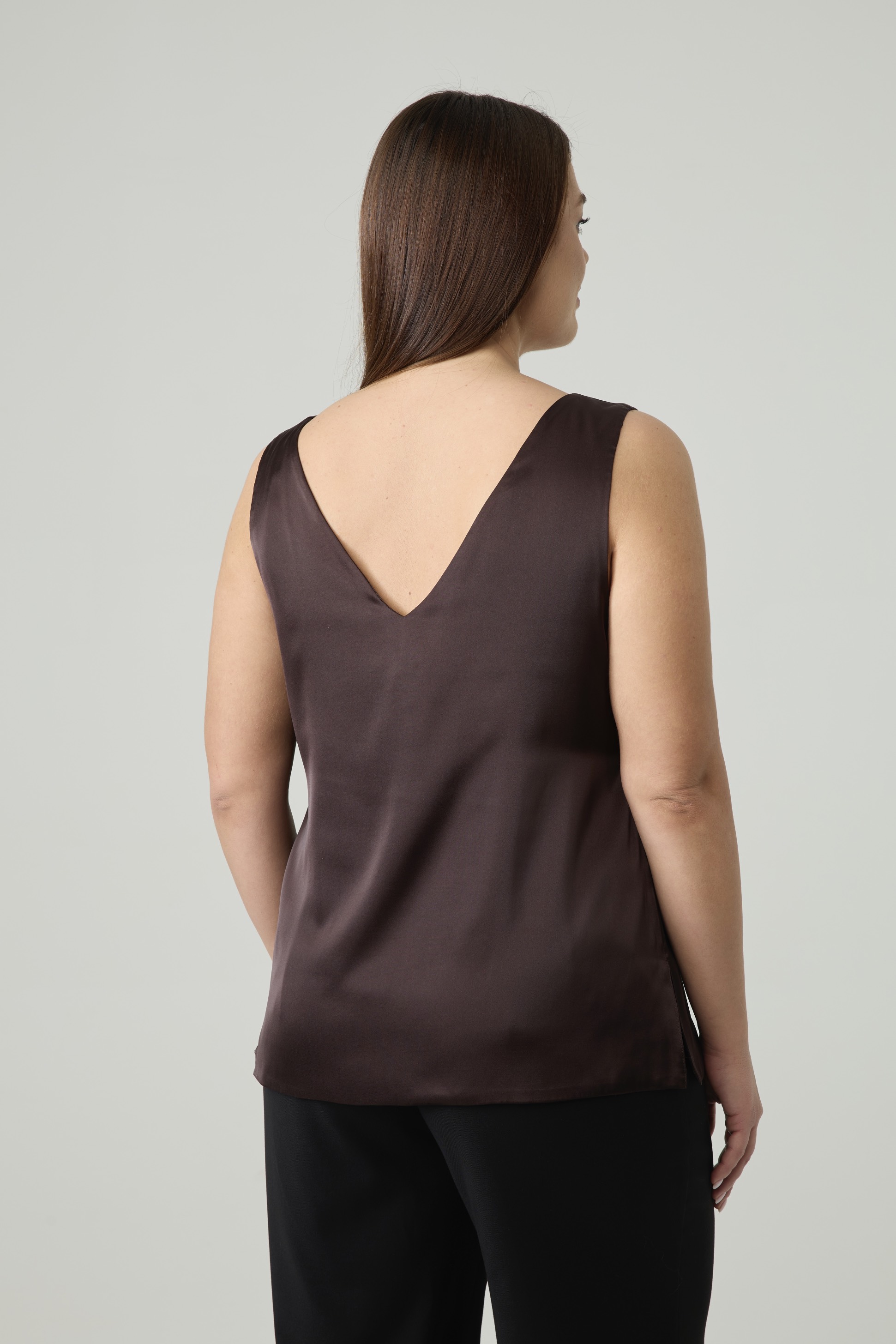 Изящный топ в бельевом стиле на широких бретелях в глубоком шоколадном цвете, создающий вечерний образ в любой сезон. Два слоя ткани позволяют добиться идеальной посадки и раскрывают красоту ткани - материал струится и ниспадает волнами.