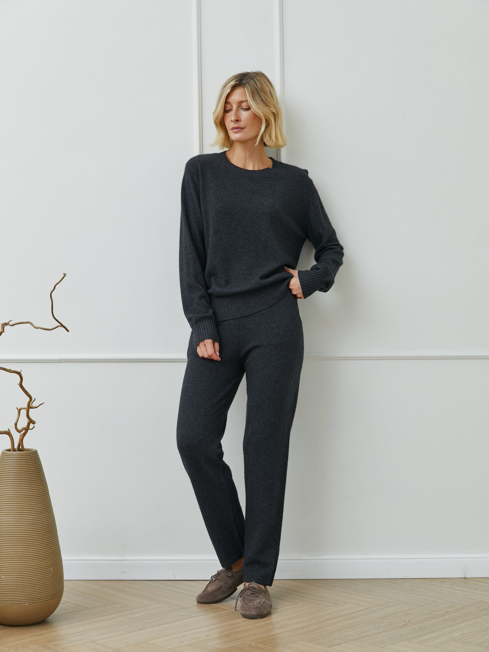 Зауженные брюки из кашемира - идеальный вариант для уютных образов.