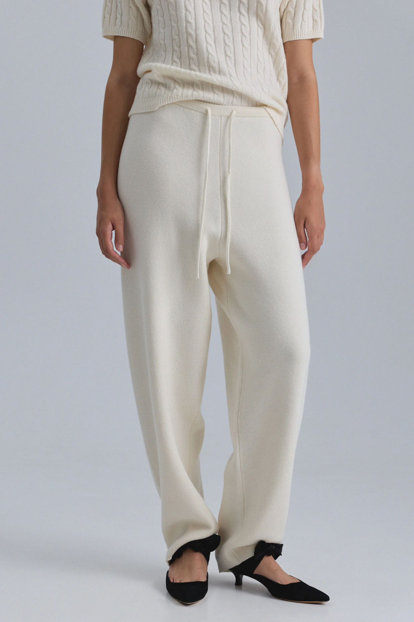 Теплые брюки из натуральной шерсти мериноса с регулируемым поясом на завязках. У них универсальная посадка и прямой крой. Низ брючин можно аккуратно подвернуть, деликатно открыв щиколотки.