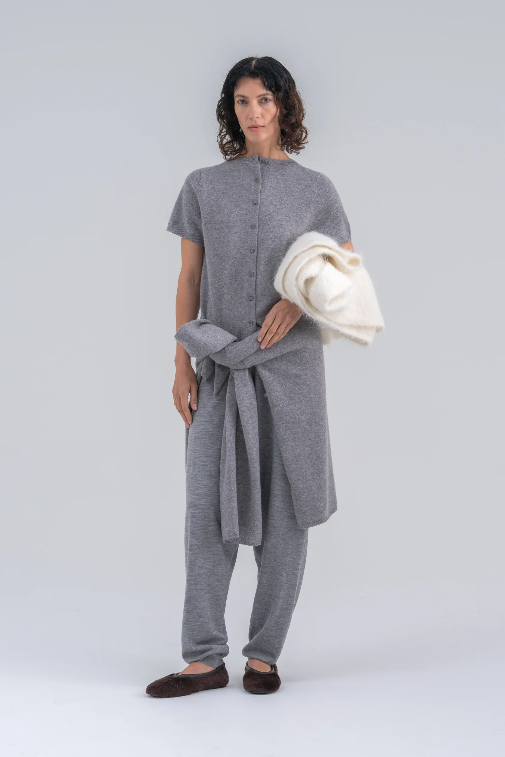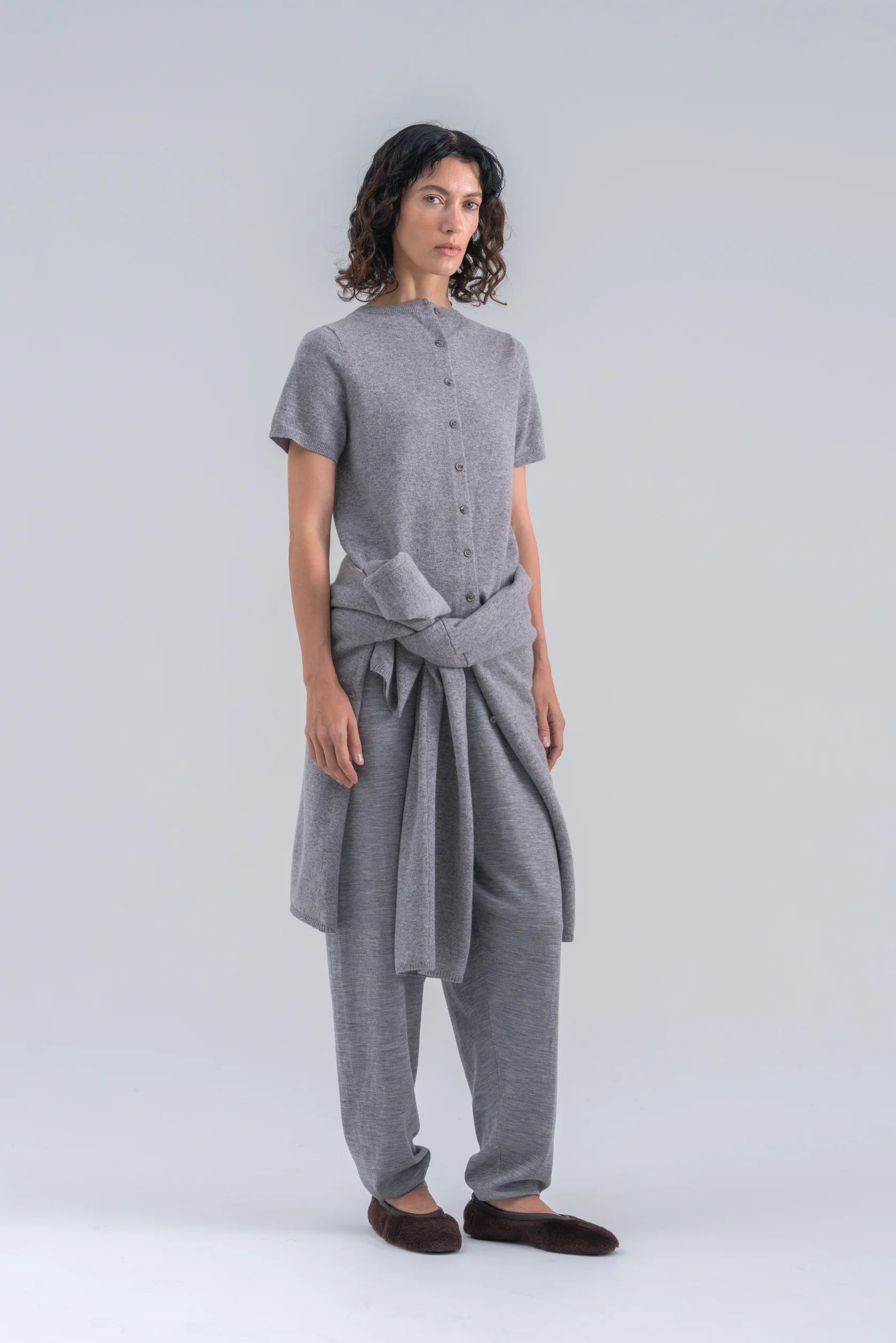 Знакомый и любимый силуэт брюк Mankova теперь из шерсти мериноса. Пояс по классике регулируется шнурком. Низ брючин имеет лёгкую манжету. Основное преимущество — заниженный шаговый шов, который обеспечивает свободную и непринуждённую посадку на бёдрах.