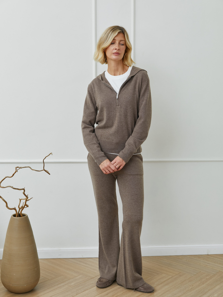 Идеальный выбор для создания стильного и уютного образа. В составе ткани — 50% кашемира и 50% шерсти, что обеспечивает комфорт и тепло. Брюки имеют расклёшенный крой, который подчёркивает фигуру и придаёт образу динамику.