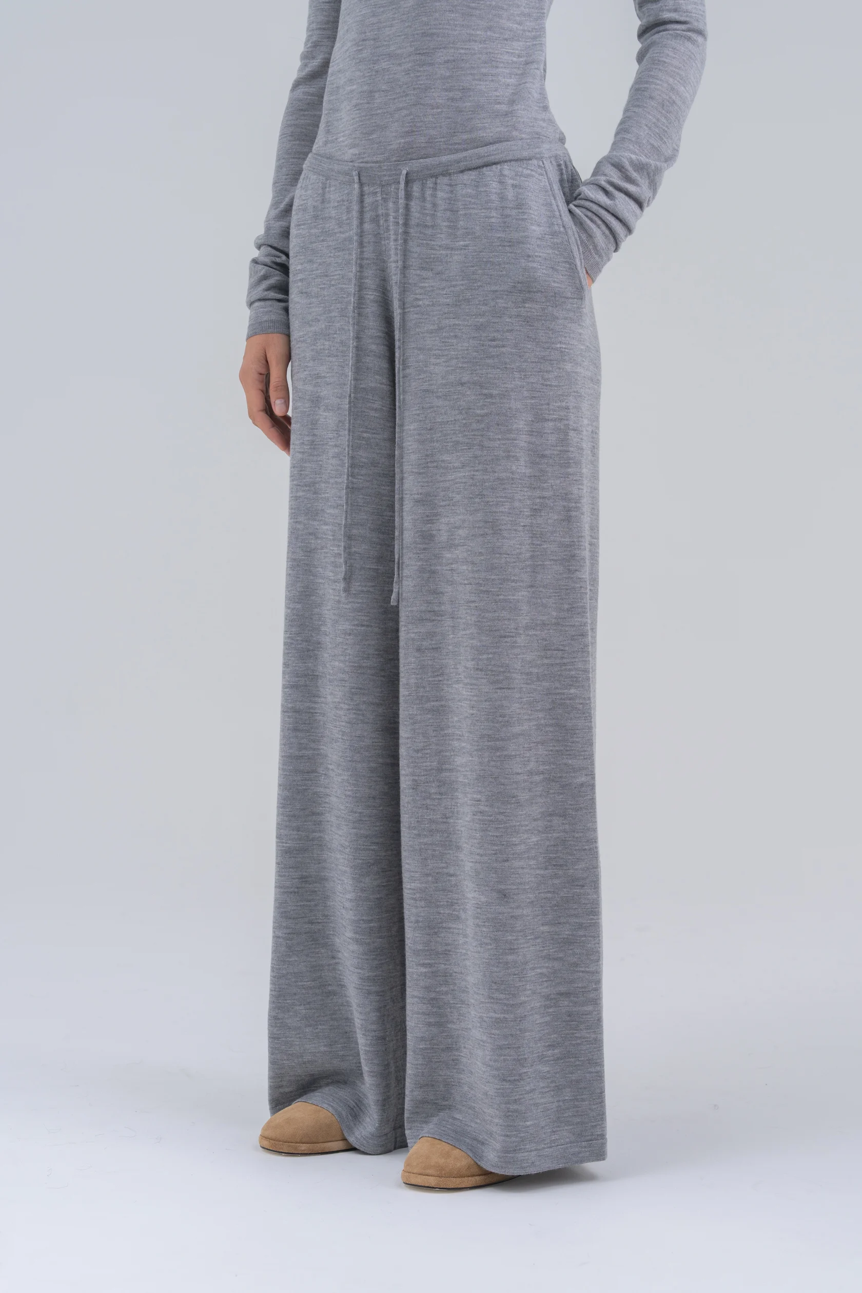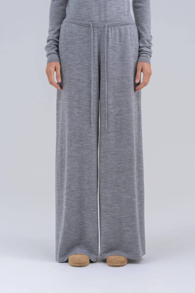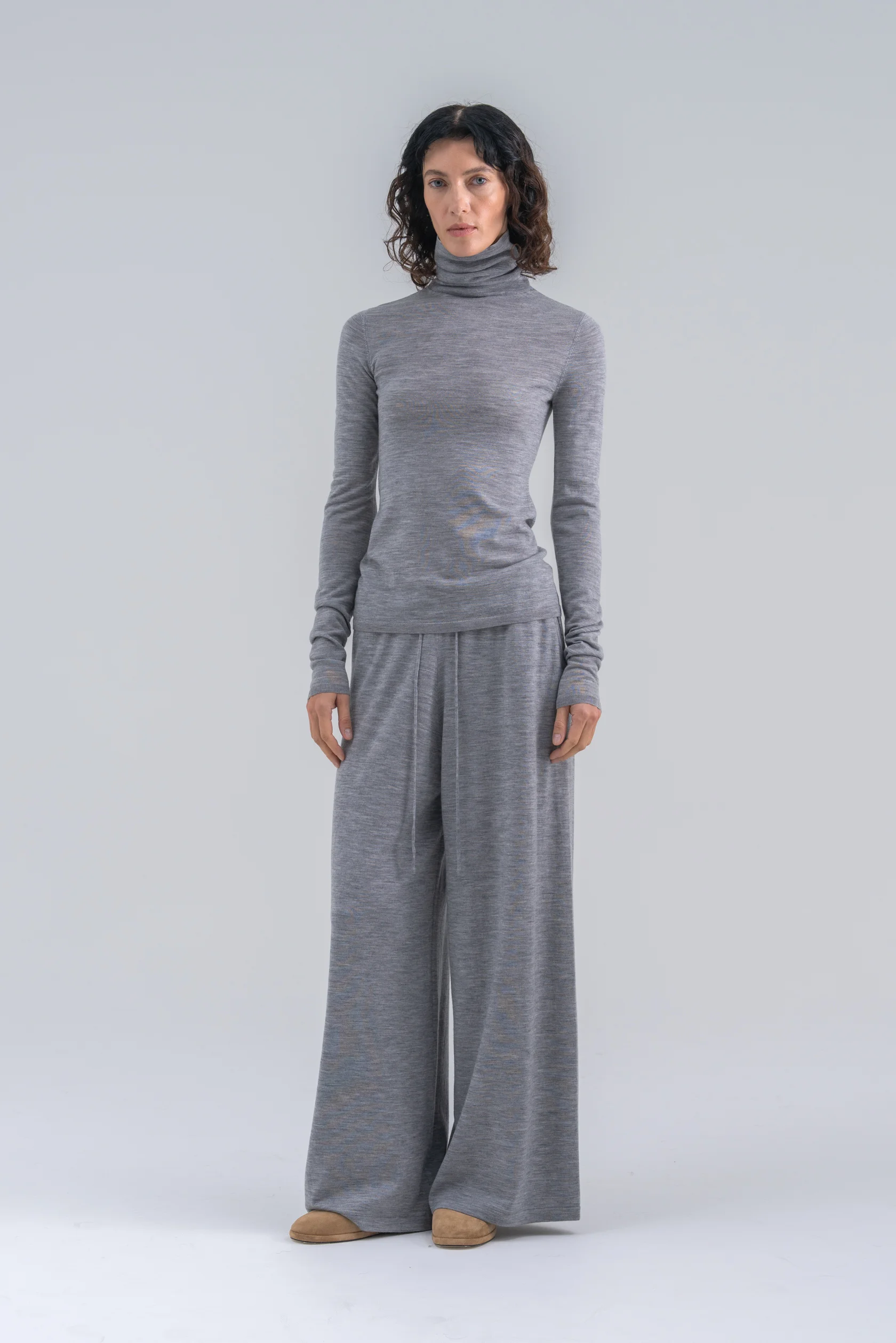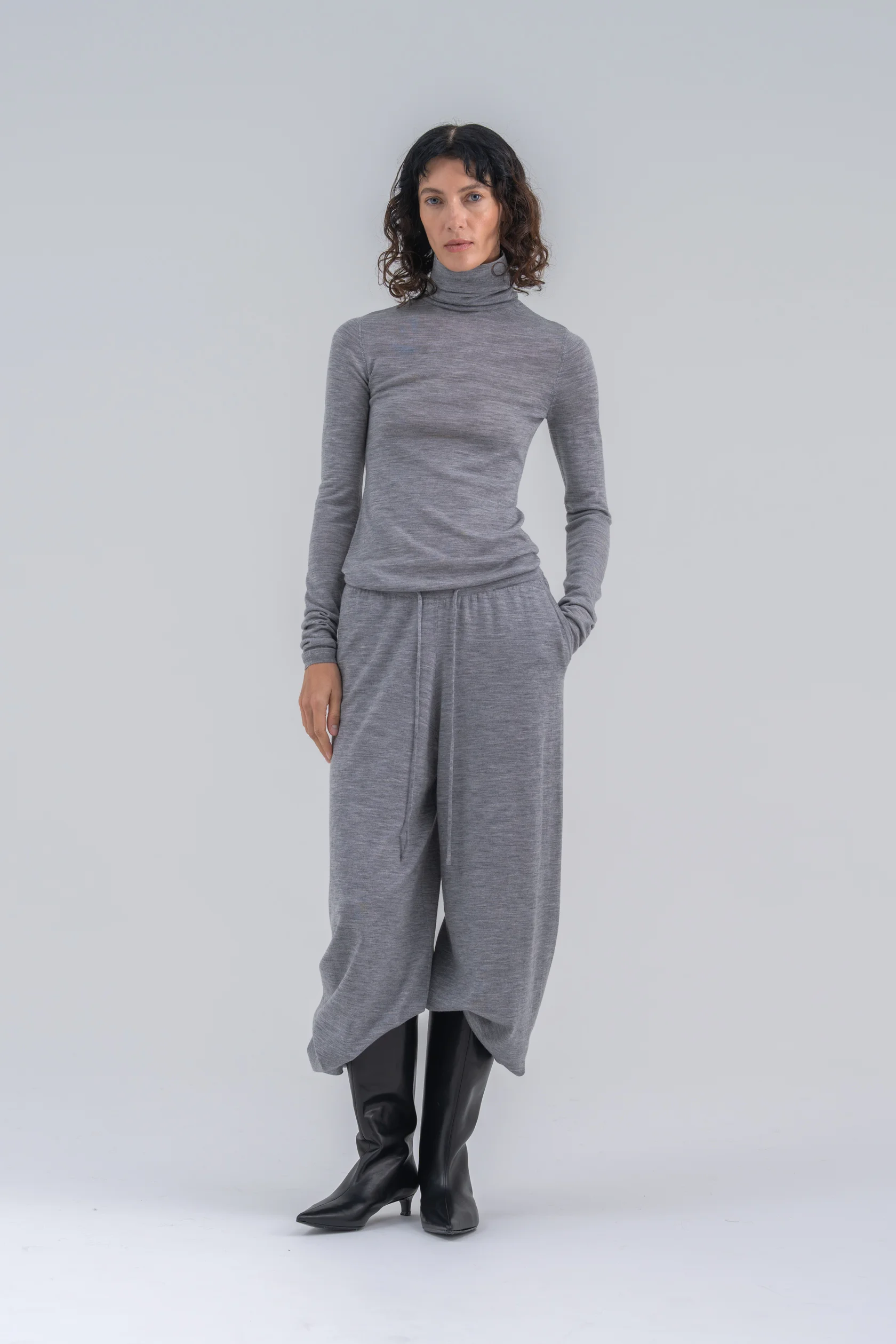 За счет того, что изделие выполнено из тонкой шерсти, брюки сохраняют легкую свободу, а тонкий пояс на резинке не утяжеляет образ. Модель представлена в двух размерах: small и tall и рассчитана на среднюю посадку, которую можно регулировать при помощи шнурка внутри пояса.