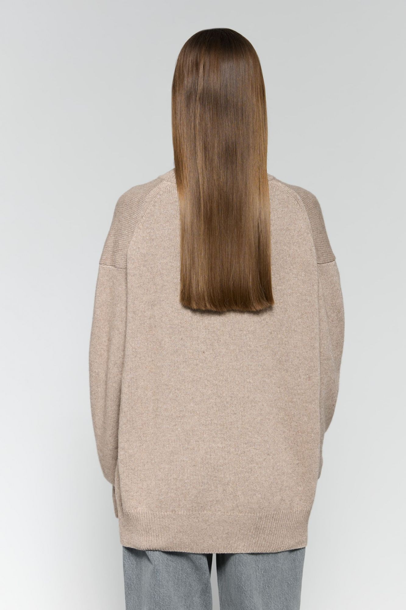 Нежный к телу и душе — этот джемпер обнимет и согреет как добрый друг. За «теплопроводность» отвечают кашемир и шерсть мерино в составе, а за взаимную любовь с вашим гардеробом универсальность модели: объемный, слегка удлиненный крой, широкие резинки по низу изделия и рукавов, вязка средней плотности.