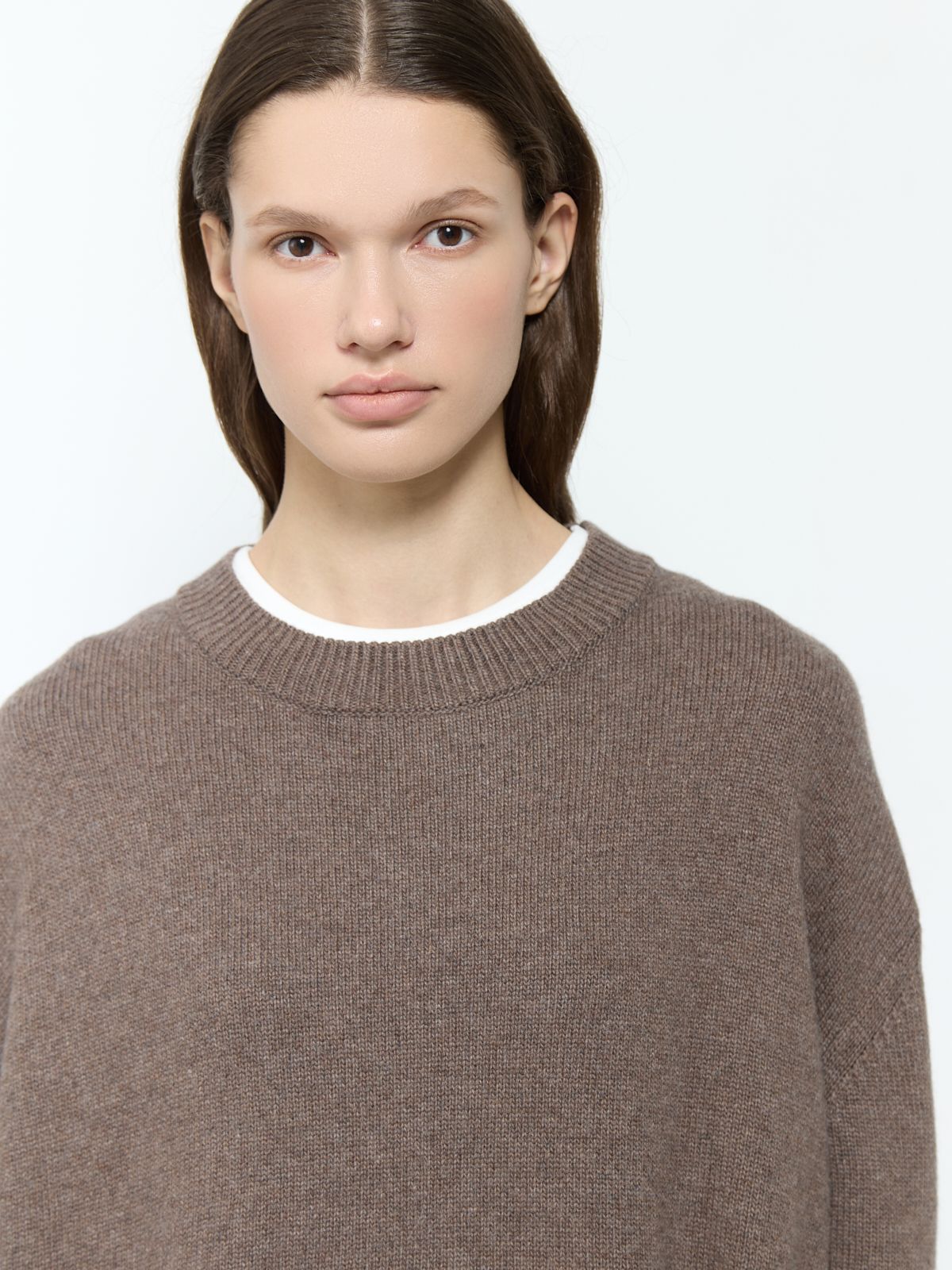 Нежный к телу и душе — этот джемпер обнимет и согреет как добрый друг. За «теплопроводность» отвечают кашемир и шерсть мерино в составе, а за взаимную любовь с вашим гардеробом универсальность модели: объемный, слегка удлиненный крой, широкие резинки по низу изделия и рукавов, вязка средней плотности.