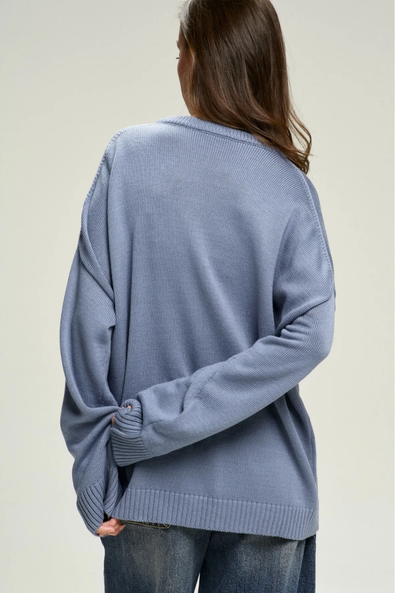 Изделие выполнено из хлопковой пряжи, которая отлично дышит. Джемпер свободного кроя создан для прогулок по городу и для путешествий с друзьями.