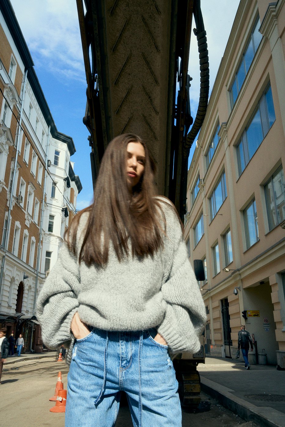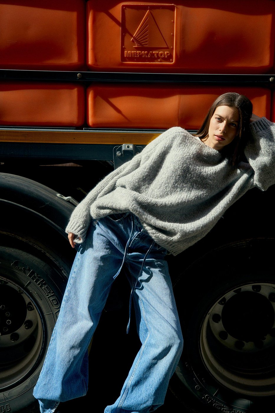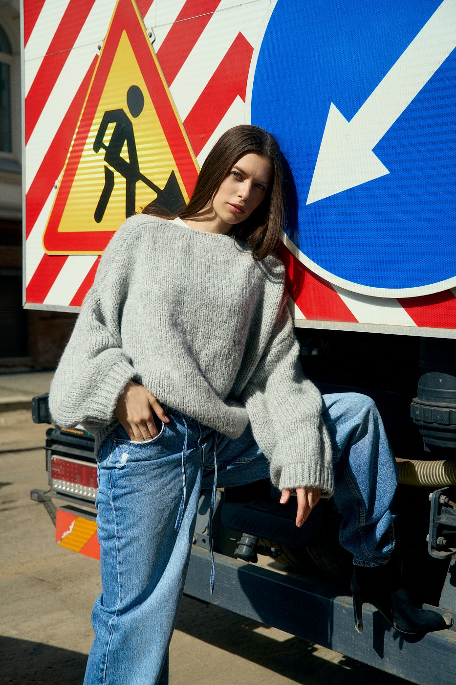 Джемпер оверсайз кроя с объемными рукавами - идеальная вещь для осенних образов.